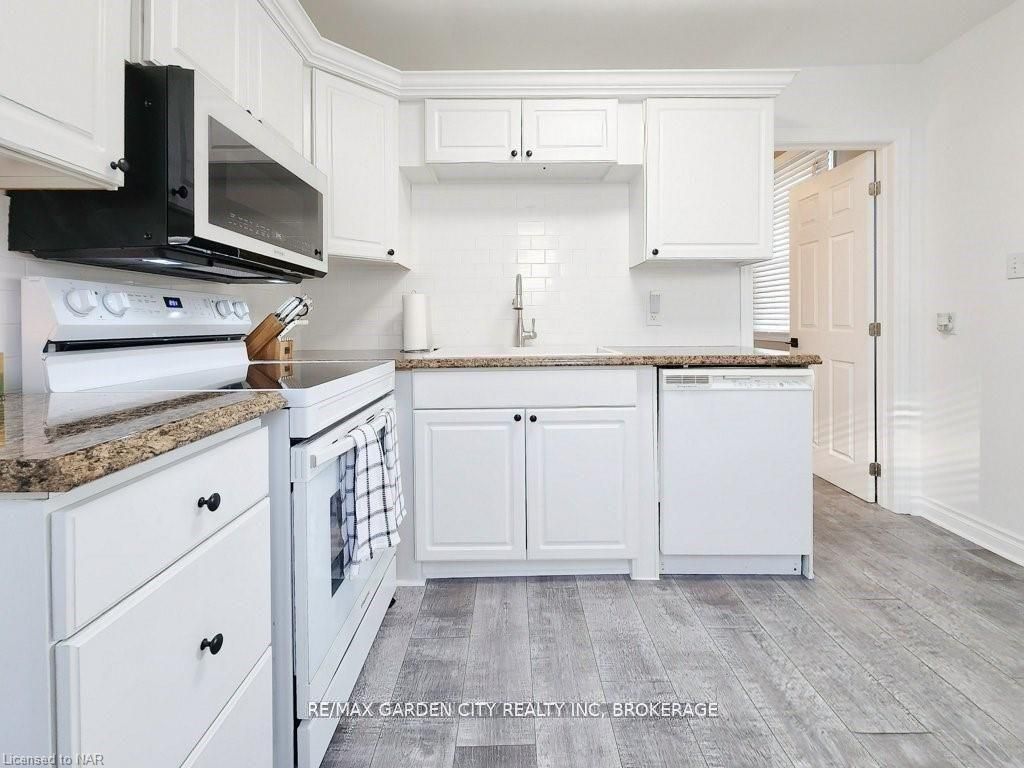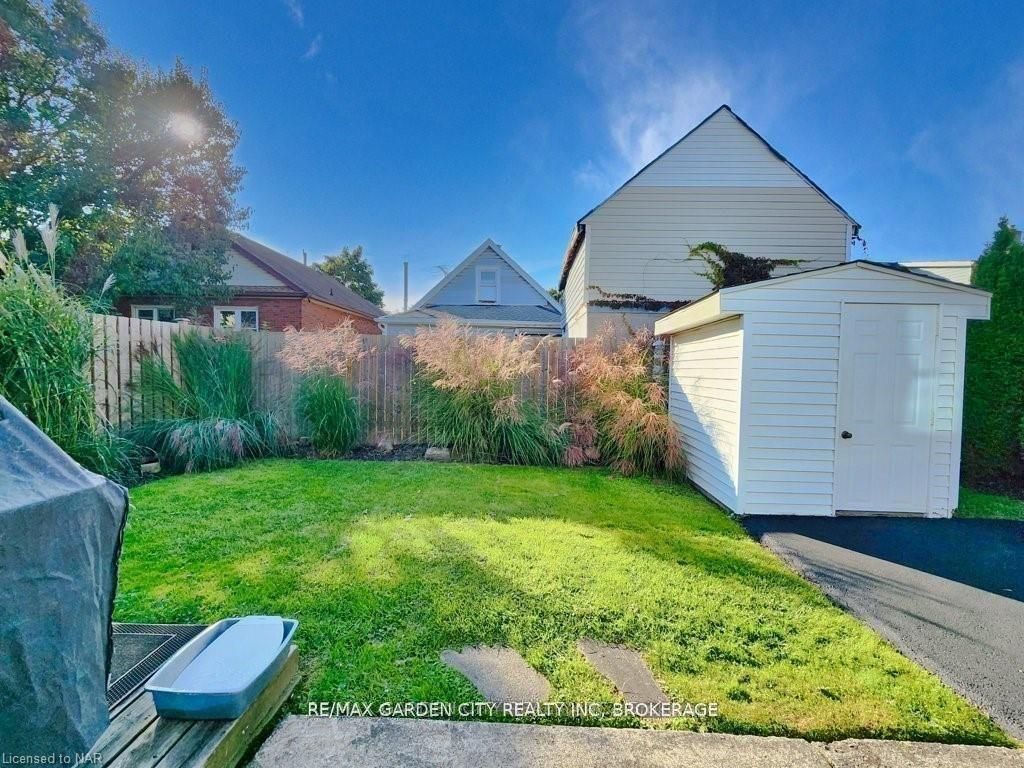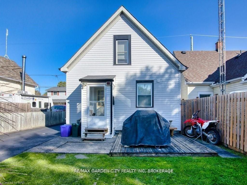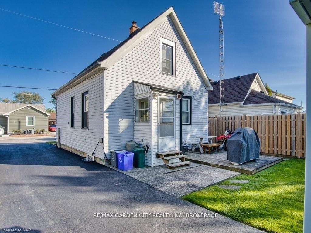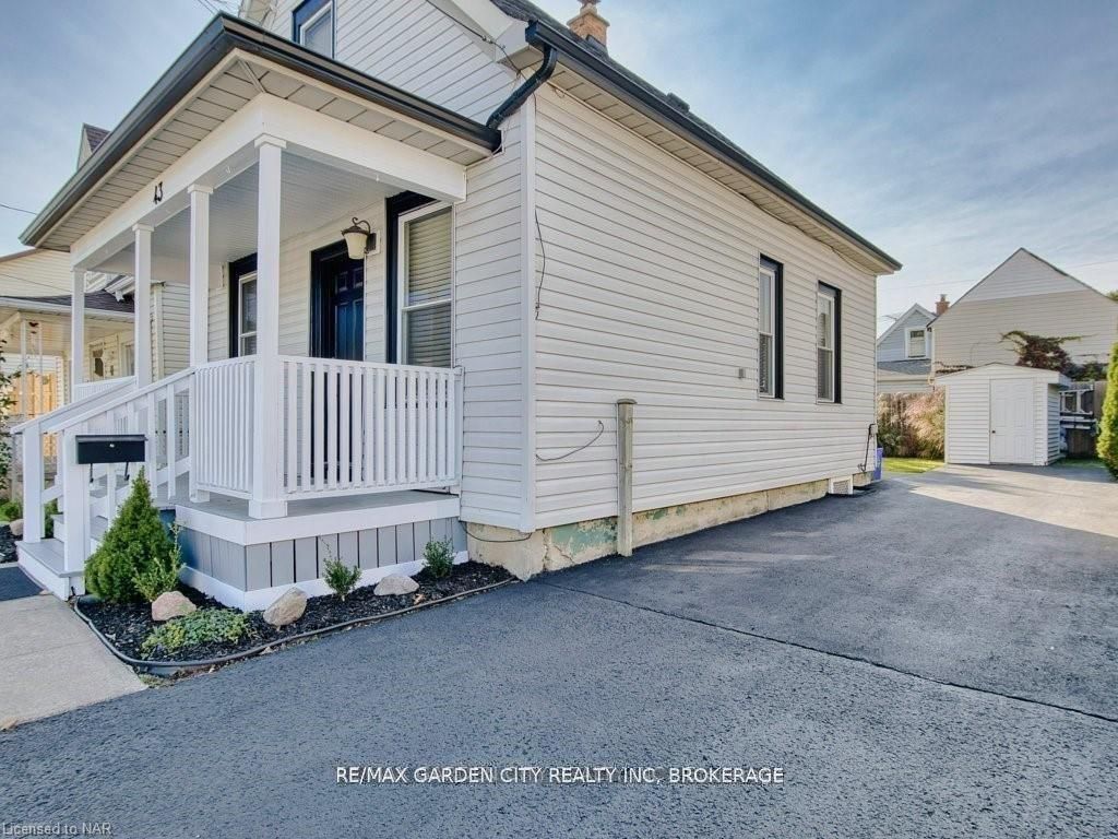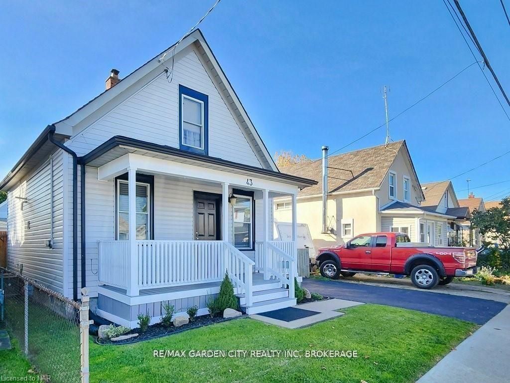 Welcome to this charming 2-bedroom, one-and-a-half-storey home located at 43 st. George st. In st. Catharines, ontario. Nestled in a quiet area, this property offers easy access to the qew, making commuting a breeze. Step inside to discover a host of upgrades that enhance both style and functionality. The interior features new light fixtures, fresh paint, and modern baseboards, creating a welcoming atmosphere throughout. The updated kitchen boasts stylish cabinets and ample storage, perfect for culinary enthusiasts. Relax in the beautifully renovated bathroom, designed with comfort in mind. Crown moulding adds a touch of elegance, completing the homes inviting aesthetic. Outside, enjoy a serene setting perfect for unwinding after a long day. This well-maintained property is ideal for first-time buyers or those looking to downsize. Don't miss the chance to make this delightful home yours! Tons of upgrades: new water tank (owned)installed in (2021),extended new asphalt driveway(2020),new windows installed (2021) downstairs and upstairs back bedroom, new window coverings (2021), new roof on shed (2023),restructured front porch(2024),new matching convectional oven and microwave/ range above (2021),new flooring installed throughout house except back bedroom(2024),installed 9mm poly underneath house and crawlspace walls insulated with spray foam(2021),new trim and baseboard (2024),house freshly painted (2024),new carpet on stairs(2024),new light fixtures (2024)new kitchen cabinets w/crown moulding (2024), new countertops(2024),new extra large