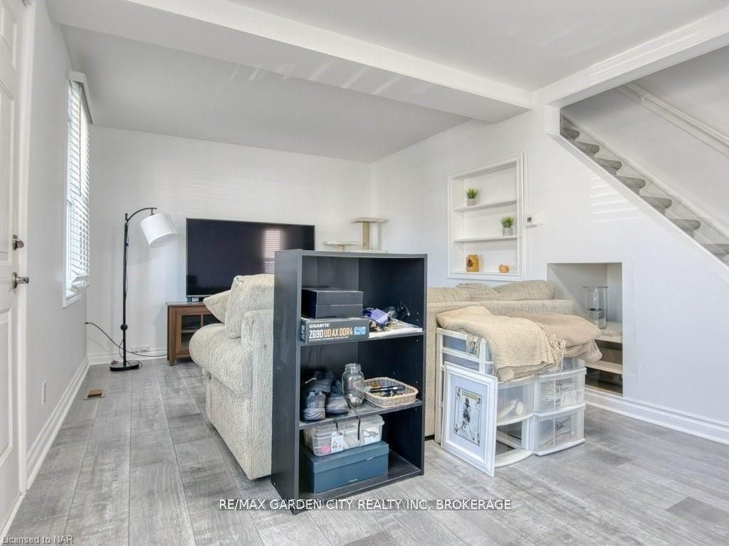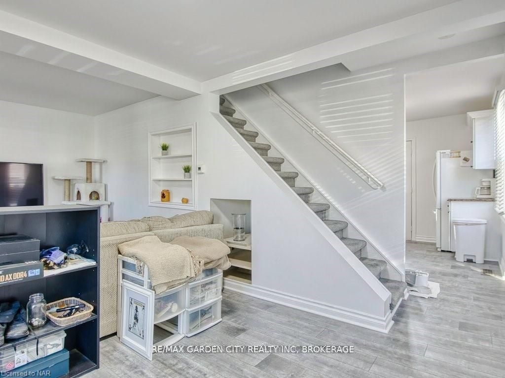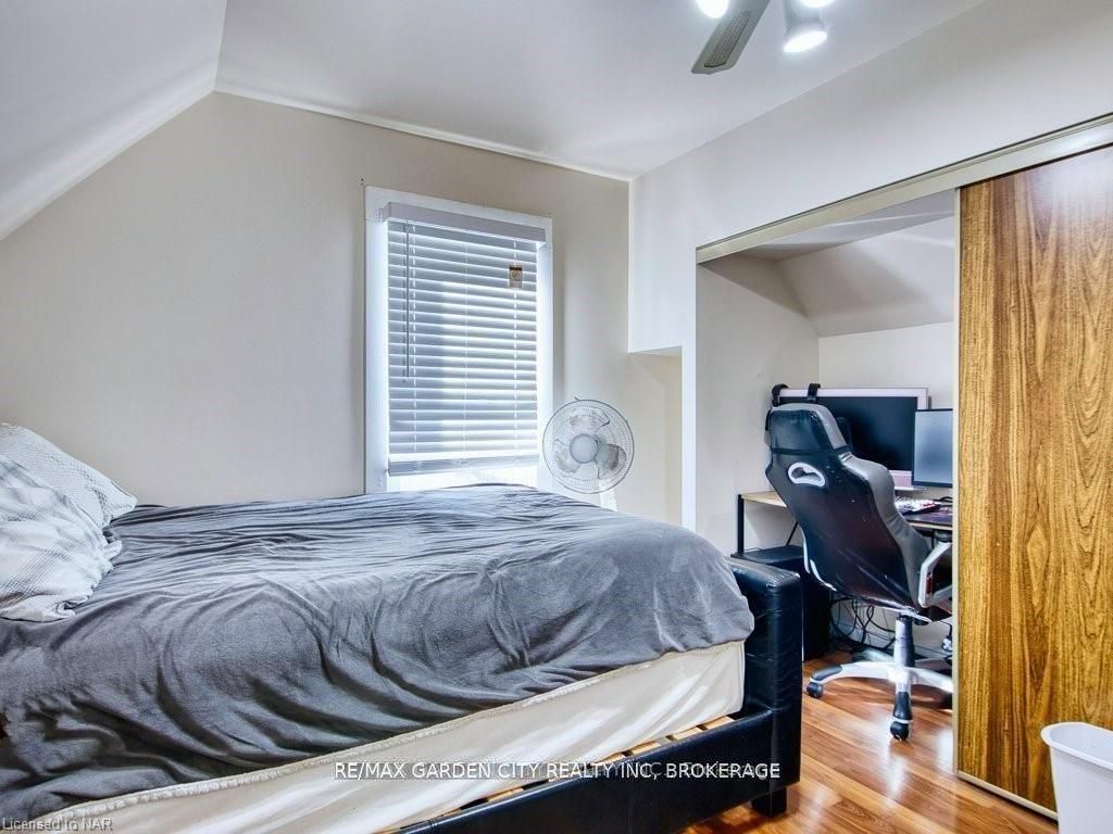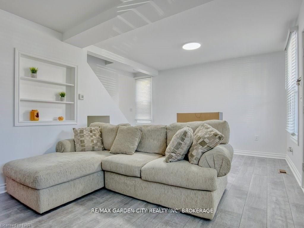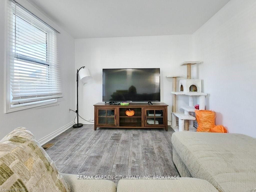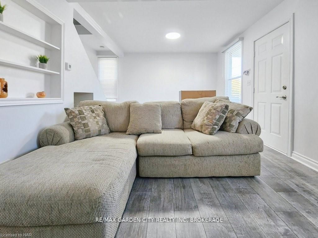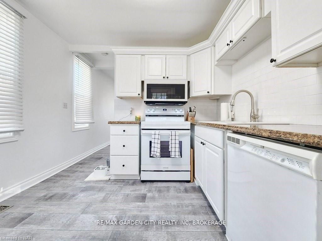 Welcome to this charming 2-bedroom, one-and-a-half-storey home located at 43 st. George st. In st. Catharines, ontario. Nestled in a quiet area, this property offers easy access to the qew, making commuting a breeze. Step inside to discover a host of upgrades that enhance both style and functionality. The interior features new light fixtures, fresh paint, and modern baseboards, creating a welcoming atmosphere throughout. The updated kitchen boasts stylish cabinets and ample storage, perfect for culinary enthusiasts. Relax in the beautifully renovated bathroom, designed with comfort in mind. Crown moulding adds a touch of elegance, completing the homes inviting aesthetic. Outside, enjoy a serene setting perfect for unwinding after a long day. This well-maintained property is ideal for first-time buyers or those looking to downsize. Don't miss the chance to make this delightful home yours! Tons of upgrades: new water tank (owned)installed in (2021),extended new asphalt driveway(2020),new windows installed (2021) downstairs and upstairs back bedroom, new window coverings (2021), new roof on shed (2023),restructured front porch(2024),new matching convectional oven and microwave/ range above (2021),new flooring installed throughout house except back bedroom(2024),installed 9mm poly underneath house and crawlspace walls insulated with spray foam(2021),new trim and baseboard (2024),house freshly painted (2024),new carpet on stairs(2024),new light fixtures (2024)new kitchen cabinets w/crown moulding (2024), new countertops(2024),new extra large