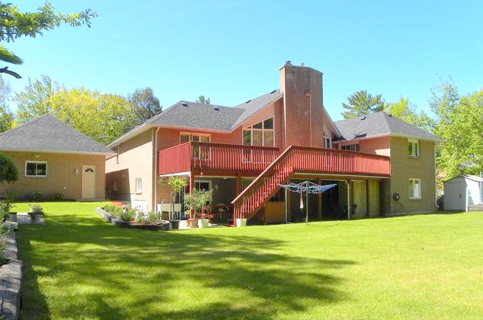 **fabulous bungalow awaiting your tender loving care and design**100ft x 150ft lot with detached double garage**approximately 5200 sf of living space**open concept living/dining area with cathedral ceiling and floor to ceiling brick wood fireplace**family size eat-in kitchen**4 bedrooms on main floor + 1 bedroom in basement**4 full bathrooms**2 walkouts**walkout basement to a covered patio**2 car detached garagewith a garage door opener**central air conditioner, uv filtering system, central vacuum system, inground sprinkler system, 6x10 shed, partially fenced, drilled well & septic, 200 amp breakers electrical panel**short walk to georgian bay cove beach and marina**