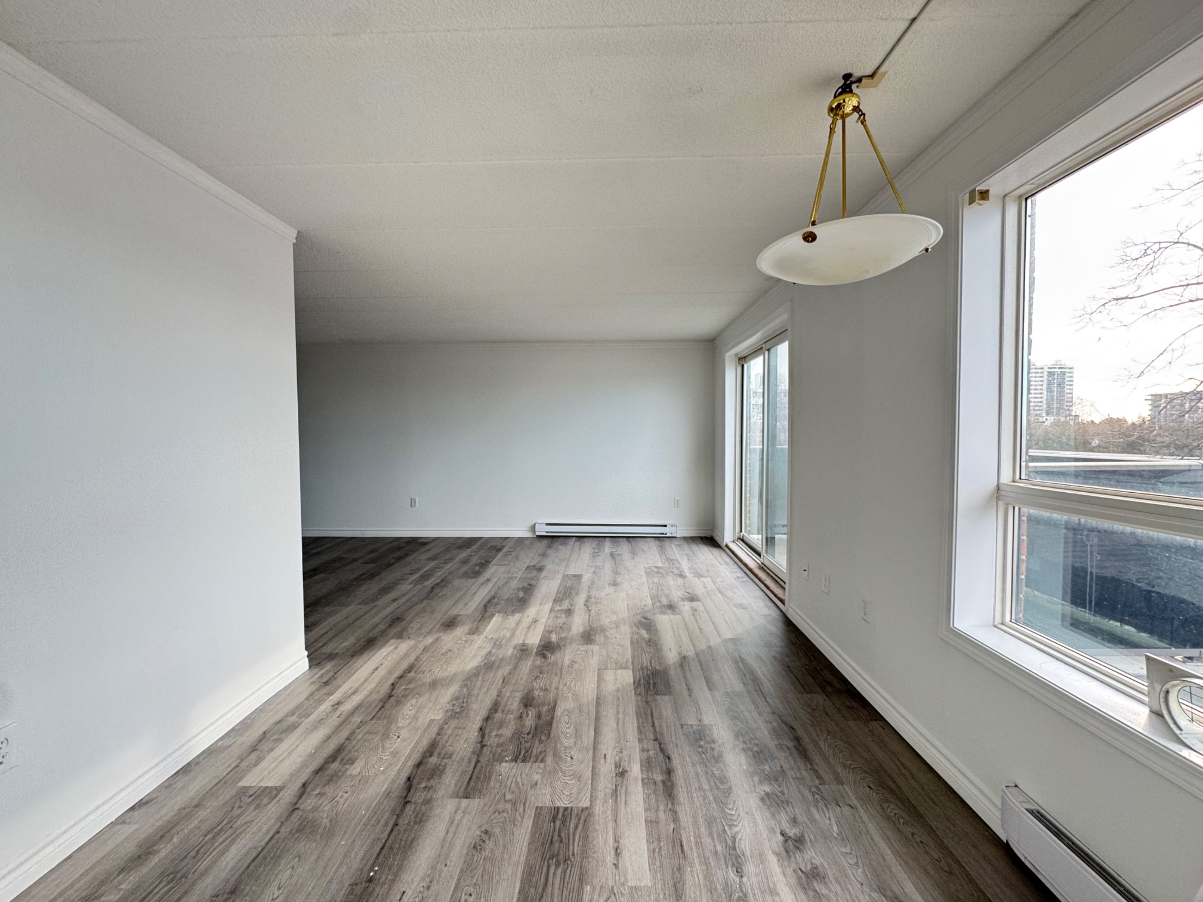 Updated stacked condo townhome! This sun filled 3 bedroom, 2 storey home is situated in a prime oshawa location, steps to transits, uoit & all major amenities. In a prime oshawa location! Featuring south views, laminate floors throughout. Galley style kitchen with backsplash & breakfast area with built-in bench seating. The dining area allows room for entertaining & the open concept living room boasts a sliding glass walk-out to a private balcony. Upstairs offers 3 generous bedrooms, all with great size windows & closet space. A great opportunity for a first time buyers, professional couple or investor!