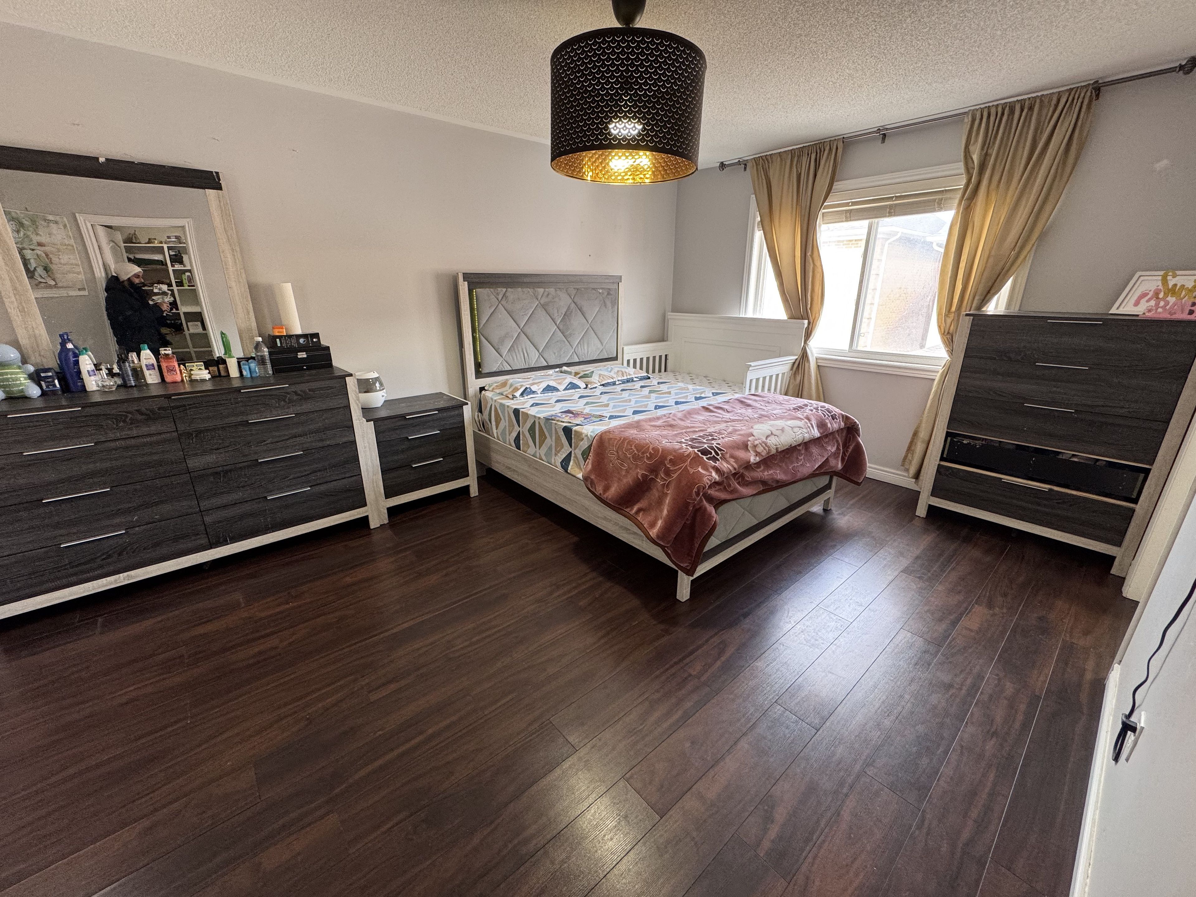 Spacious 4+1 bedroom home in a highly desirable brampton location near creditview & wanless. Upgraded throughout with dark stained hardwood floors and oak staircase. Functional layout featuring open concept living/dining, separate family room overlooking the kitchen, and a large eat-in breakfast area. Stainless steel appliances included. Professionally finished basement with additional space and 4-piece bath. 3 full washrooms + main floor powder room. Inside access from garage, patterned concrete front and back, and a beautiful backyard. Close to pond, parks, mount pleasant trail, grocery and mount pleasant go. 3 parking spots.