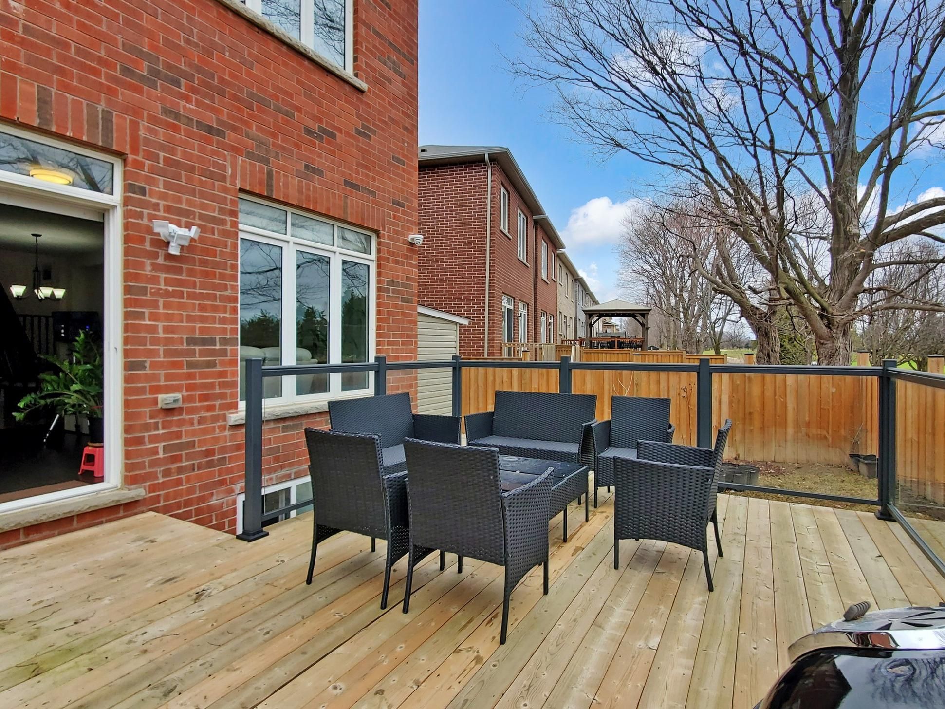 Welcome to this well maintained 3 bedrooms link house nestled in the highly sought-after cedarwood neighborhood, set on a premium lot with facing unobstructed golf course, almost 2000 sq ft, 9' ceiling high on main and second floor, modern kitchen with s/s appliances and granite counter-top, open concept and excellent layout, spacious primary bedroom with 5 pc ensuite include frameless glass shower, double sinks and soaking bathtub, large walk-in closet, living and dining area filled with natural light, perfect for entertaining or relaxing with family, laundry room on second floor, hardwood floor, pot lights, hugh deck with the fully fenced backyard and overlooks the golf course, interlock on front and backyard, extended driveway can park 2 cars, finished basement with separate entrance and 2 additional bedrooms with 2 bathrooms ideal to create potential income, close to park, public school, public transit, plaza and all amenities.
