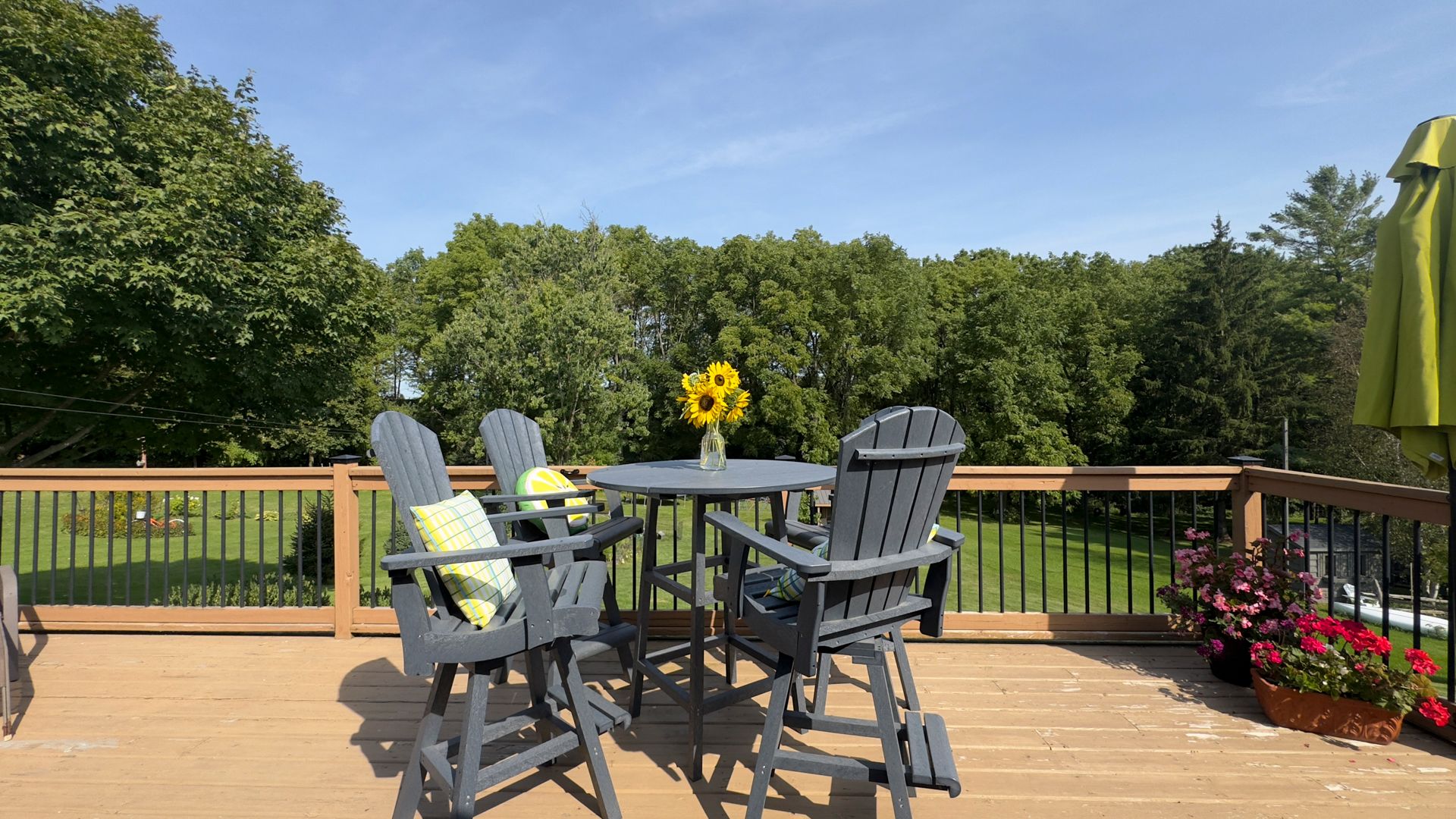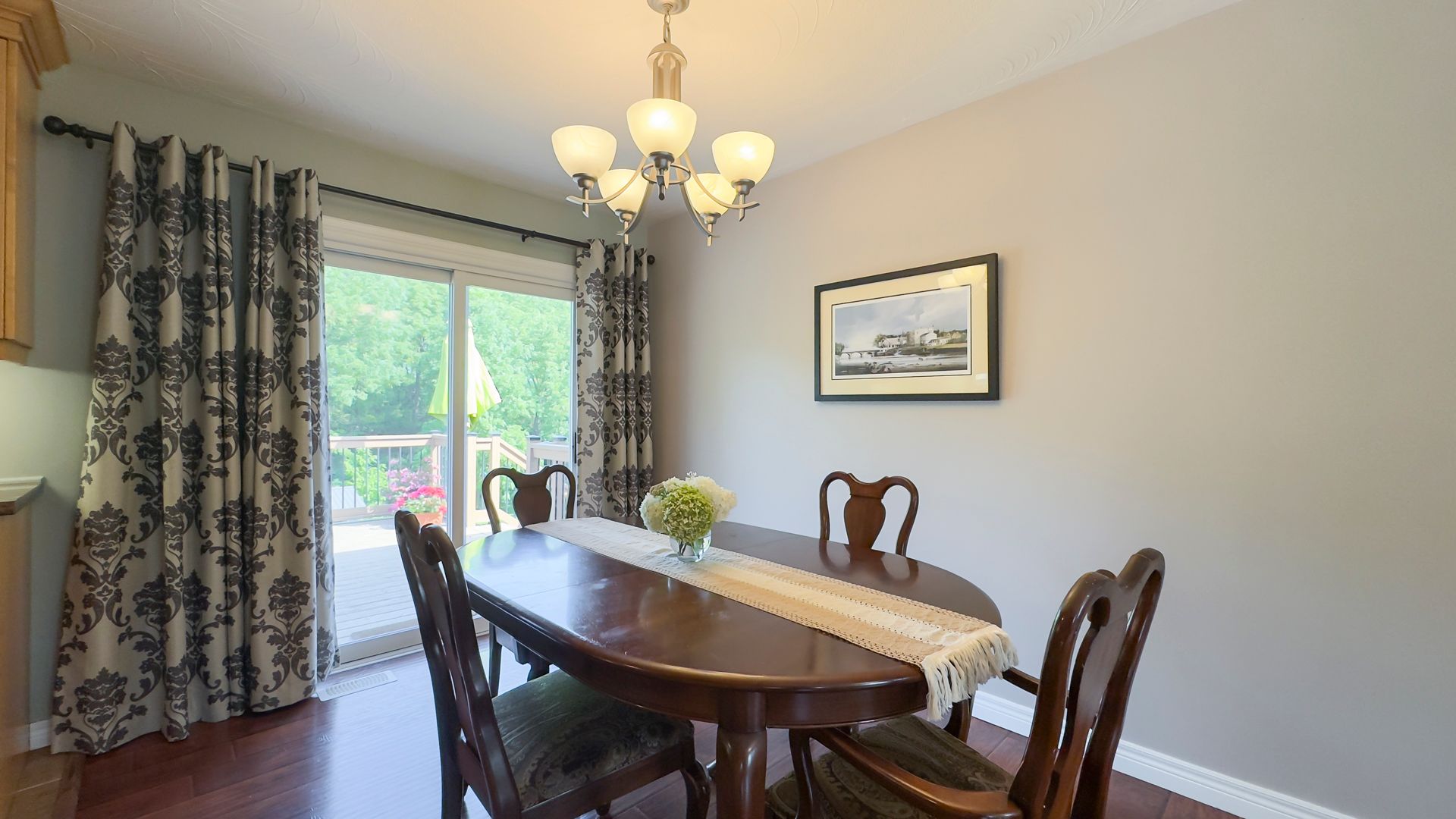 • Open-concept living and dining area with access to an elevated deck.