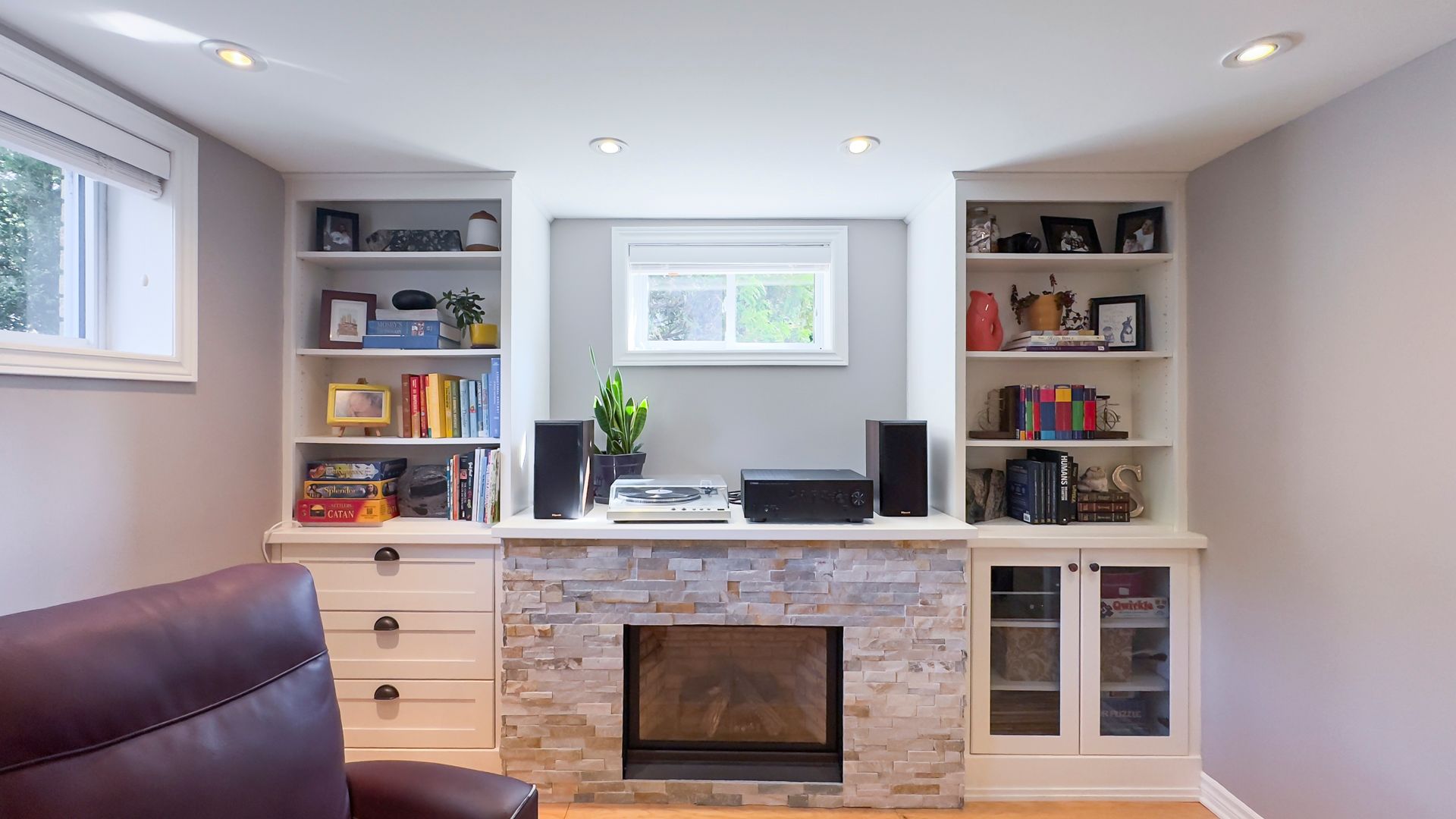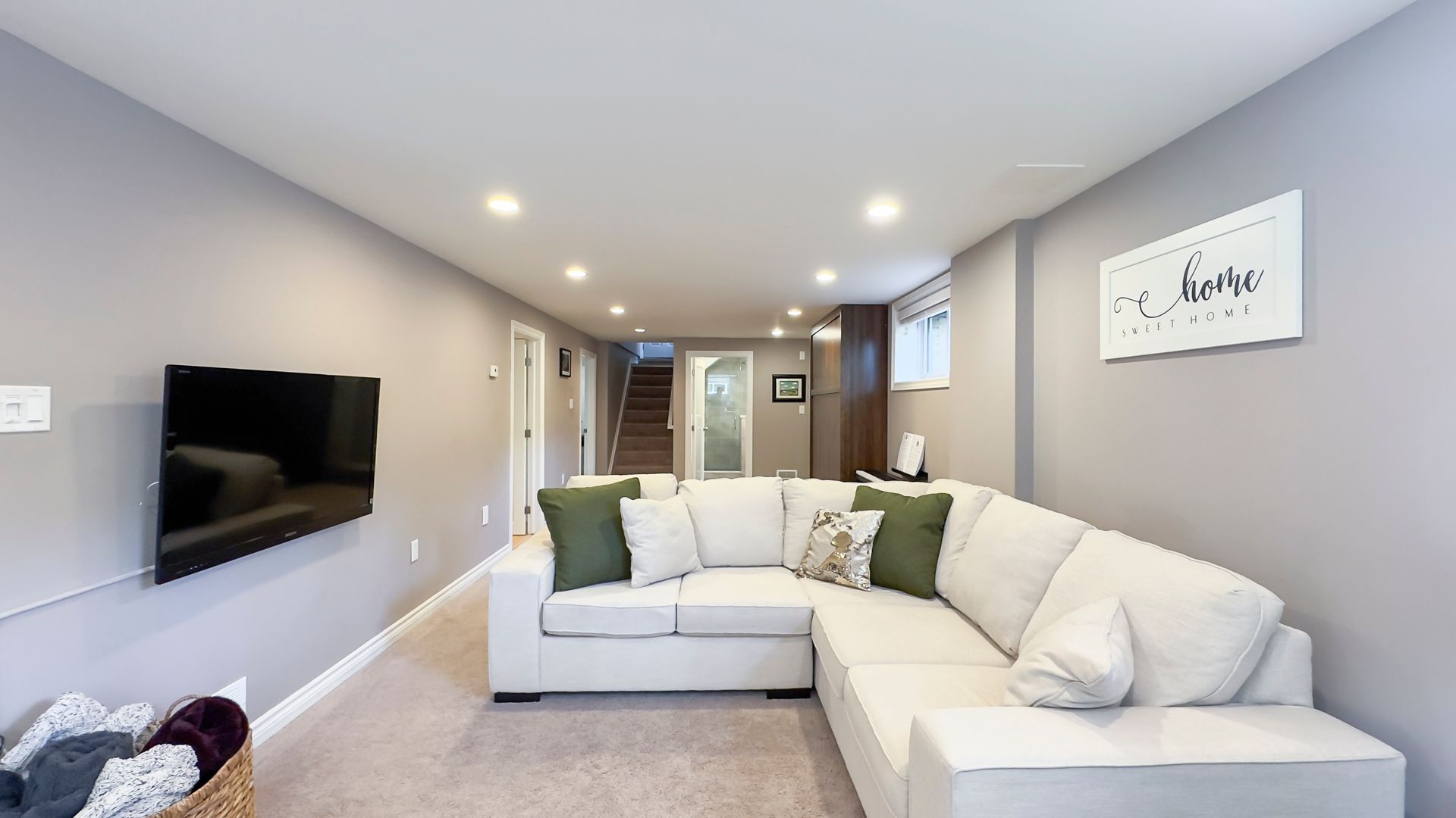 • Finished basement featuring a family room, extra bedroom, and office space.