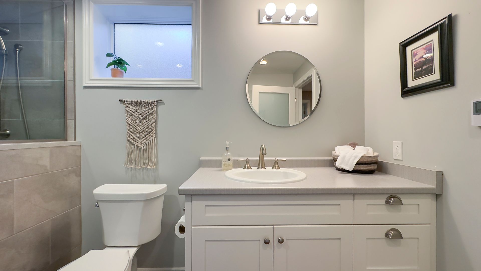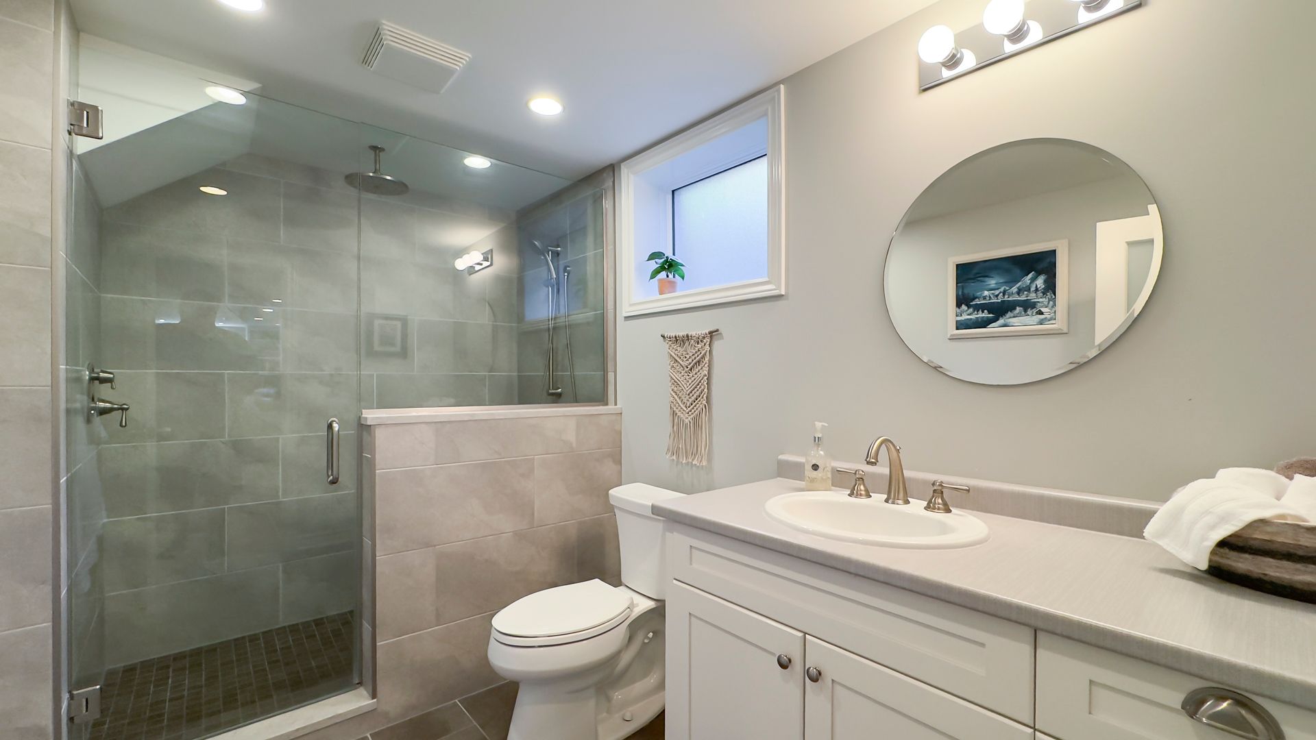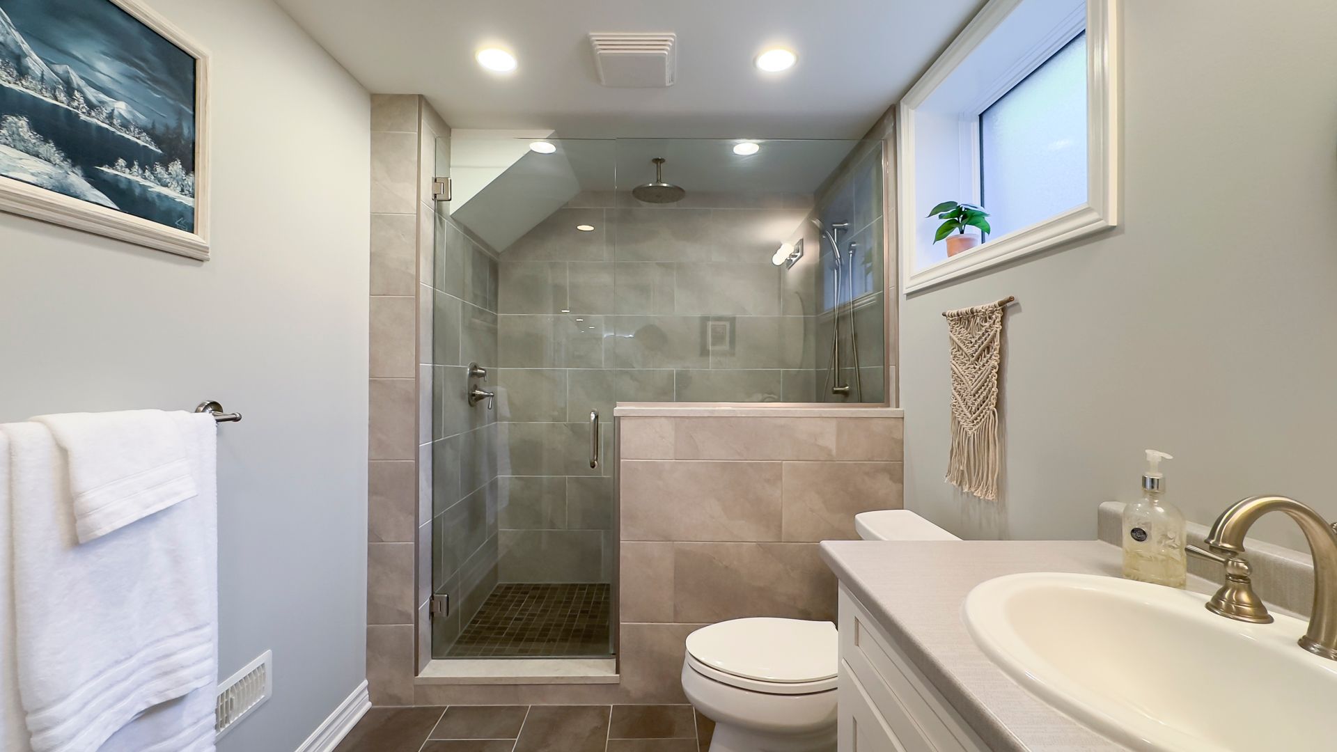 • Spa-like bathroom with a tiled shower and cozy in-floor heating.