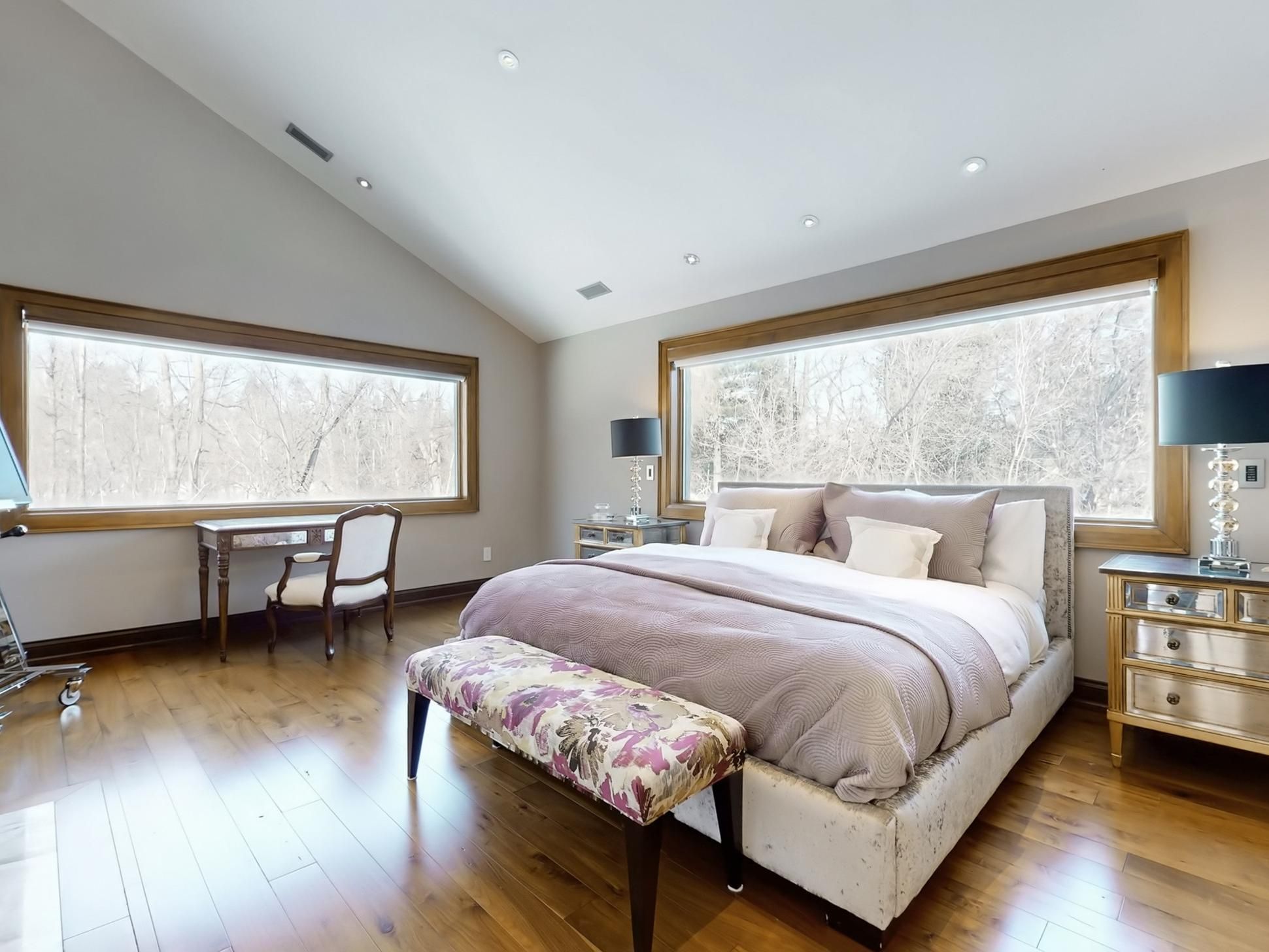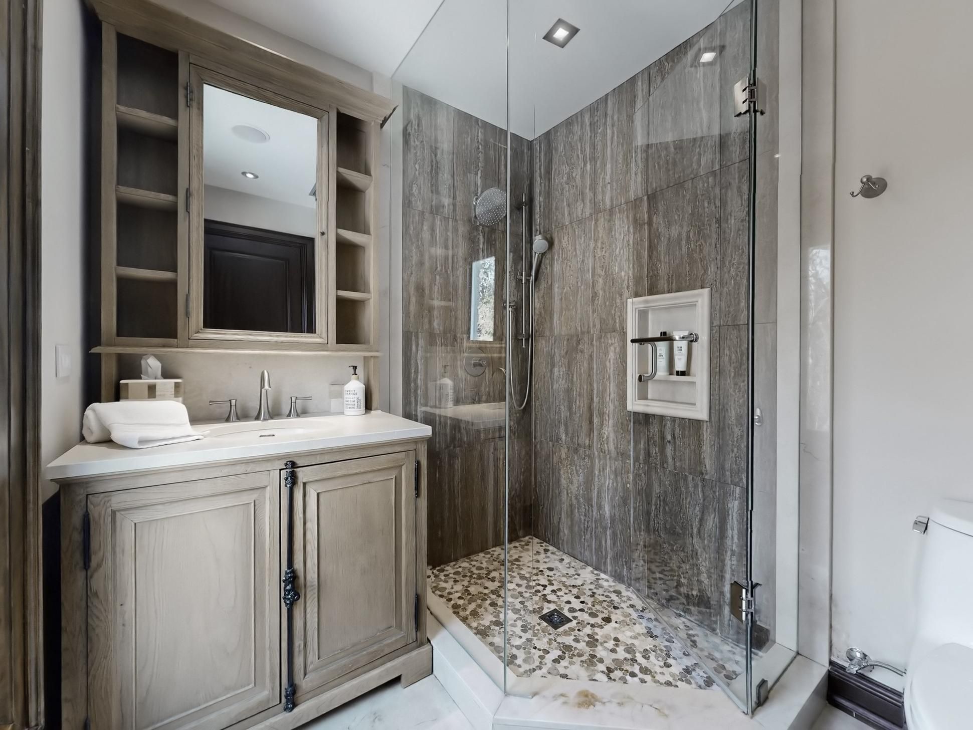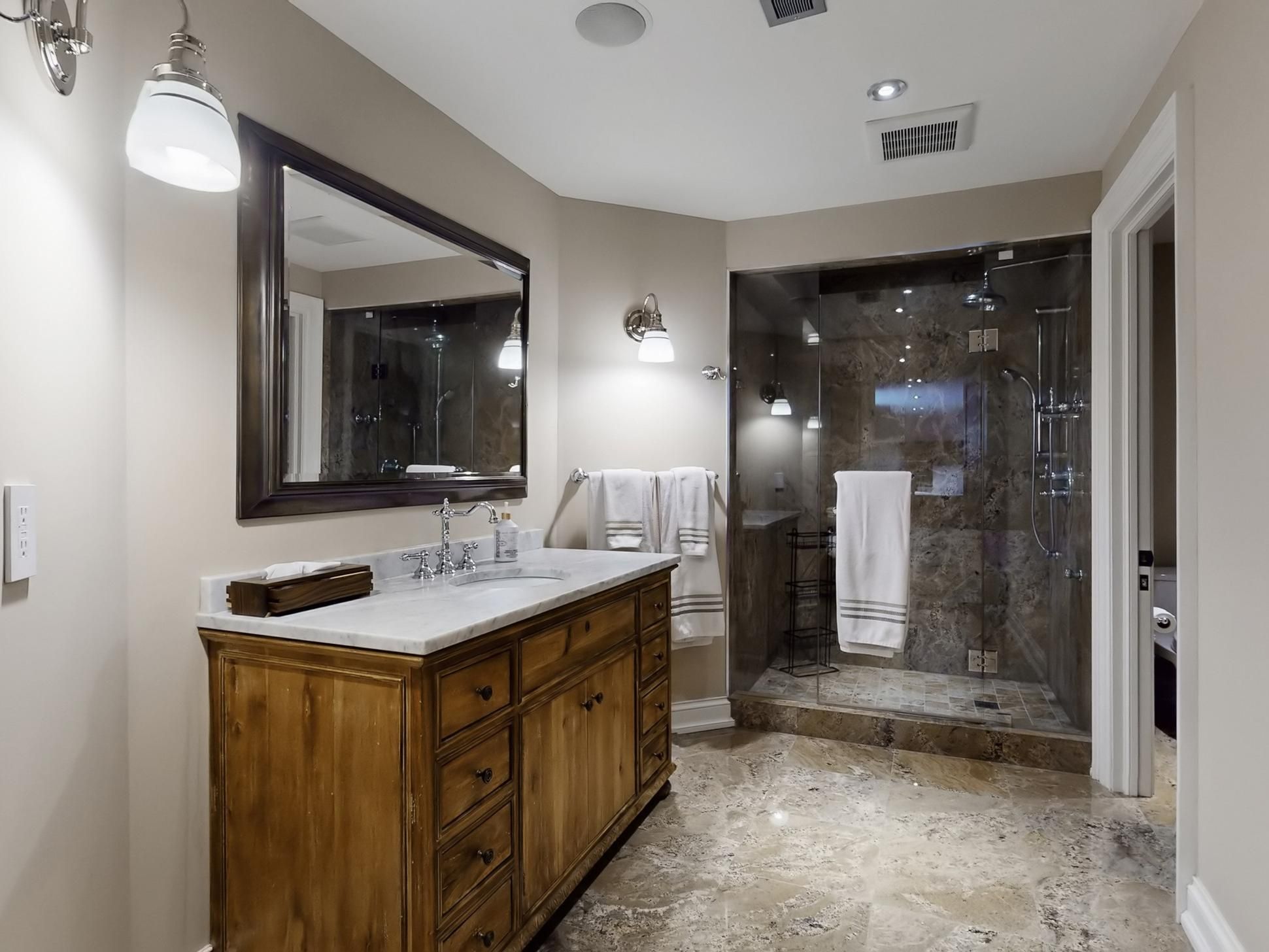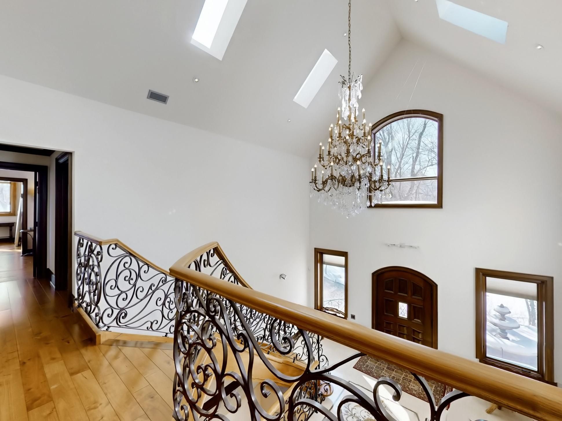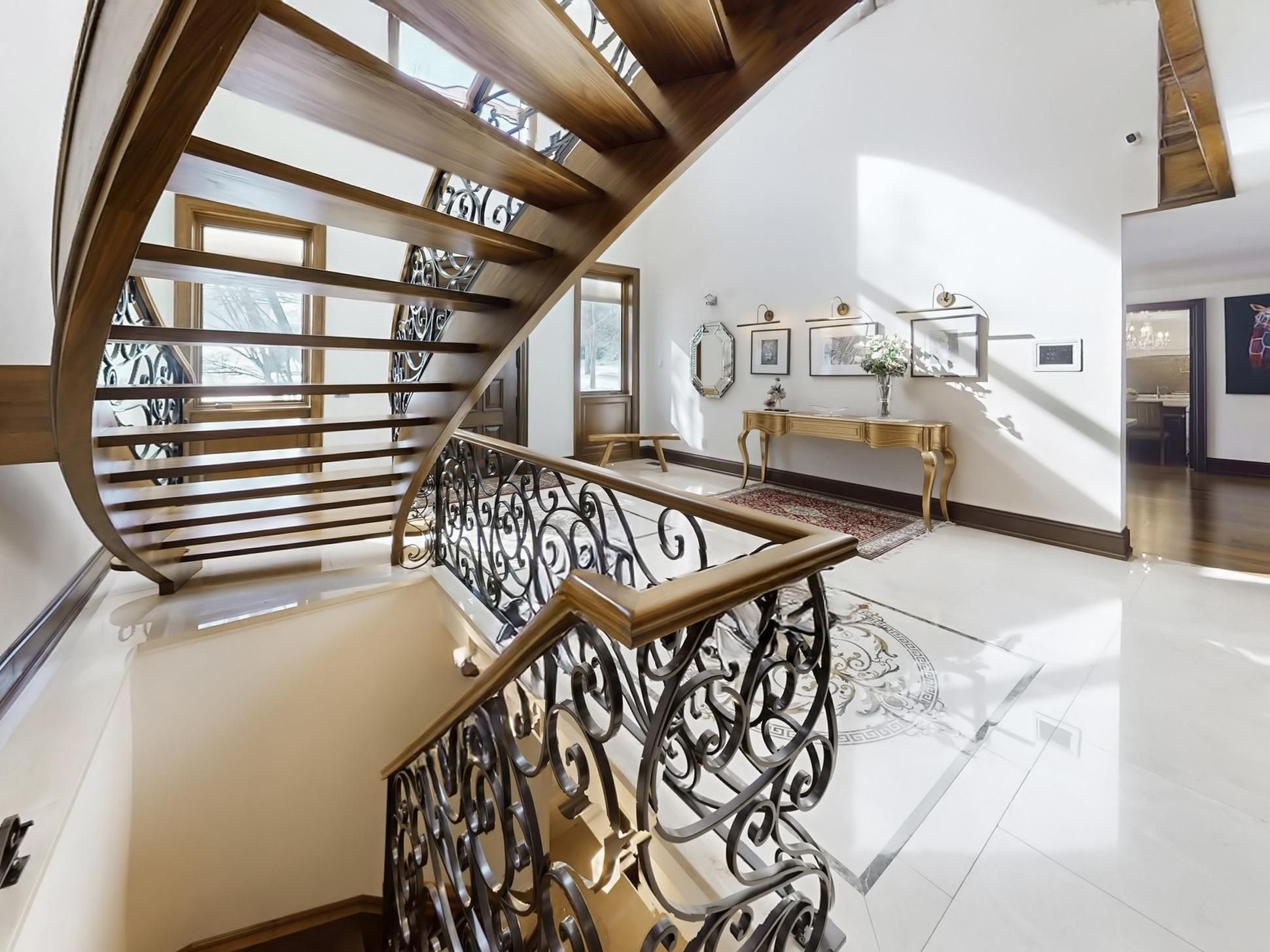 Set behind an automated custom wrought iron gate and framed by towering trees, this estate offers resort-style outdoor living and exquisite interior finishes. The front grounds feature a cobblestone driveway with snow-melt, basketball court, courtyard w/ fountain and granite bench. The rear grounds include an infinity saltwater pool w/ waterfall and in-pool seating, flagstone dining area , covered cedar lounge w/ seamless access from the family room, plus a wooded entertainment area w/ fire pit and an upper deck overlooking the property, all backing onto conservation. Inside, a dramatic foyer with 25' cathedral ceiling, four skylights, crystal chandelier, curved walnut staircase, and crema marfil marble floors. Walnut floors, custom mahogany doors, and designer lighting flow through the dining and living rooms, the latter w/ deck access. The chef's kitchen offers heated marble floors, bloomsbury cabinetry, marble counters, thermador appliances, dual islands, and a built-in miele coffee station, connecting to the family room w/ floor-to-ceiling fireplace and rear grounds views. Upstairs, the luxurious primary suite features nearly 13' ceilings, a sitting area, fireplace, juliet balcony, walk-in closet, and 7-piece spa-inspired ensuite with heated floors, freestanding air-jet tub, dual water closets, and glass shower. A secondary primary bedroom w/ cathedral ceilings. Remaining bedrooms include vaulted ceilings ranging approximately from 10' to 12'9". The finished lower level has walk-up access to the yard, recreation room, games room, in-law quarters, , gym/guest suite, secondary laundry additional highlights: 3. 5-car heated garage with workshop and storage closet, indiana limestone façade, cedar roof with copper accents, pella windows with built-in blinds, home automation, security system, and indoor/outdoor lighting and audio throughout. Walk to top-ranked st. Theresa chs and drive to sac, sas, hts, lauremont, cds & villanova.