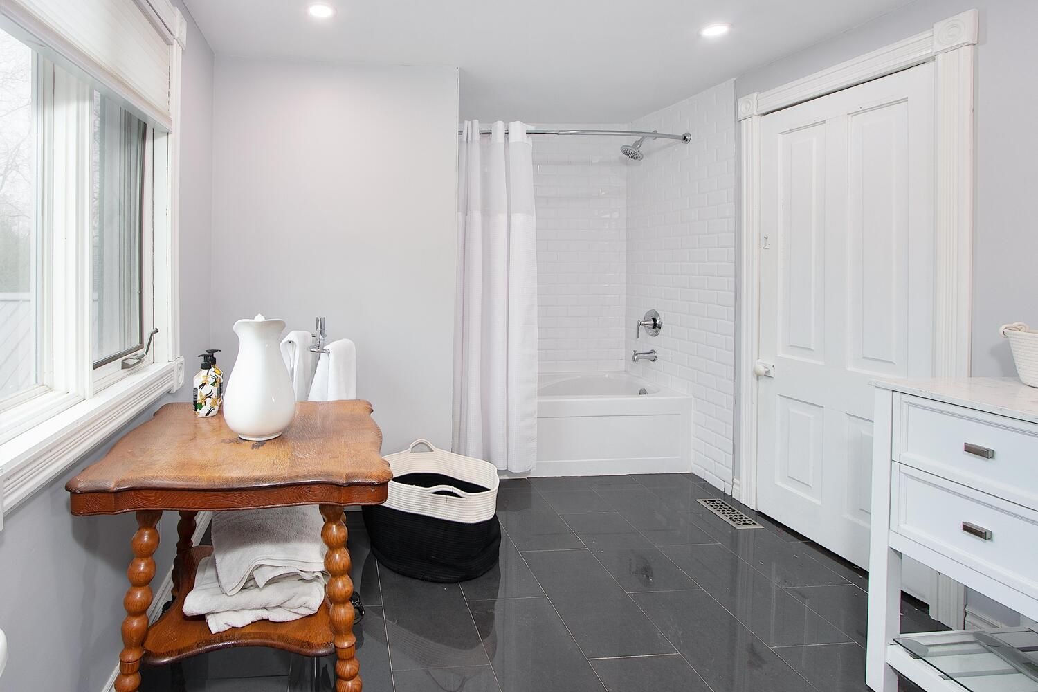 • Spacious main floor bedroom with a beautiful ensuite bathroom.
