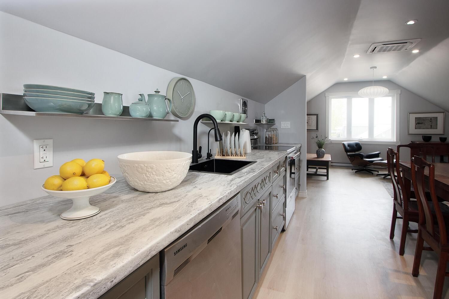 • Large insulated garage with potential for a workshop or art studio.