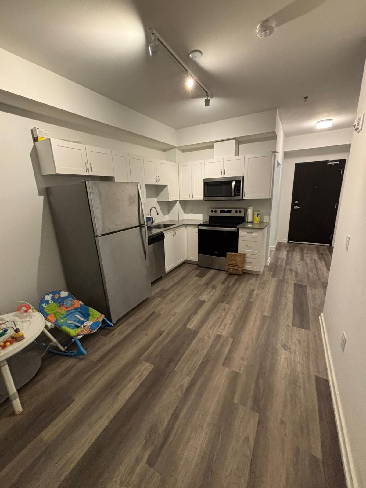 Modern 1 bedroom + den, 1 bathroom condo for rent in a prime barrie location, offering a bright and thoughtfully designed open-concept layout ideal for professionals or couples. The unit features brand-new stainless steel appliances, modern finishes throughout, large windows with plenty of natural light, in-suite laundry, a contemporary bathroom, and a versatile den perfect for a home office or guest space. Includes 1 assigned parking space and is located in a well-maintained building close to shopping, restaurants, parks, public transit, major highways, the go station, and barrie's waterfront and downtown core, providing a perfect balance of comfort, style, and convenience.