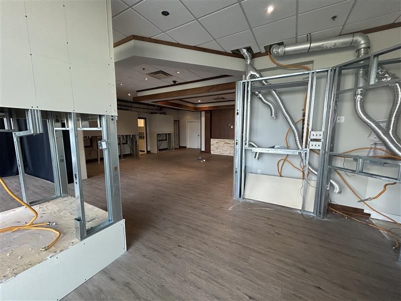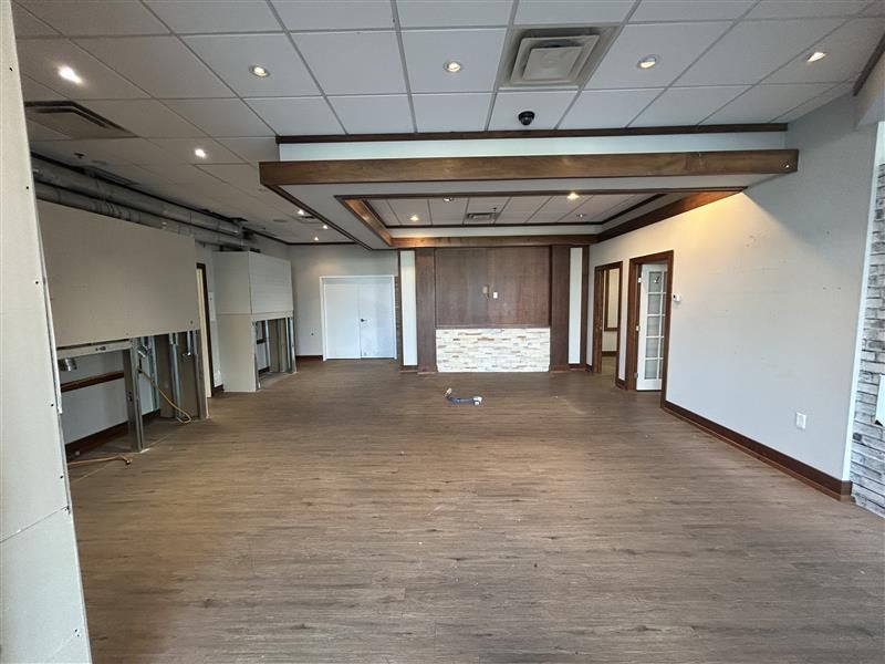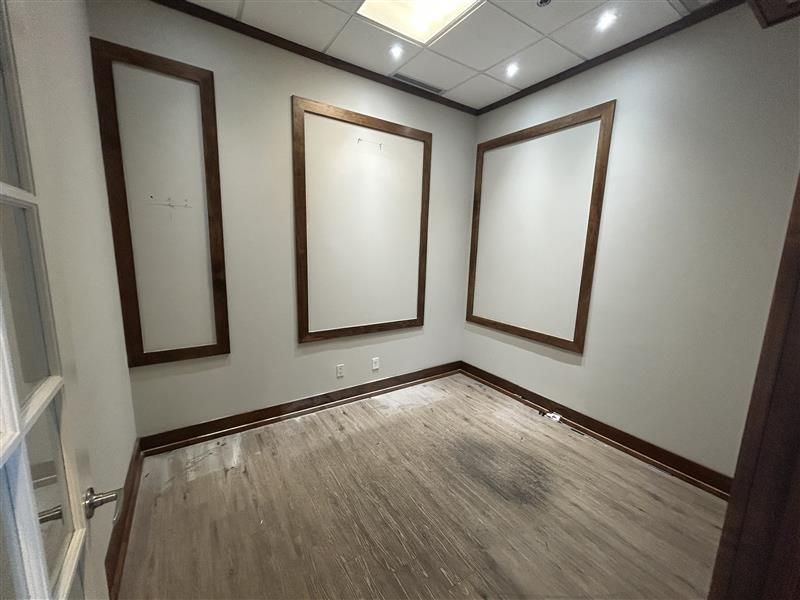 • Includes two private offices, a large open work area, and kitchenette.