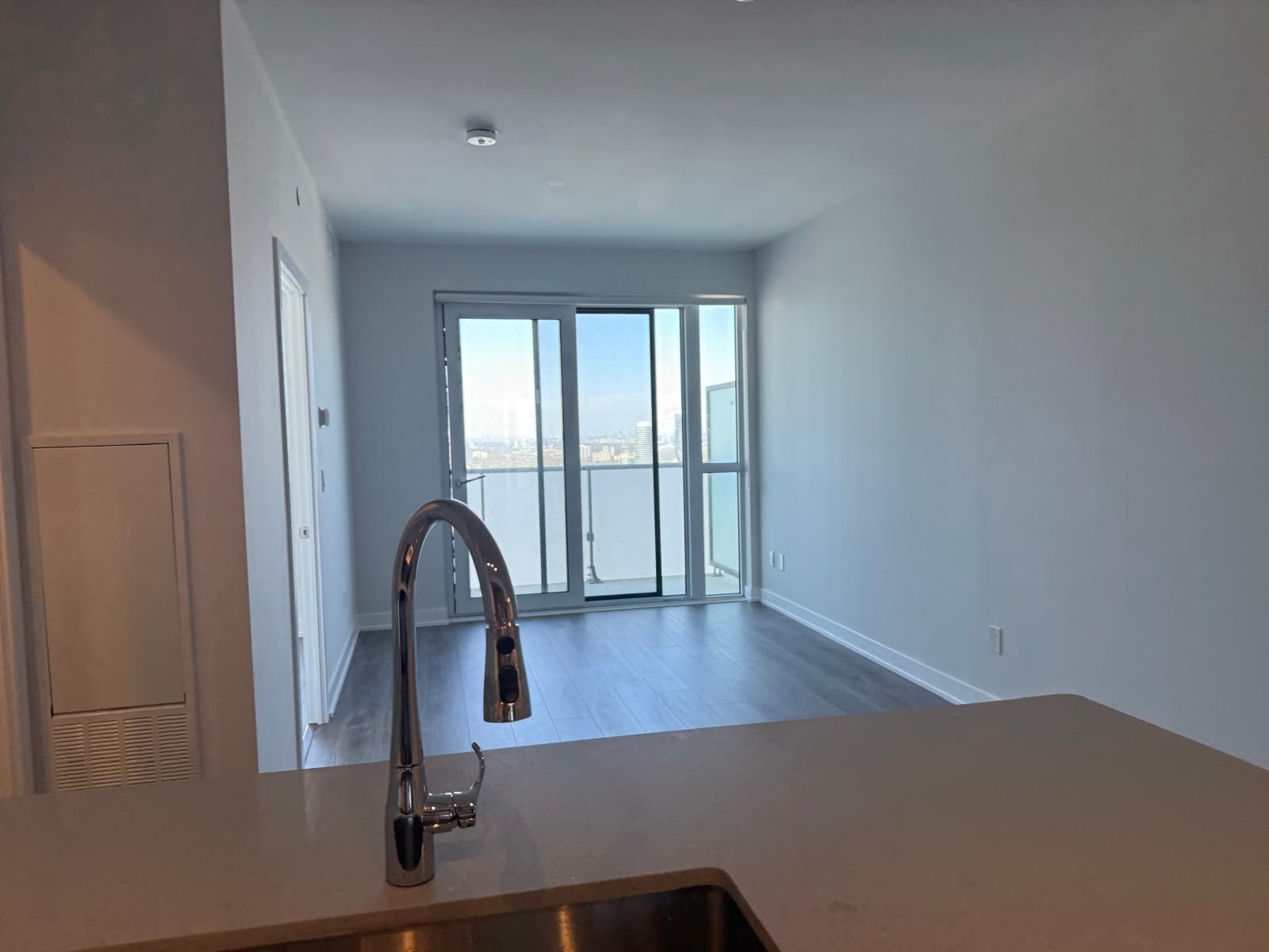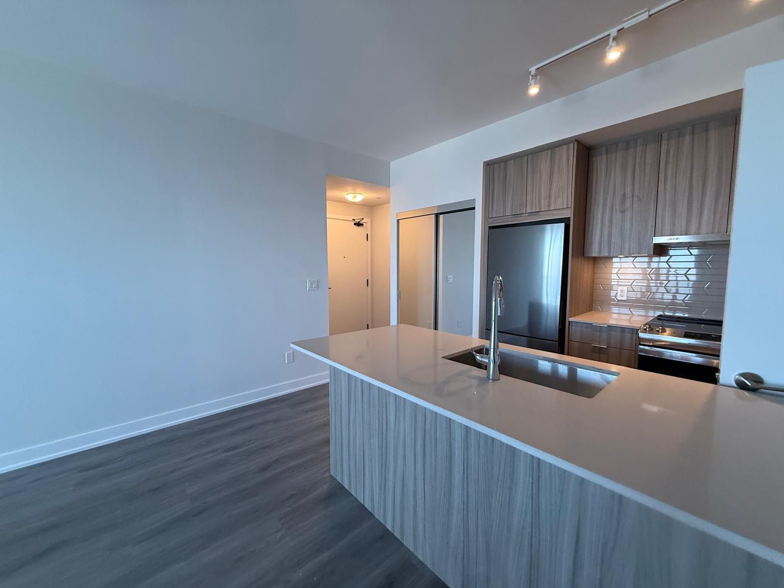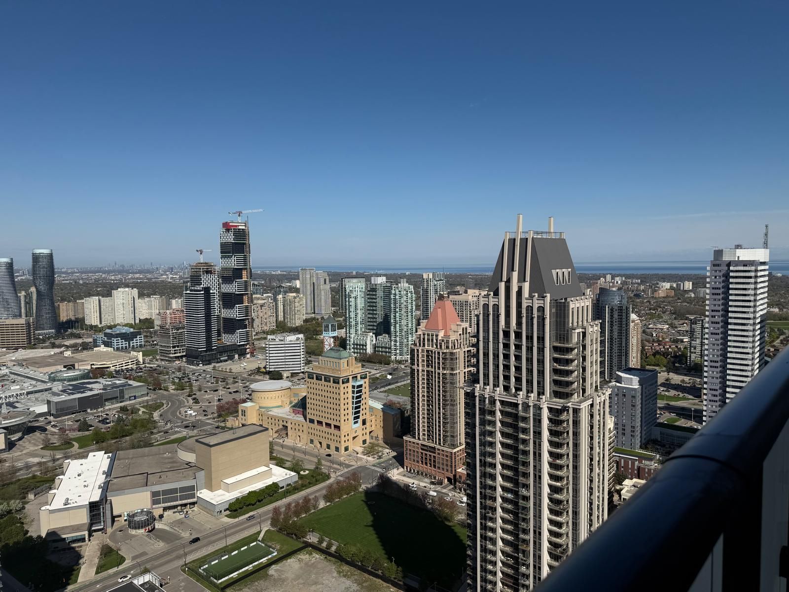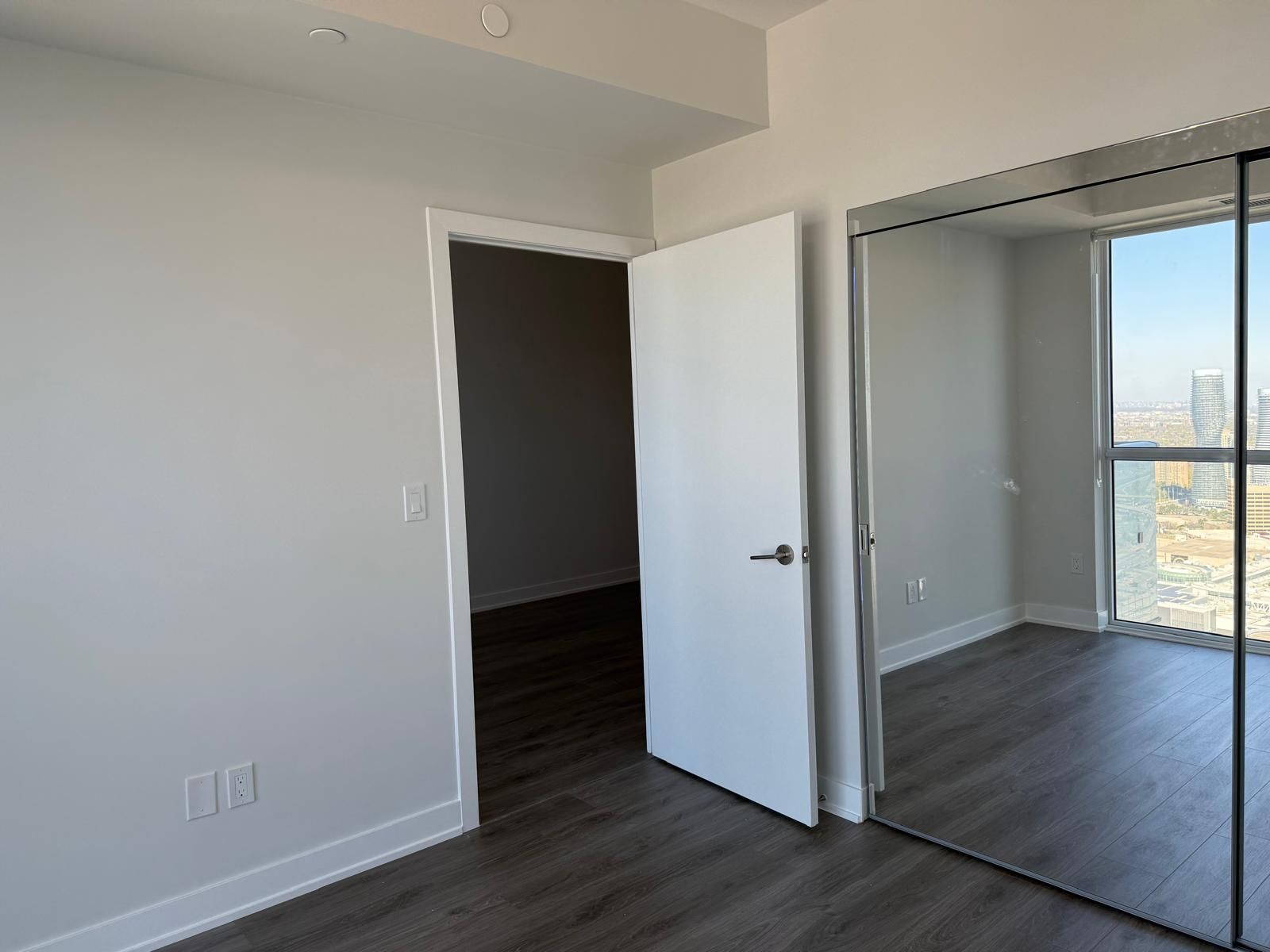 Just over a year old avia tower one, one bedroom suite, perfectly located in the vibrant core of downtown mississauga. Situated on the peaceful 43rd floor, this modern condo offers fresh air, quiet surroundings, and breathtaking east-facing views from your private balcony. Enjoy a bright open-concept layout with sleek contemporary finishes. The gourmet kitchen is upgraded with stainless steel appliances, quartz countertops, a stylish backsplash, and an oversized sink. Soaring 9-foot ceilings and floor-to-ceiling windows fill the space with natural light. The spacious primary bedroom features a mirrored sliding closet door. Just steps to the new lrt, celebration square, square one shopping centre, sheridan college, food basic , bus terminal, parks, schools, restaurants, and entertainment. Quick and easy access to highways 401, 403, and the qew.