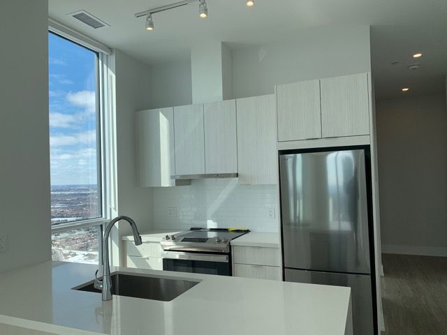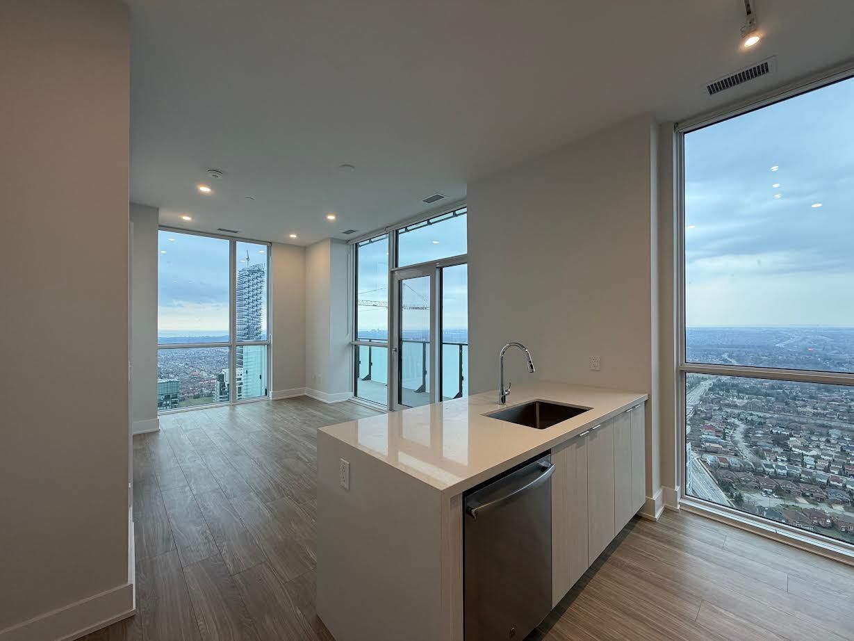 Penthouse!!! For lease welcome to this bright and beautifully appointed penthouse corner suite in the heart of mississauga's vibrant city centre, just steps from square one shopping centre. This stunning 2-bedroom, 2-bathroom residence offers breathtaking, unobstructed views of lake ontario and the downtown toronto skyline. Featuring a highly functional layout, this sun-filled unit boasts 9-foot ceilings and windows throughout, flooding the space with natural light. The open-concept living and dining area is ideal for entertaining and seamlessly walks out to a private balcony-perfect for enjoying spectacular sunset and city views. The modern kitchen is equipped with quartz countertops, built-in appliances, and gleamy finishes, combining style and practicality. The spacious primary bedroom features generous open closet space for his and her and a private ensuite, while the second bedroom is perfect for a growing family, guests, or a home office. Enjoy premium building amenities including a fitness centre, media and games rooms, rooftop deck/garden, visitor parking, and 24-hour concierge. Grocery shopping right under the building unbeatable location within walking distance to mississauga celebration square, living arts centre, sheridan college, transit (miway & go), restaurants, and entertainment, with easy access to highways 403, 401, and qew. Surrounded by cultural attractions such as the art gallery of mississauga and opera mississauga, and endless dining and recreation options. This location offers a dynamic urban lifestyle. Perfect for professionals, families, and investors-there's always something to see and do in this thriving community, pictures taken earlier. Aaa tenant, tenant to pay all the utilities and tenant insurance. Easy showing lock box