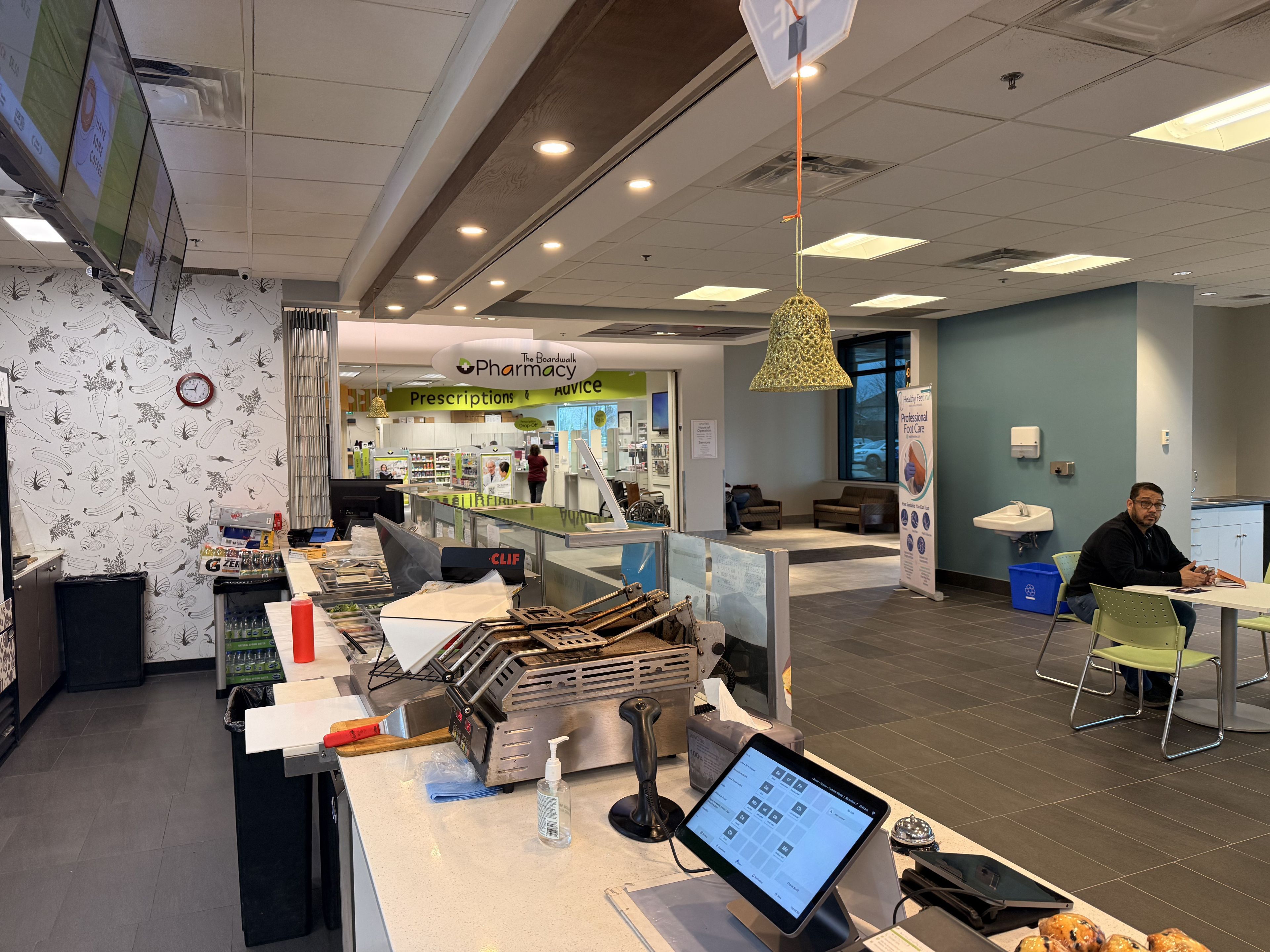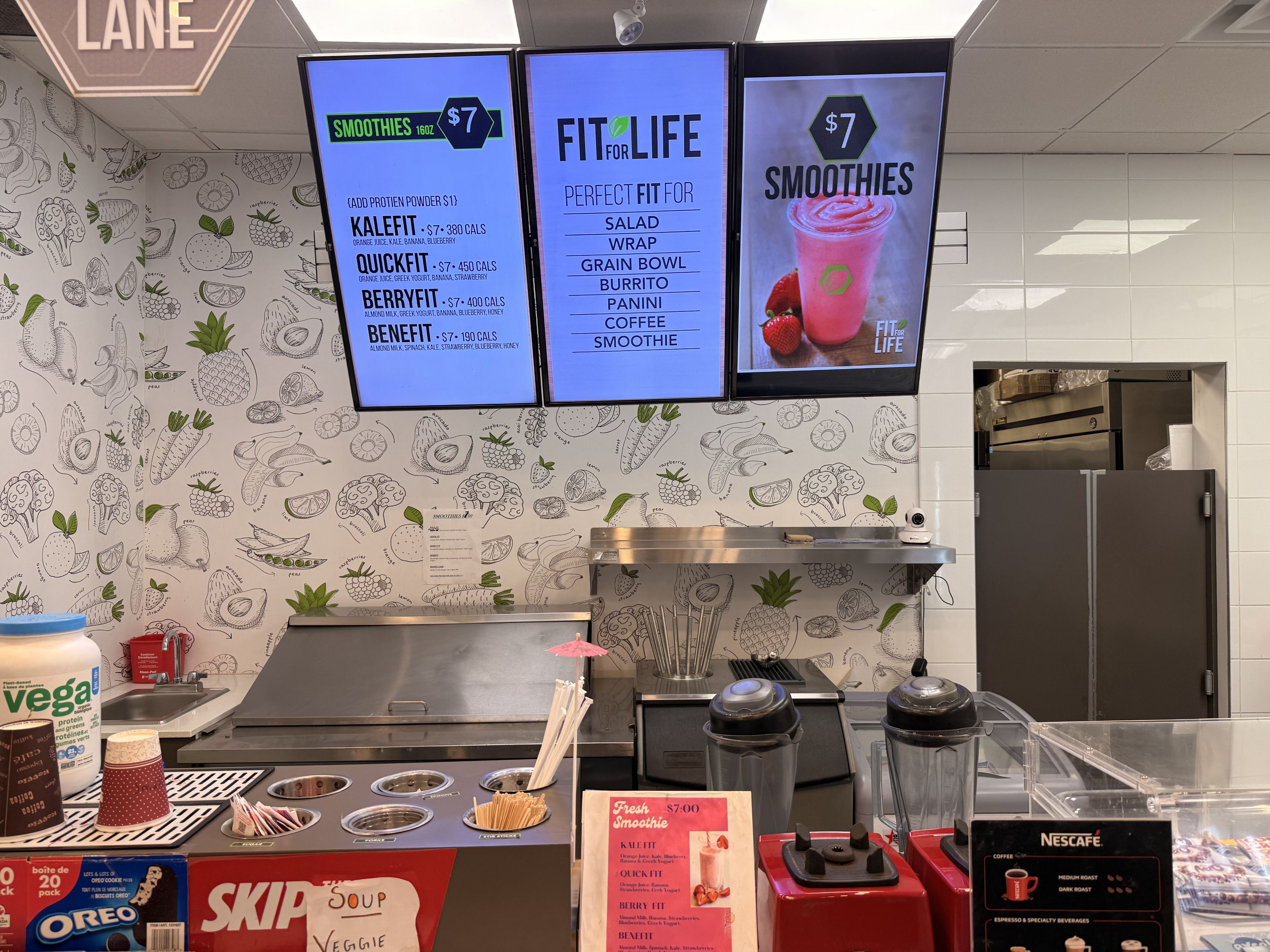 • Menu features fresh breakfast options, premium coffee, and fruit smoothies.
