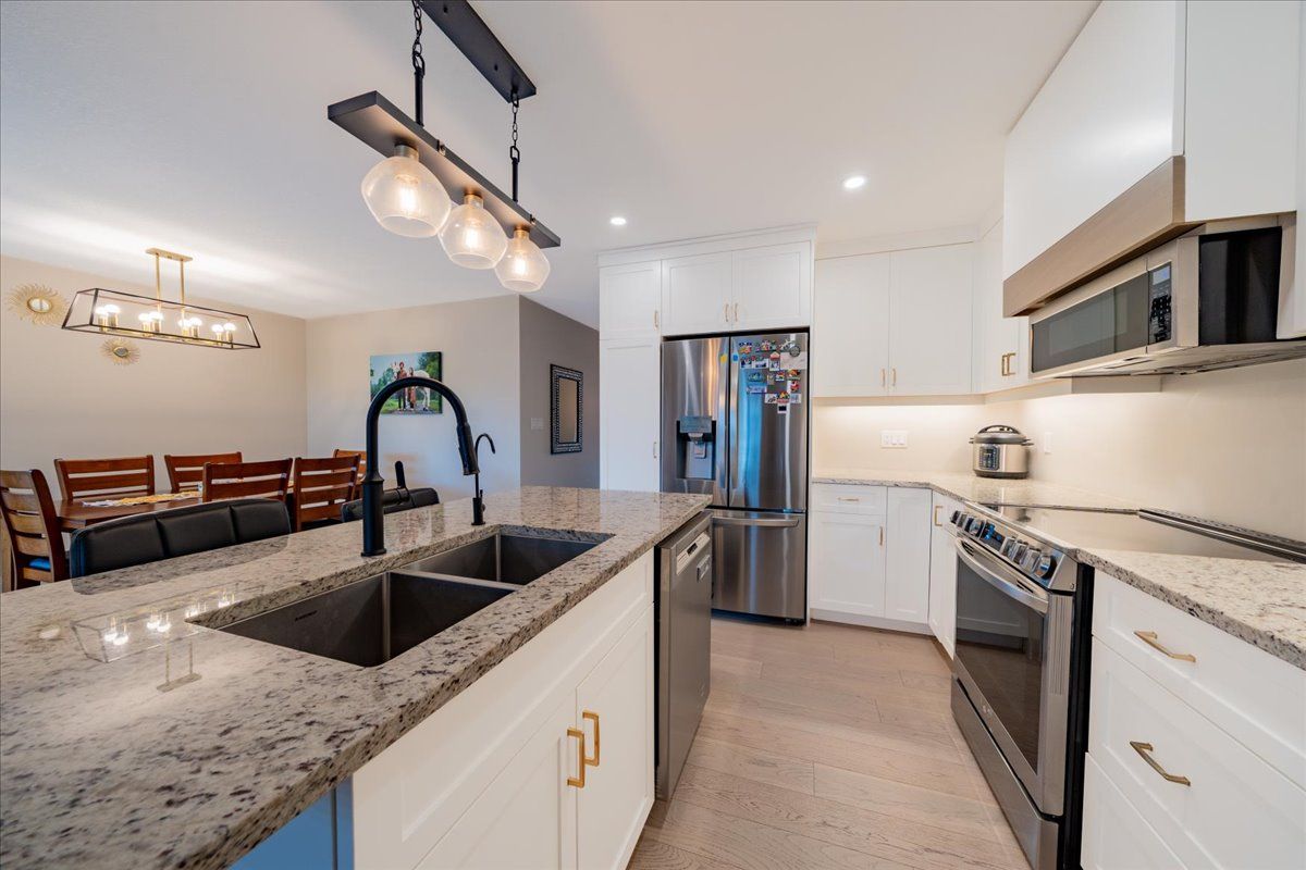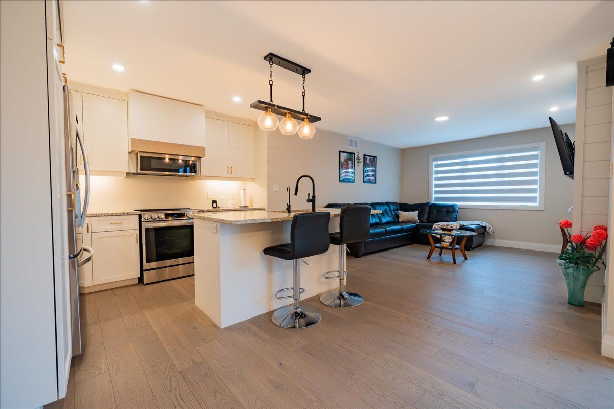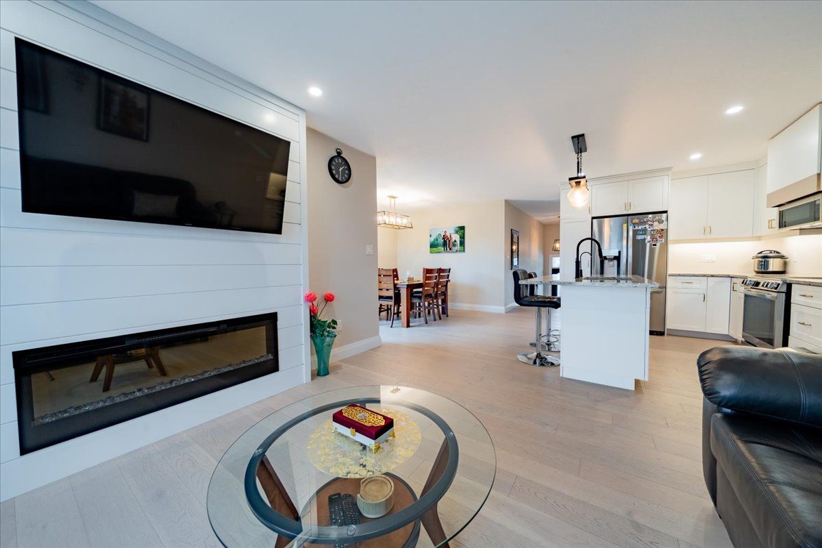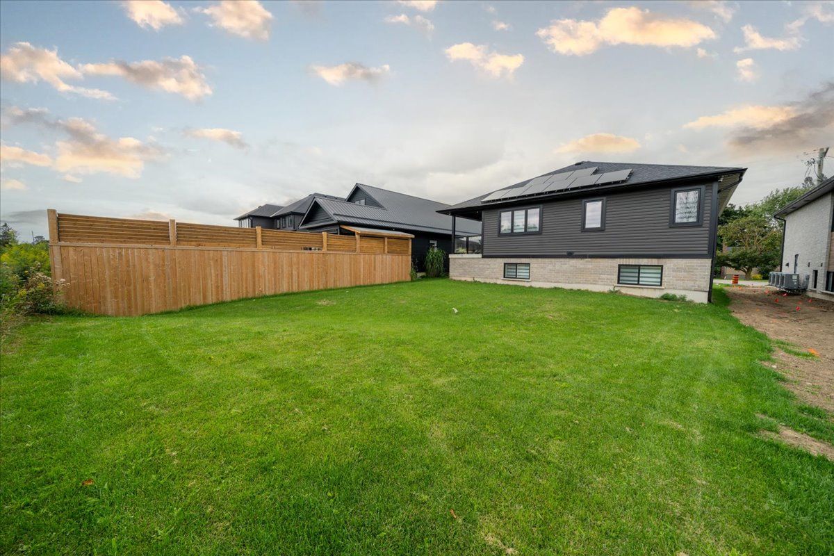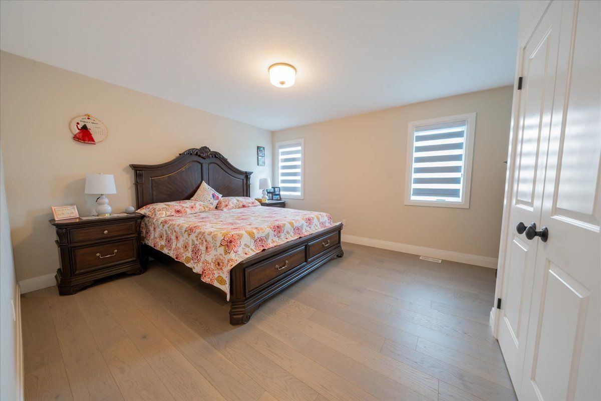 Charming 4-bedroom detached bungalow, featuring a warm and functional layout. The open-concept kitchen boasts granite countertops and stainless-steel appliances, flowing seamlessly into a bright and spacious great room highlighted by a built-in wall fireplace perfect for relaxing or entertaining. The main floor offers hardwood flooring throughout, a private primary bedroom with ensuite, an additional bedroom, and a full bathroom. Downstairs, the fully finished basement is flooded with natural light thanks to large windows and includes two extra bedrooms, a full bathroom, and a generous recreation room. With a separate entrance from the garage, there's excellent potential for an in-law suite. The basement is finished with durable plank laminate flooring. Set on a deep lot, this home also features solar panels to help lower hydro bills an eco-friendly and cost-saving bonus. A must-see property with versatility, charm, and smart upgrades.
