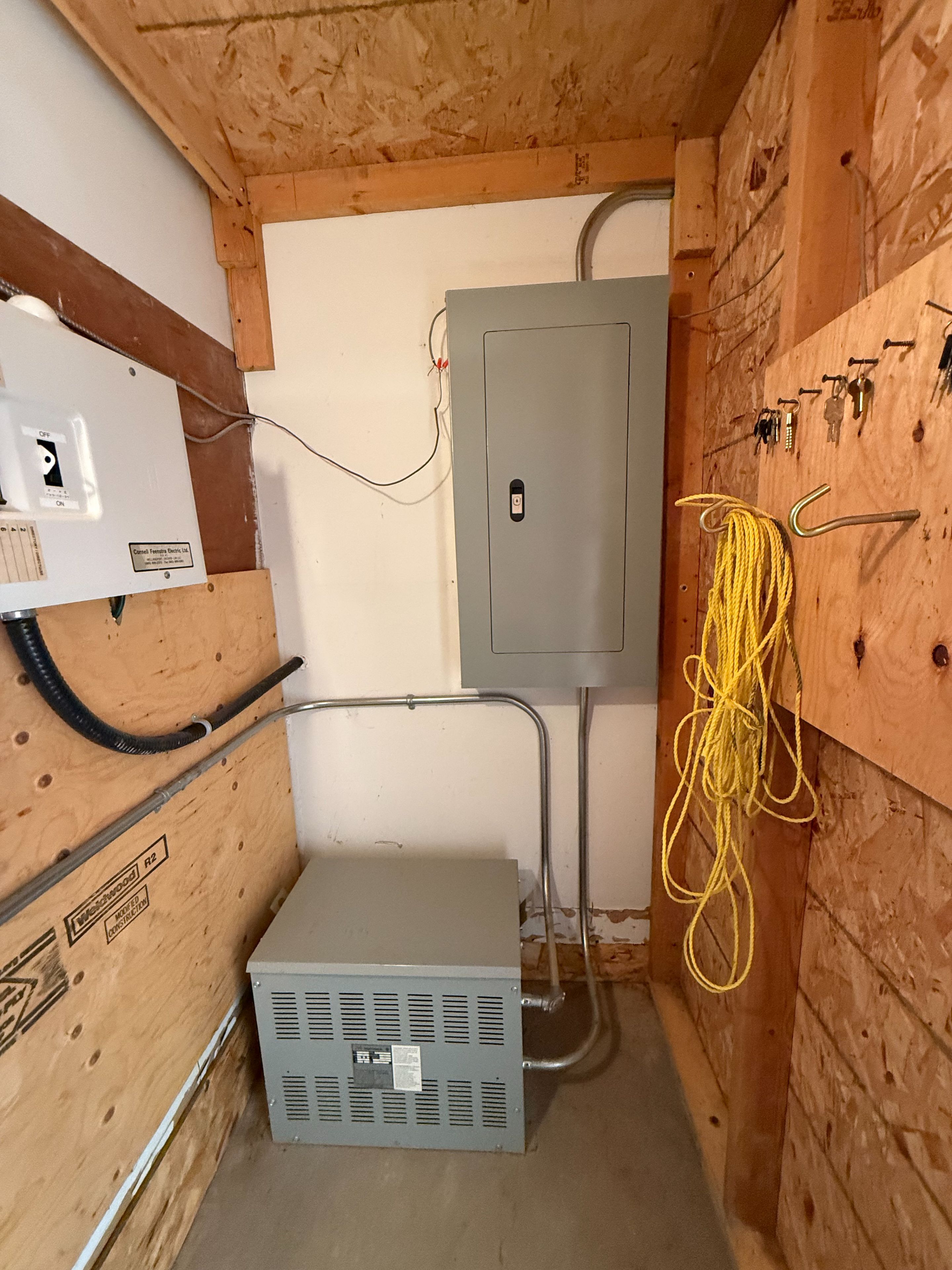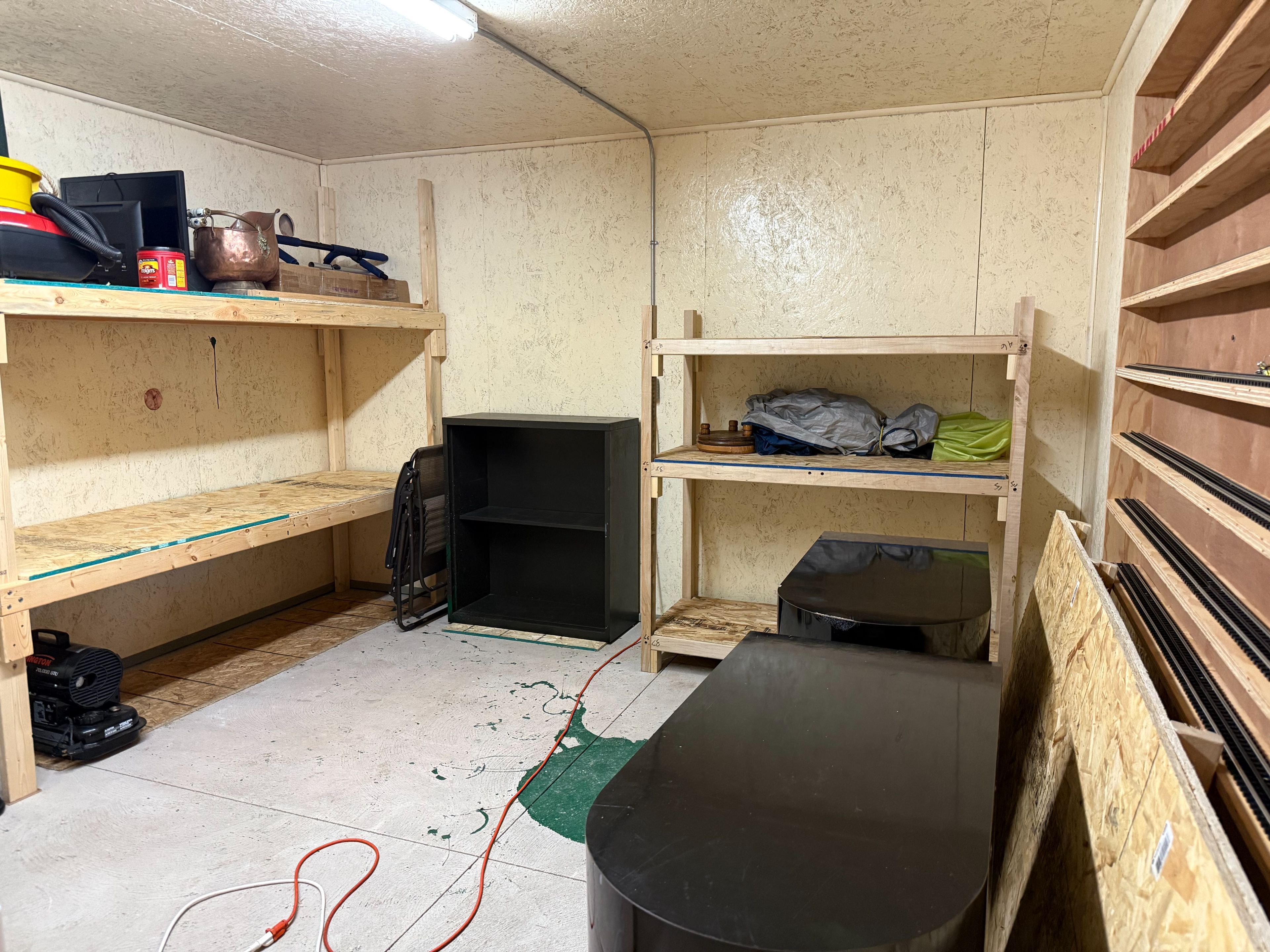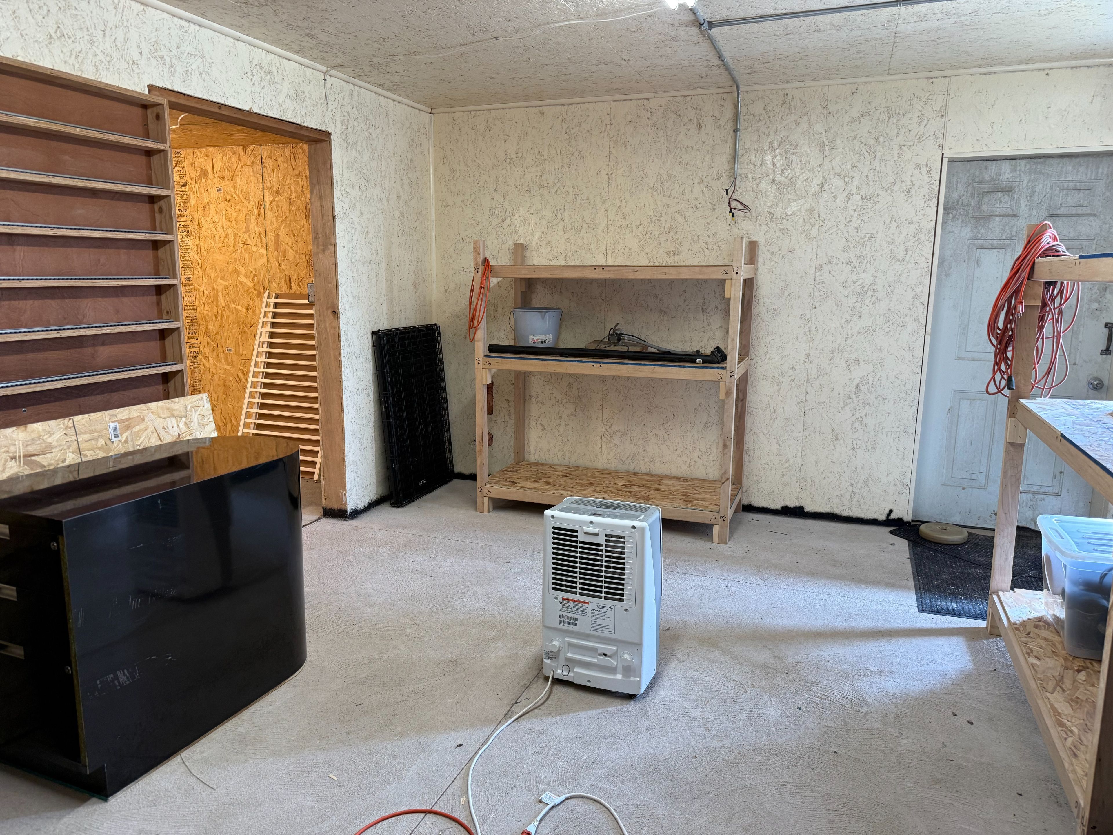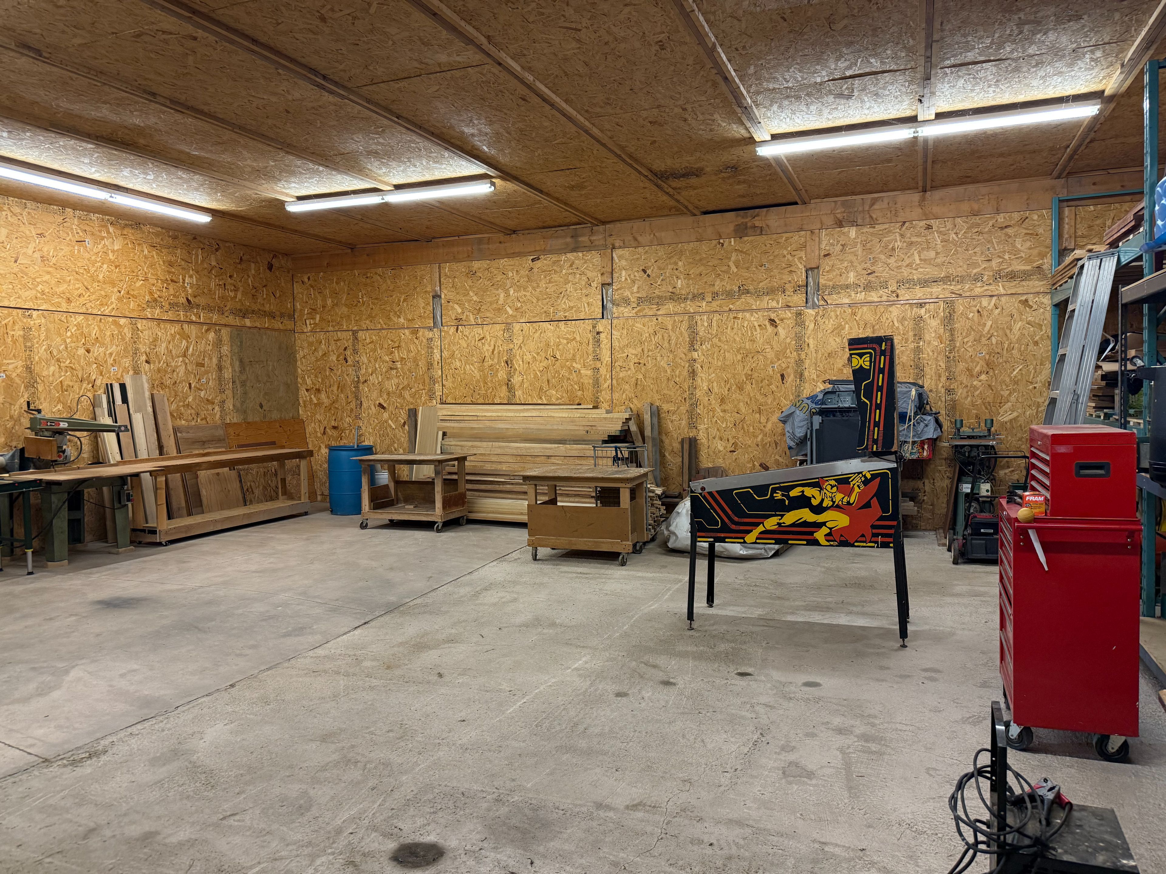 • Large workshop with high ceilings, ideal for various projects or storage.