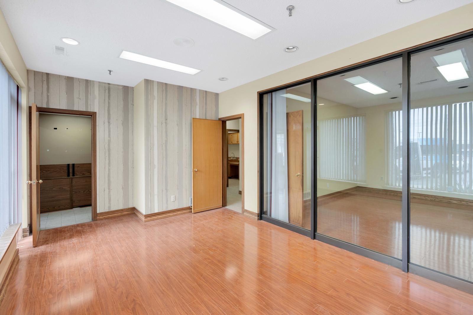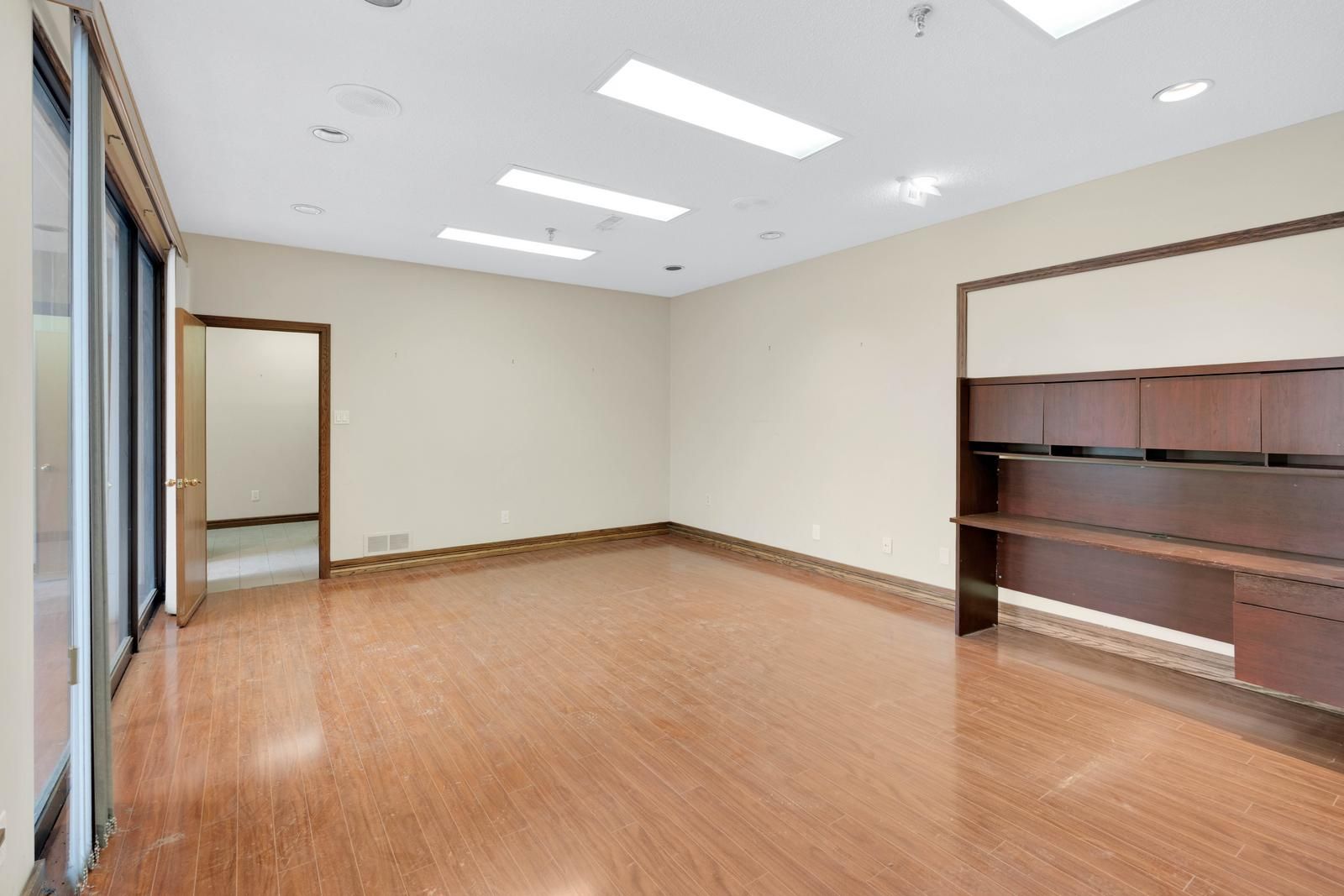 • Includes three private offices and a large boardroom for meetings.