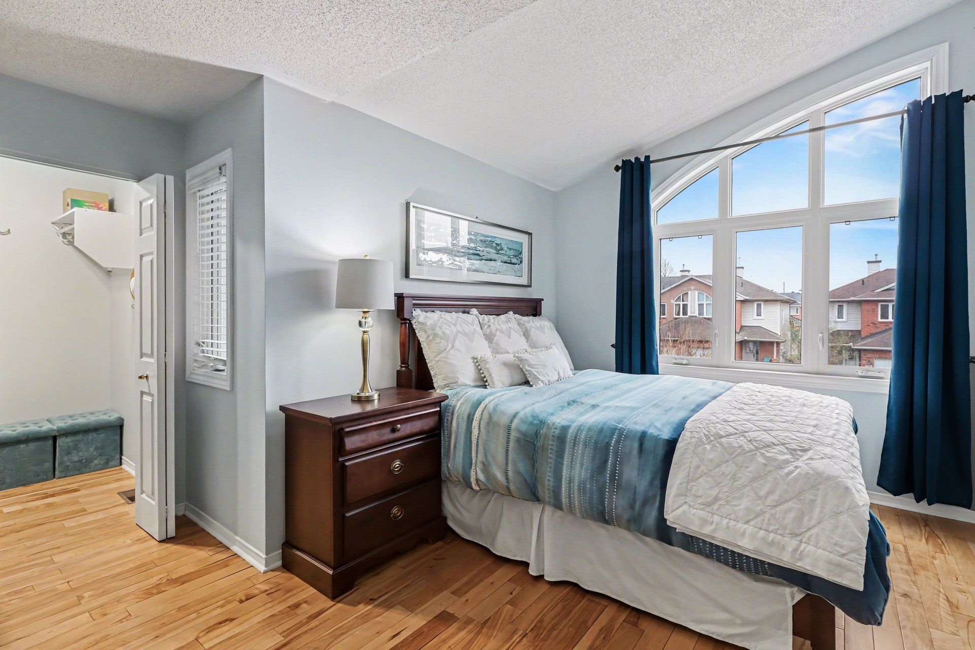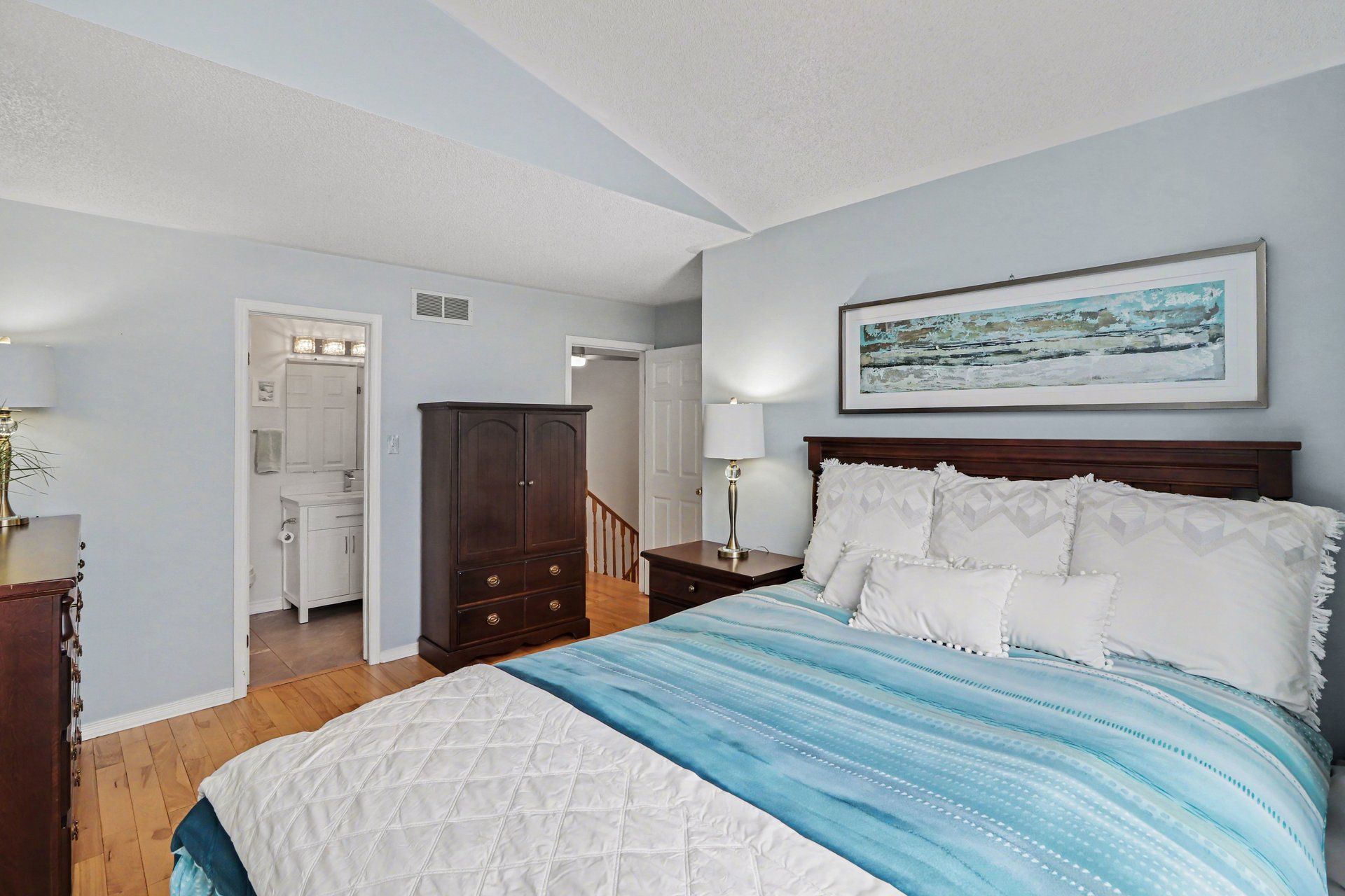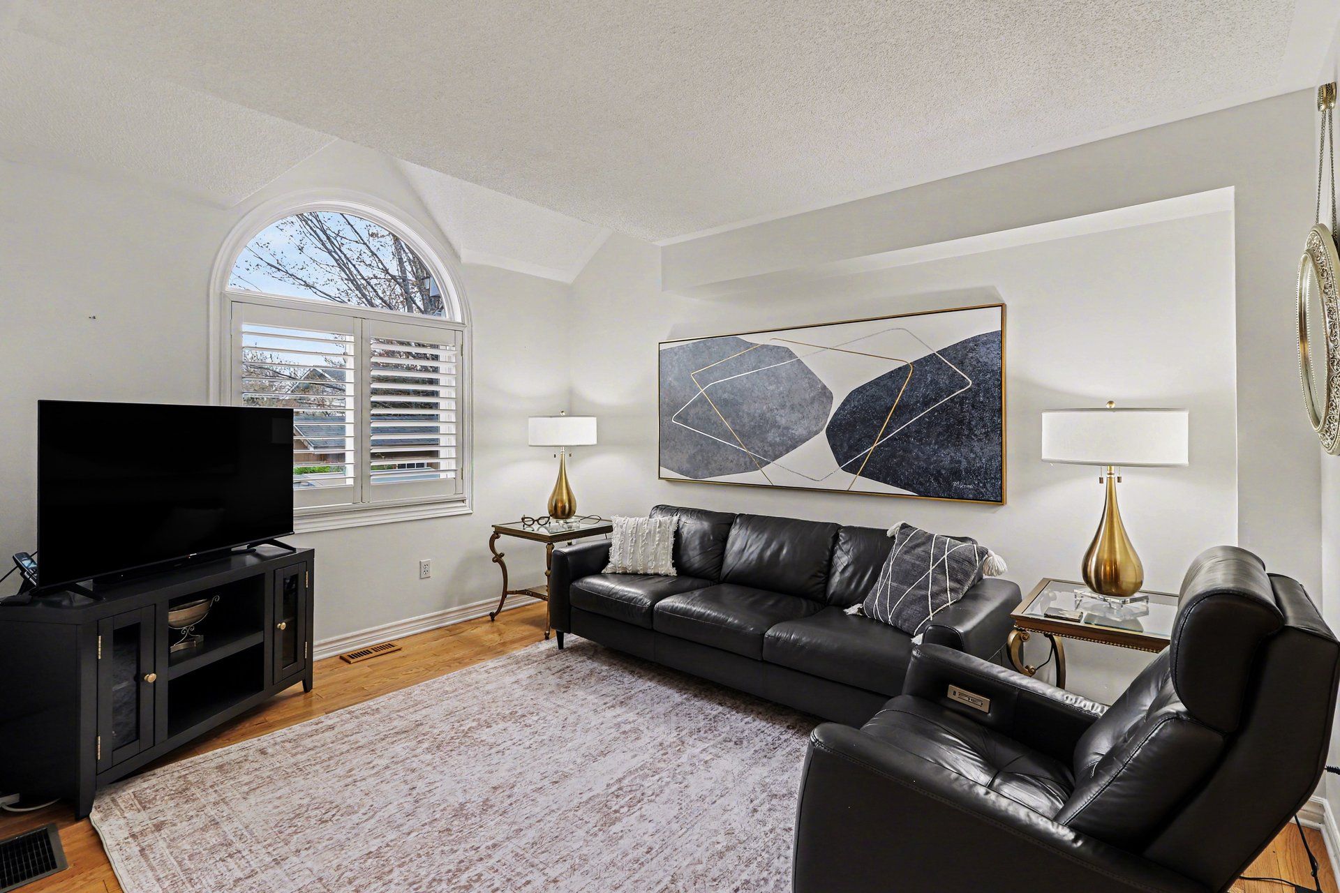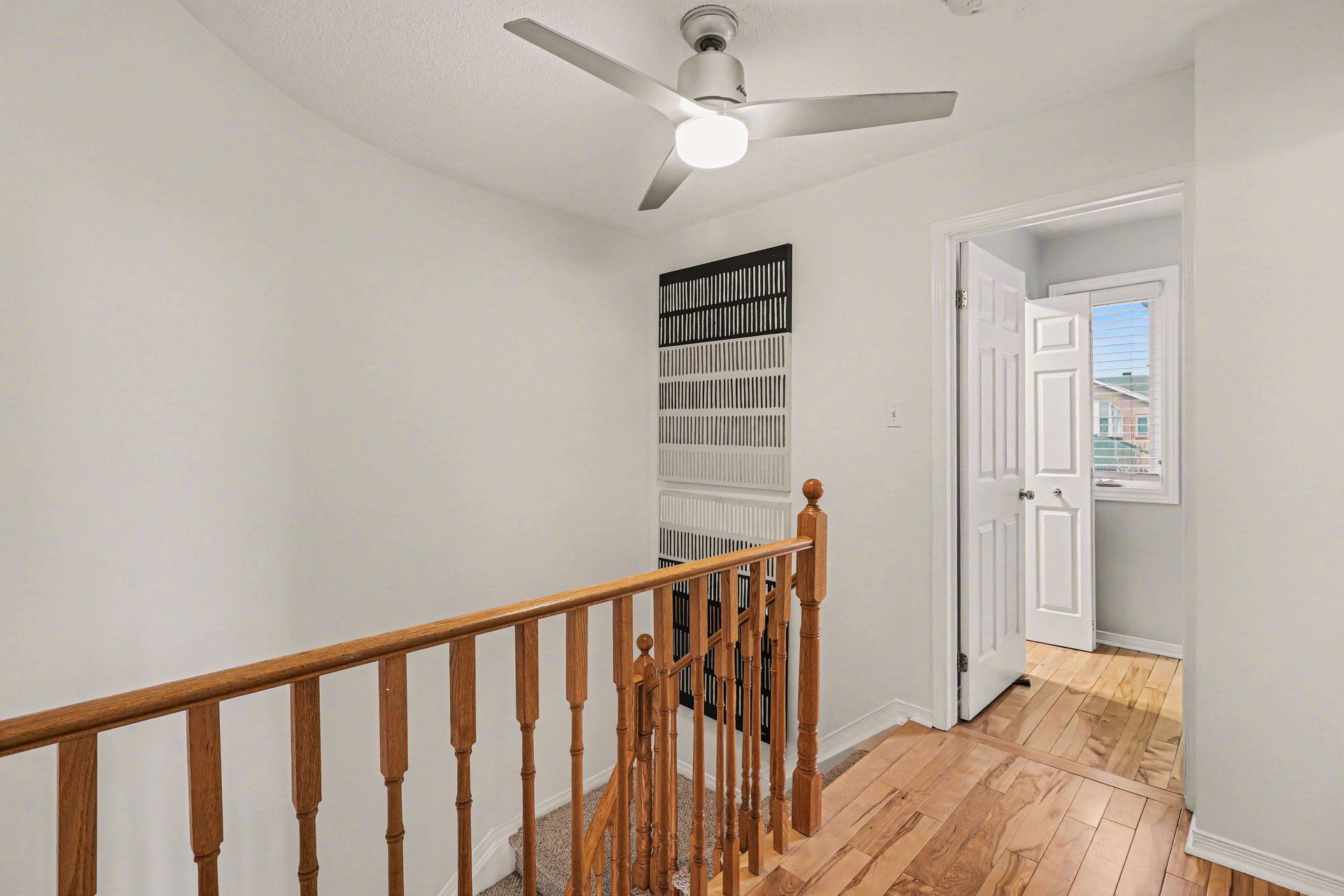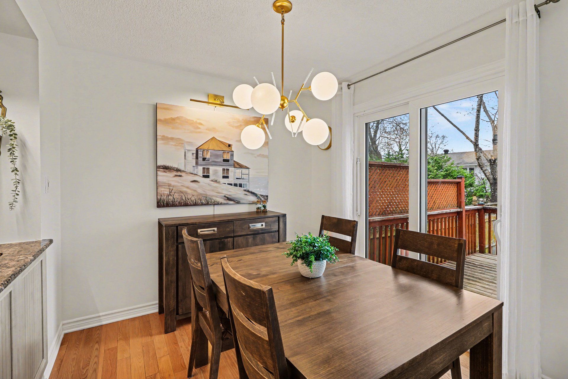 • Bright and open-concept main level with natural light and hardwood flooring.