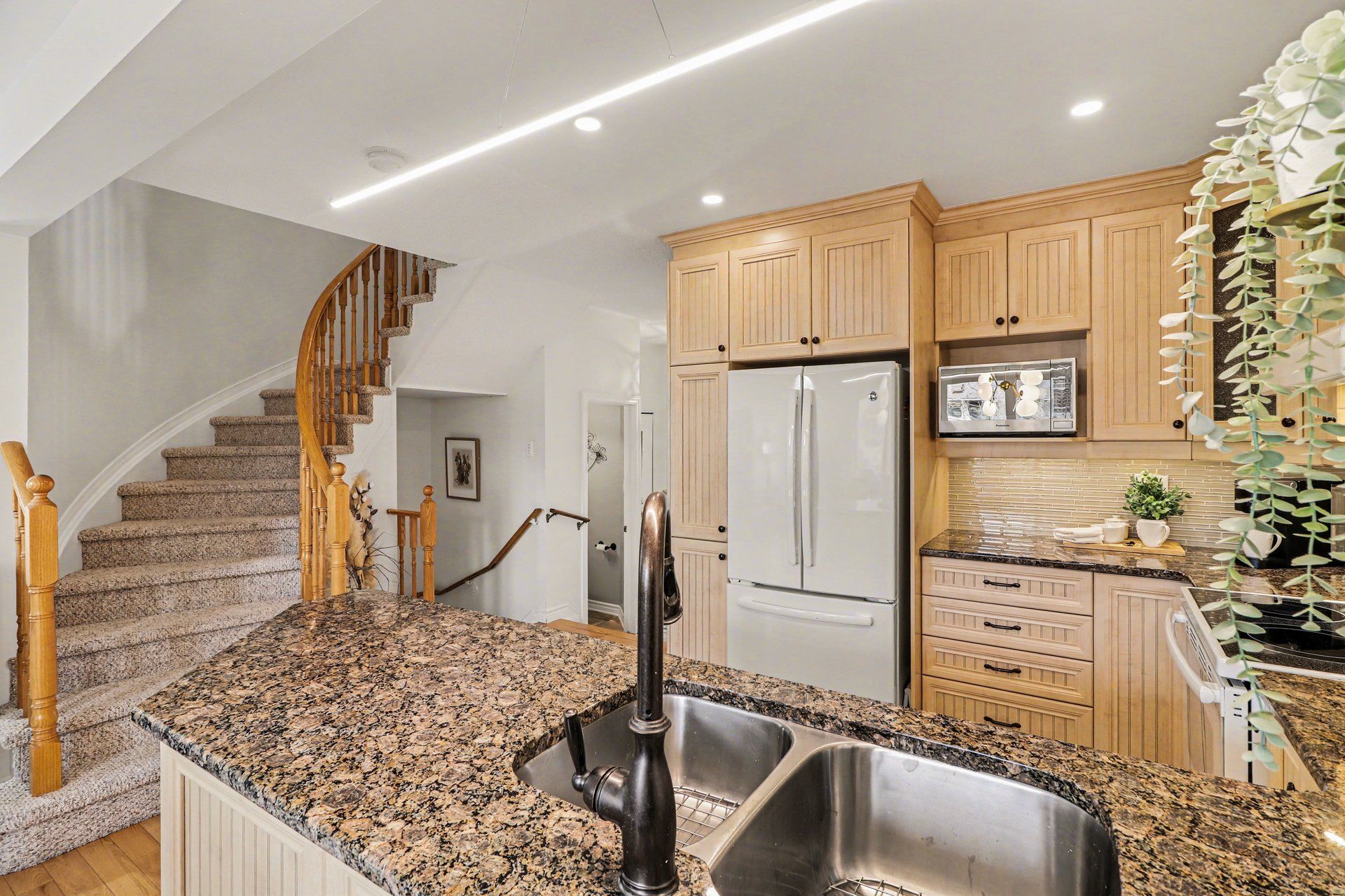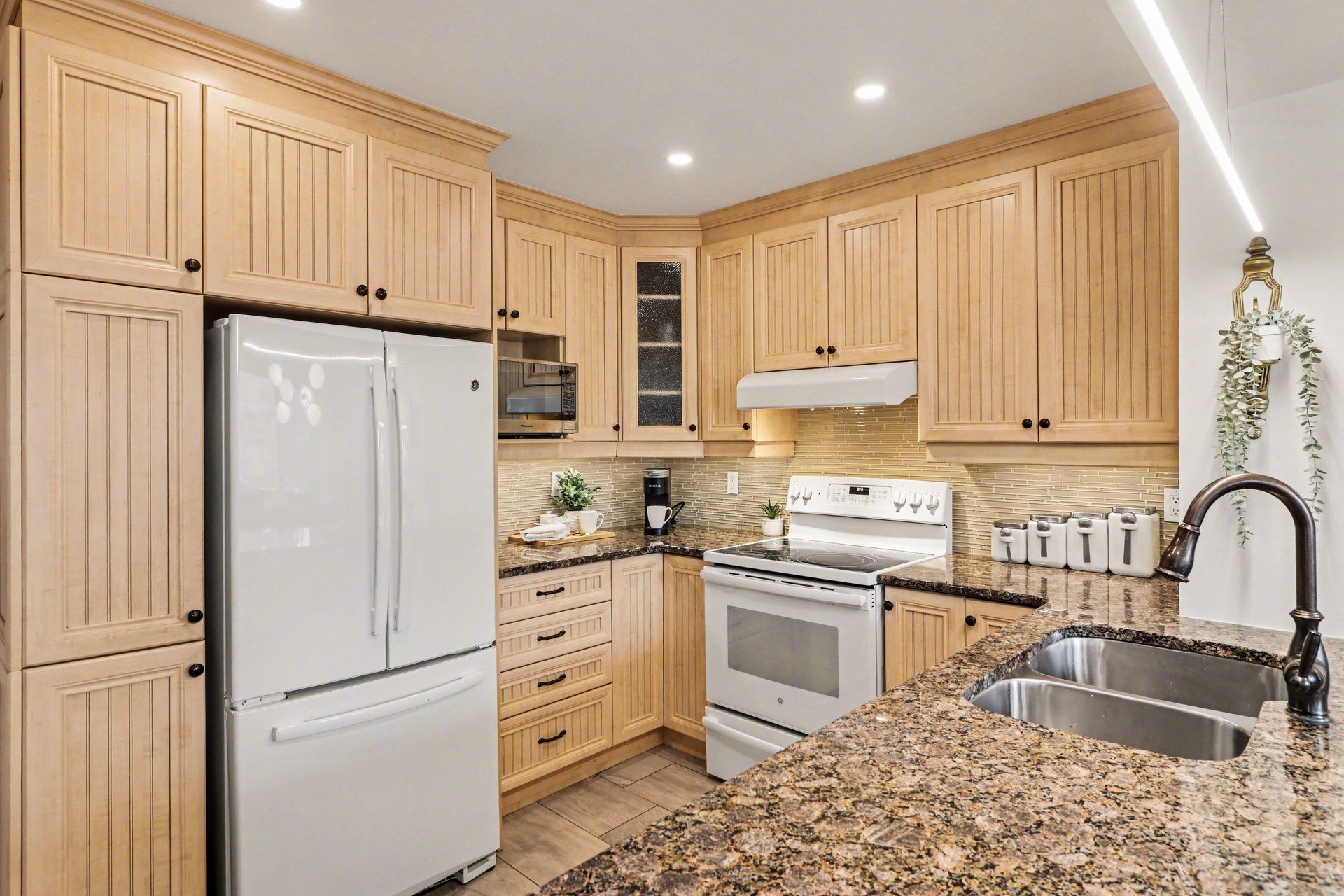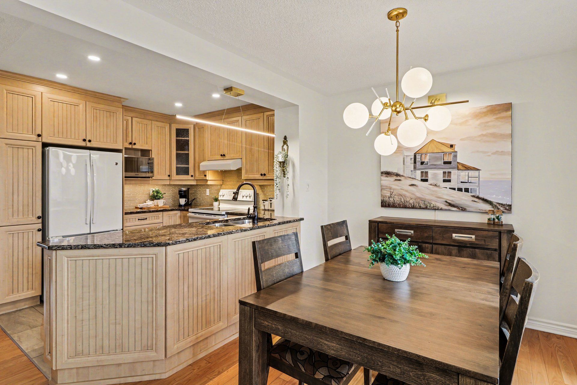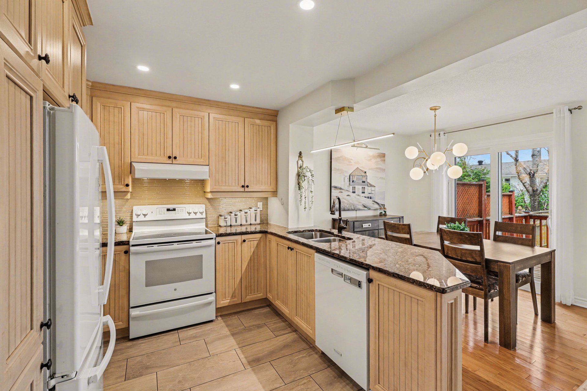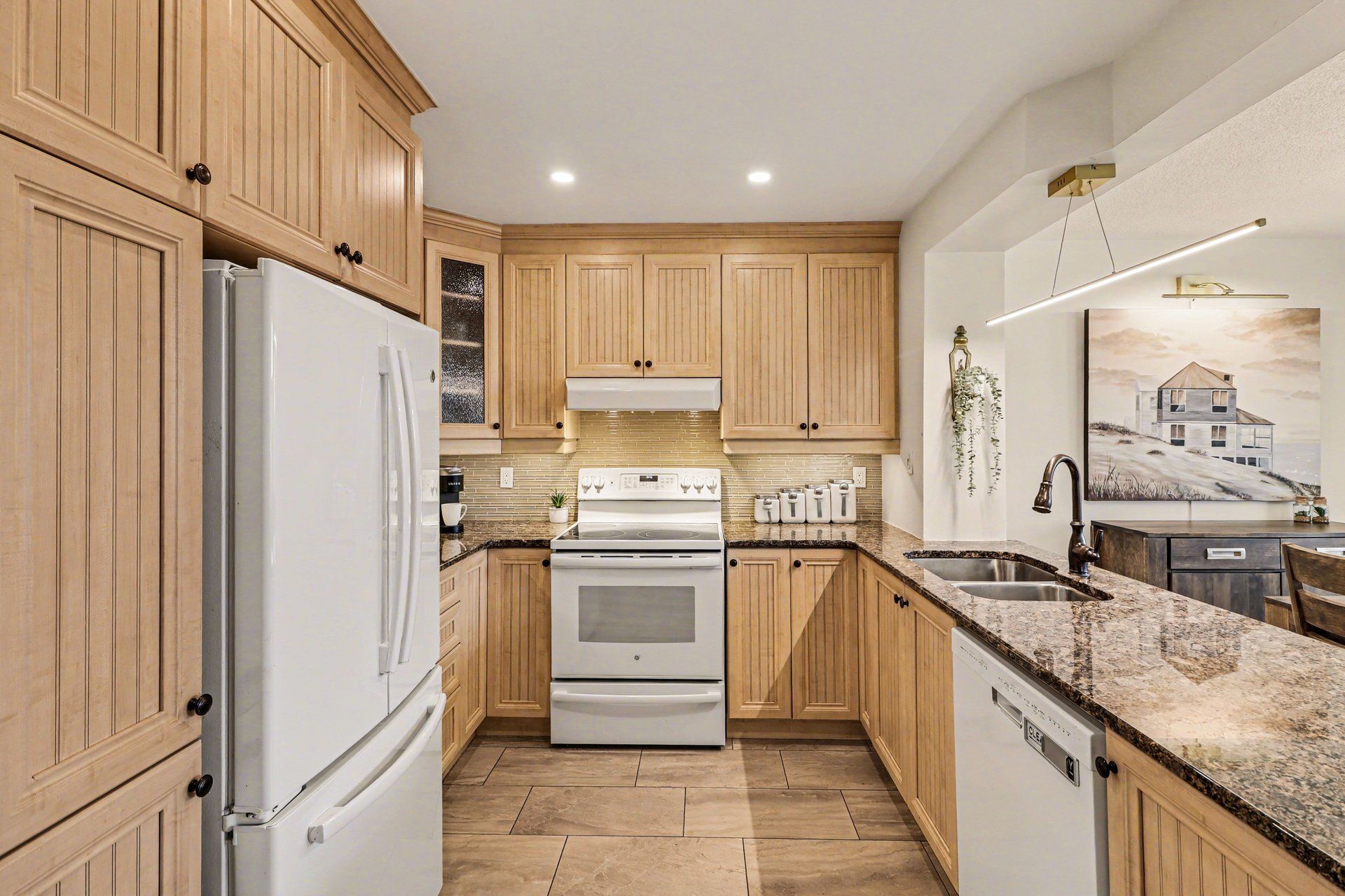 • Renovated kitchen with granite countertops and upgraded cabinetry for modern living.