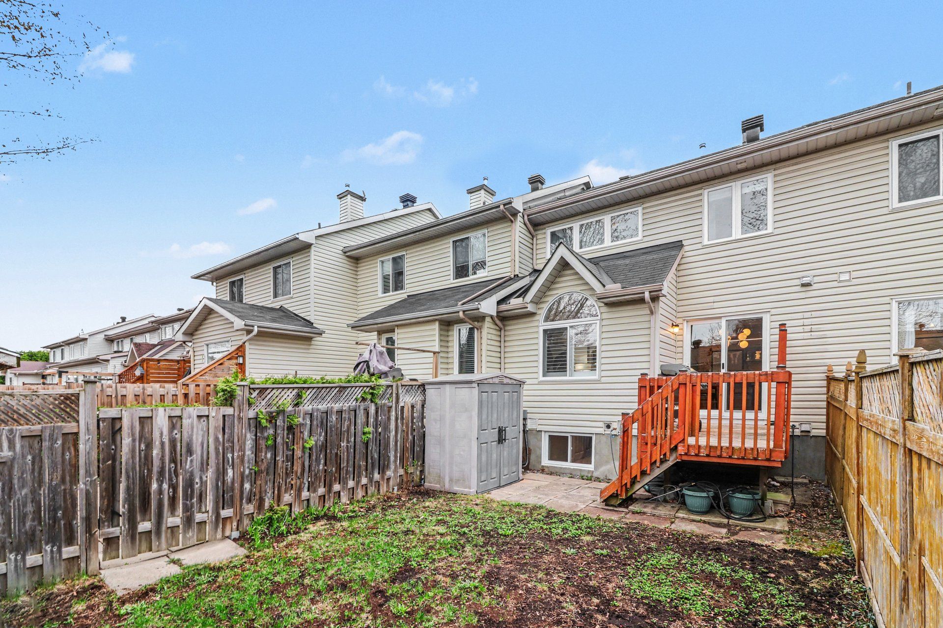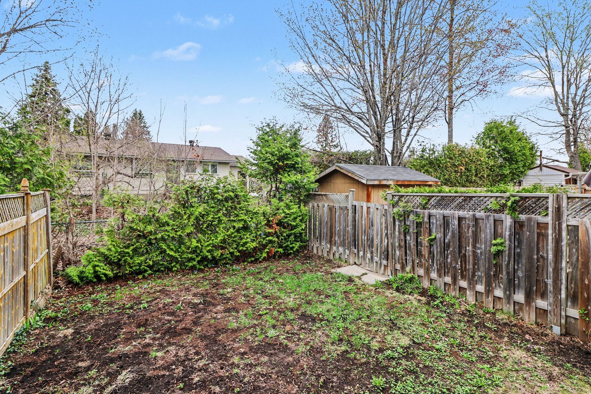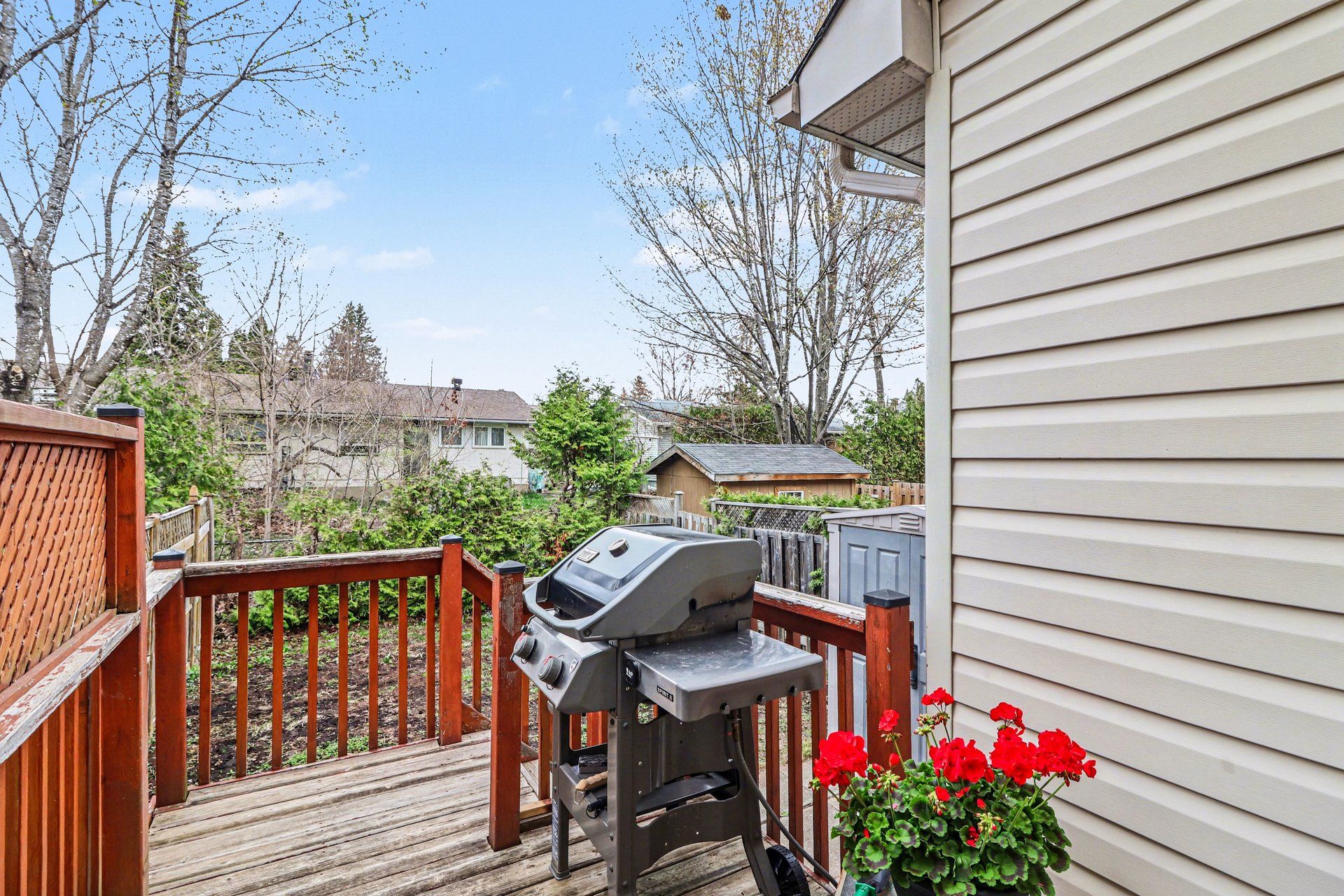 • Fenced backyard with green space, storage shed, and gas BBQ hook up.