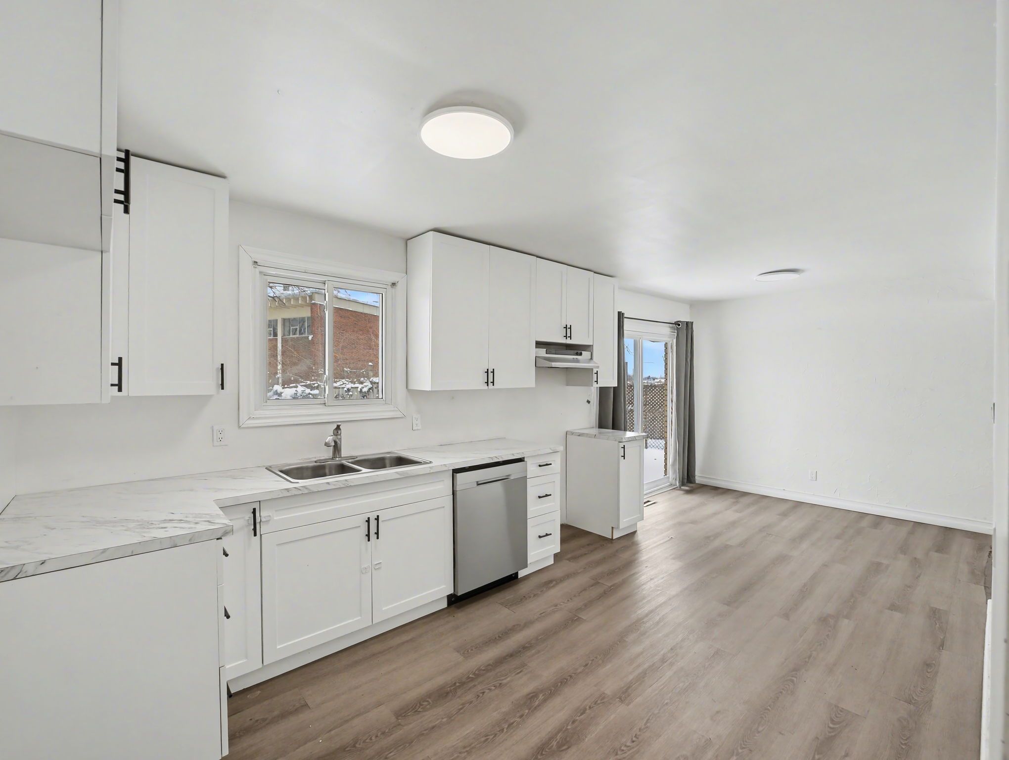 • Bright open-concept main floor with a spacious kitchen and dining area.