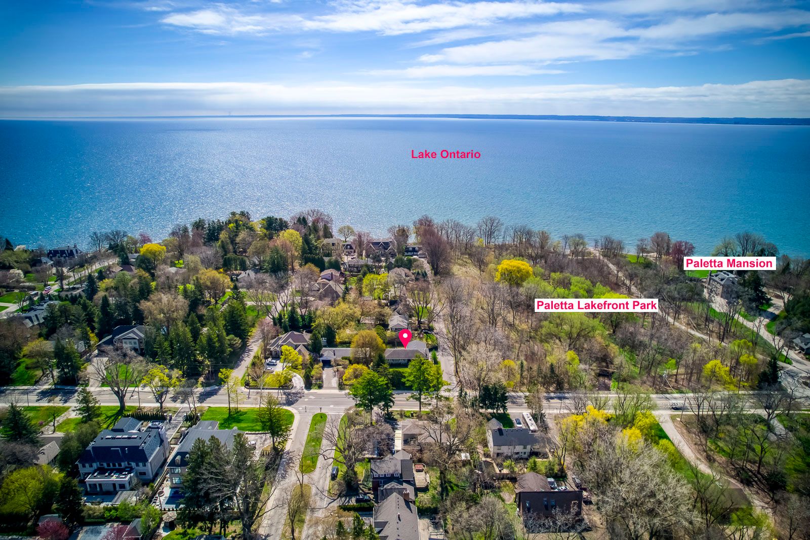 Rarely offered on the south side of prestigious lakeshore rd, this fully renovated 3+2 bed, 3 bath bungalow blends timeless charm with modern elegance. Adjacent to the iconic palette mansion, it features an open-concept kitchen, sunlit dining, and living room with fireplace. The main floor includes 3 spacious bedrooms, including a luxurious primary suite with walk-in closet and spa-like 5-pc ensuite. The finished lower level has a family room with fireplace, wet bar, 2 bedrooms, 3-pc bath, and separate entrance-ideal for extended family or rental use. Enjoy multiple patios in a private, mature setting, with inside-entry garage and updated systems throughout. Steps to the lake, top schools, parks, and amenities-this is lakeshore living at its best.