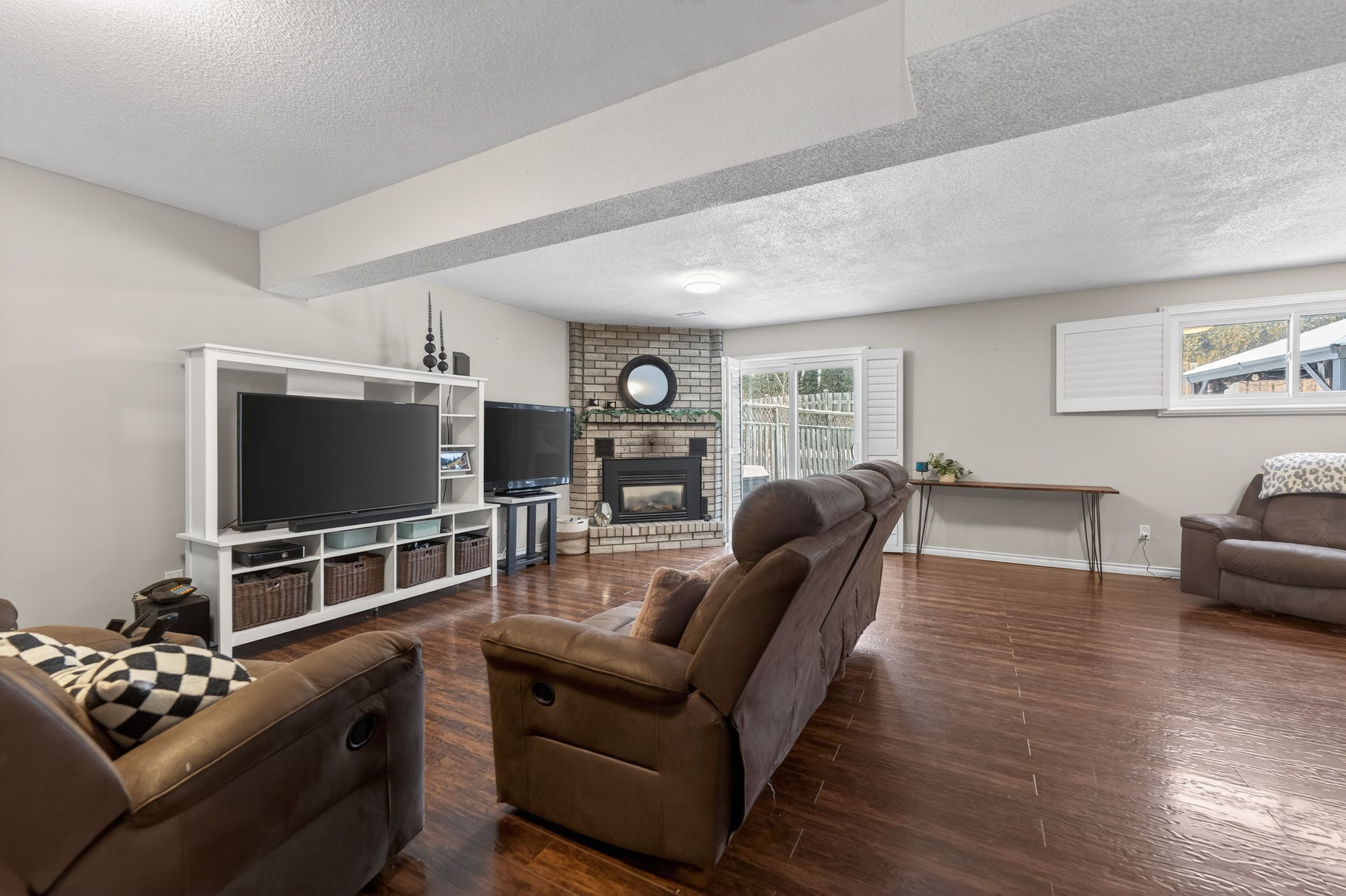 • Cozy family room featuring a fireplace for relaxing or entertaining.