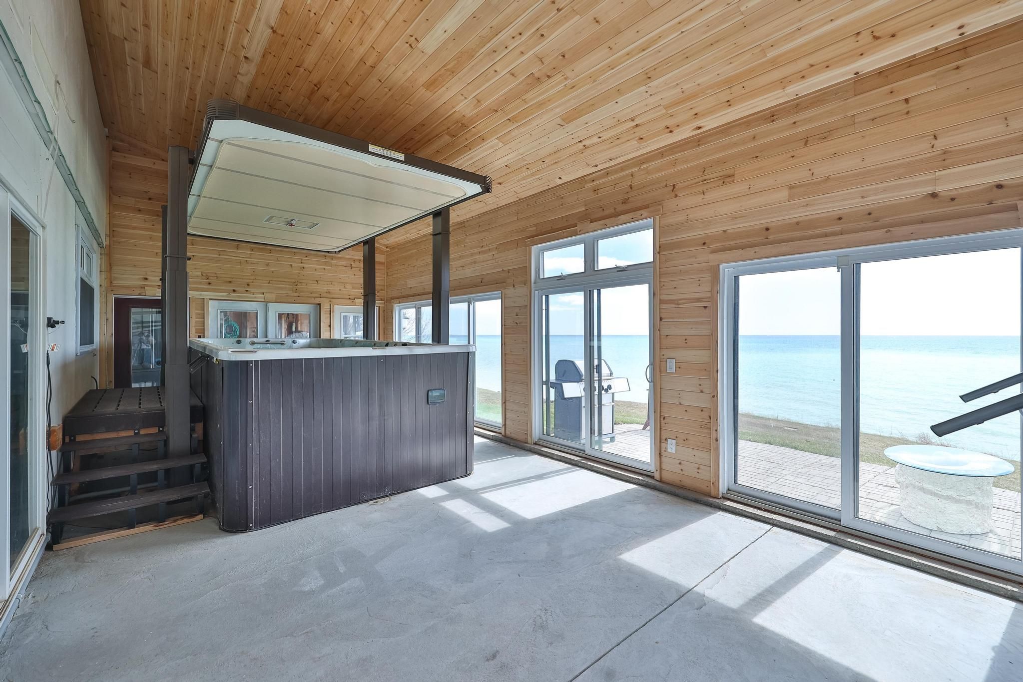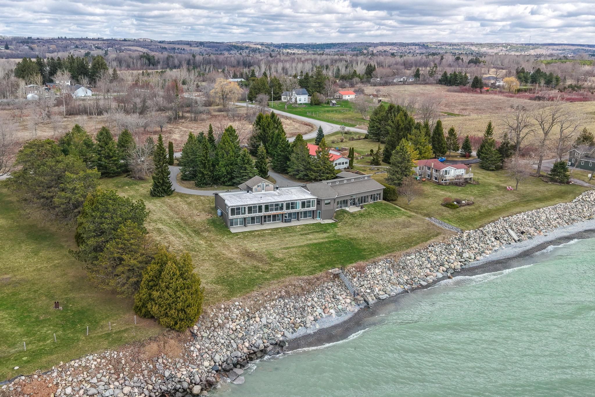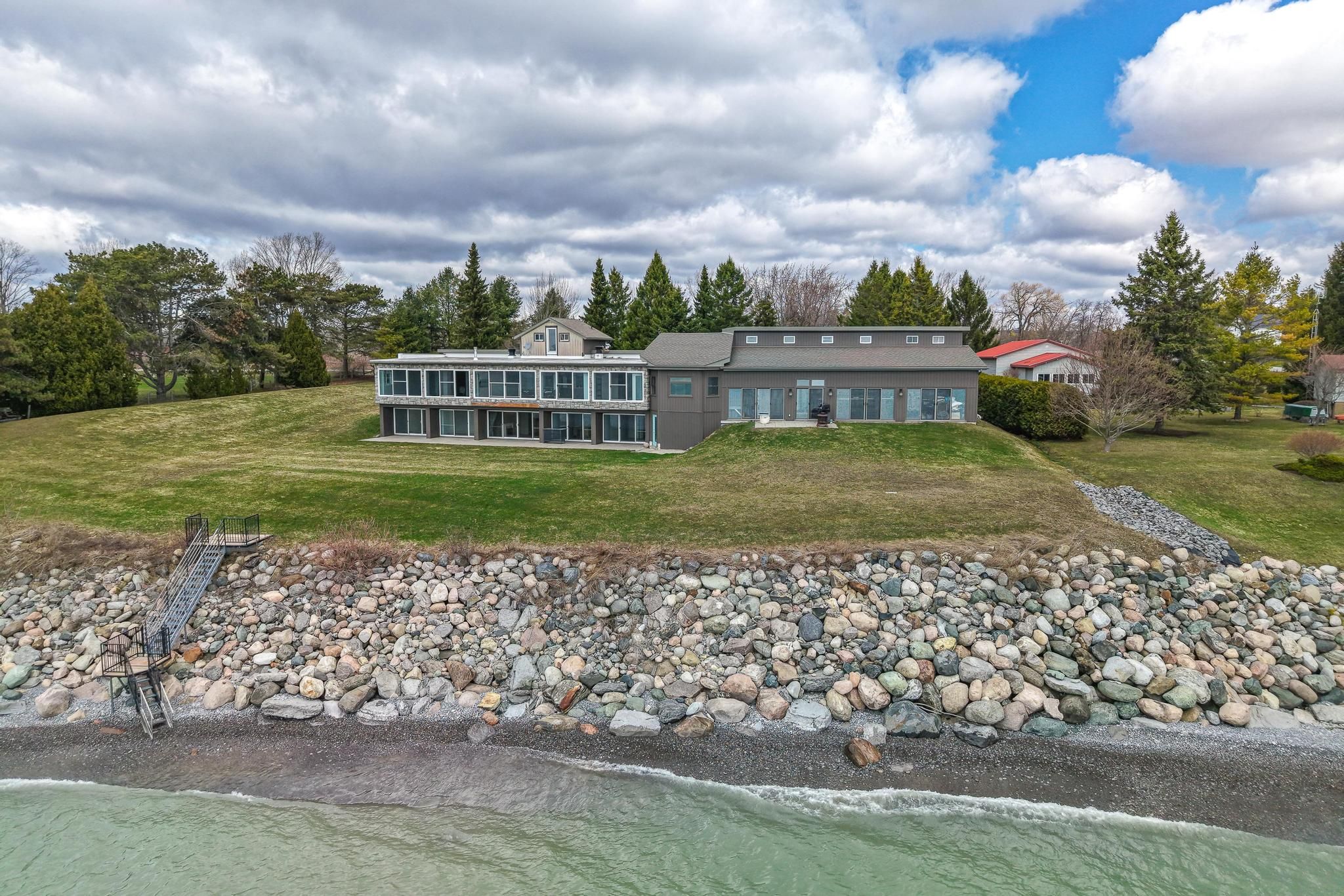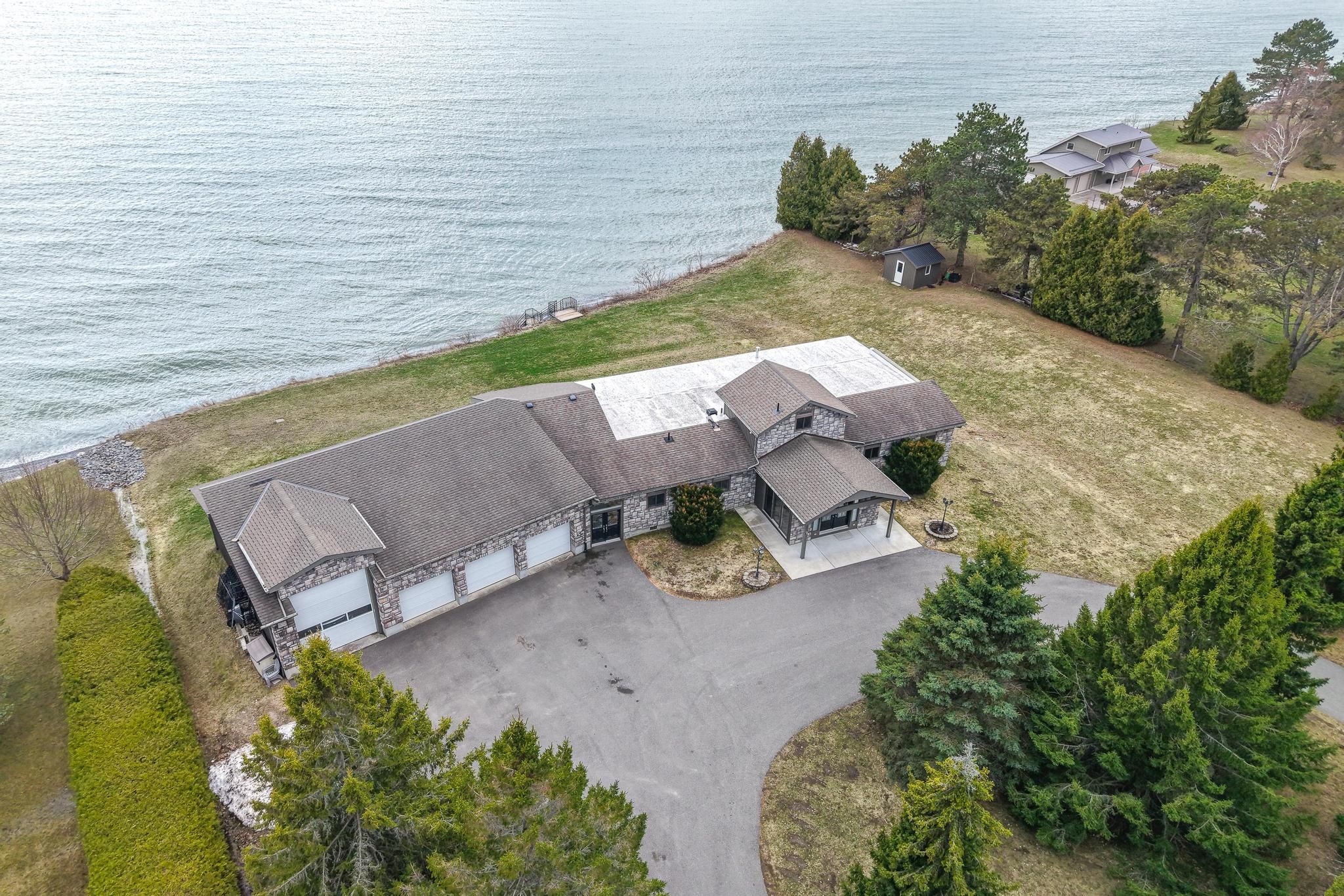 Welcome to your private colborne estate - where luxury living meets the shores of lake ontario. Set on a tranquil, park-like 1. 84-acre lot with your own private beach, this custom-built bungalow offers 5,074 sq ft of exceptional living space designed around 1 thing: the lake. Floor-to-ceiling windows span the entire south side on both levels, framing unobstructed panoramic views of lake ontario that change with every season & every hour of the day. The 3,446 sq ft main floor features a split bedroom plan, anchored by a chef's kitchen overlooking the water - complete with an extended island, stunning waterfall quartz counters, & seating for every friend & family member you can gather. The primary retreat includes a private sitting room, en-suite washroom & multiple large closets. 3 additional bedrooms, 2 washrooms, & a generous family room complete this layout. & for year-round wellness, a cedar-lined pool room houses an indoor swim spa with a lap current & convenient motorized cover. The lower level is a 1,628 sq ft fully finished, self-contained residence with 5 walkouts to the lake - all with floor-to-ceiling windows flooding the space with light & waterfront views. It features a full kitchen, separate laundry, & a split-bedroom layout with a primary retreat including ensuite washroom & kitchenette, plus 2 additional bedrooms & 2 washrooms. An ideal guest suite, in-law apartment, or income-generating rental. Storage & flexibility abound: a 3-car garage, plus a 4th rv or large boat garage with ev & rv charging. Workshop or storage loft above the garage, & a 3rd-floor loft with future potential for additional living space. Zoned for both family living & bed & breakfast use, this property presents an exceptional lifestyle opportunity or income-generating investment. All of this just 10 minutes from highway 401, 1 hour from toronto, steps from downtown colborne & brighton, minutes to presqu'ile provincial park, & a scenic 30-minute drive to prince edward county.