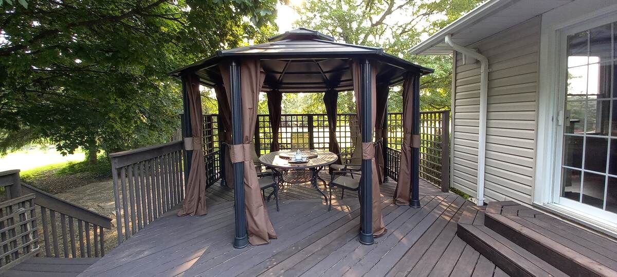 • Three cedar decks including a gazebo and pool area for relaxation.