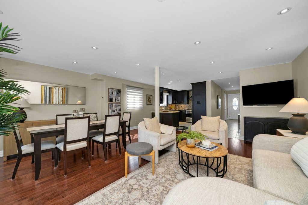 Located in the highly sought after rockwood neighbourhood, this move-in ready home offers comfortable living with thoughtful updates and timeless finishes throughout. Centrally situated close to schools, parks, shopping, amenities, and convenient multi-highway access. Inside, the main floor offers an open concept layout with living and dining area, hardwood flooring, pot lights and luxury hunter douglas blinds. The custom kitchen showcases granite countertops, tile backsplash, stainless steel appliances, abundant rich dark cabinetry, and a large moveable island-perfect for entertaining. Unique to this home is the bonus upper family room featuring a cozy gas fireplace and laminate flooring - perfect area to wind down and relax at the end of the day. Upstairs you'll find three bedrooms including a primary bedroom with a convenient 2-piece powder room, along with a 3-piece main bathroom. The beautifully finished basement adds valuable living space with durable vinyl flooring, a kitchenette, rec room, laundry area, large cold cellar, separate pantry, and an additional 3-piece bathroom. This home also features a fully fenced backyard with two sheds, a gas line for bbqs, and a lawn irrigation system covering the front, back, and sides. Parking is generous with space for five vehicles including a 1. 5 car garage. Spacious, turn-key and a prime location - this home has it all. Dates: basement (2020), roof 2015, furnace & ac 2014