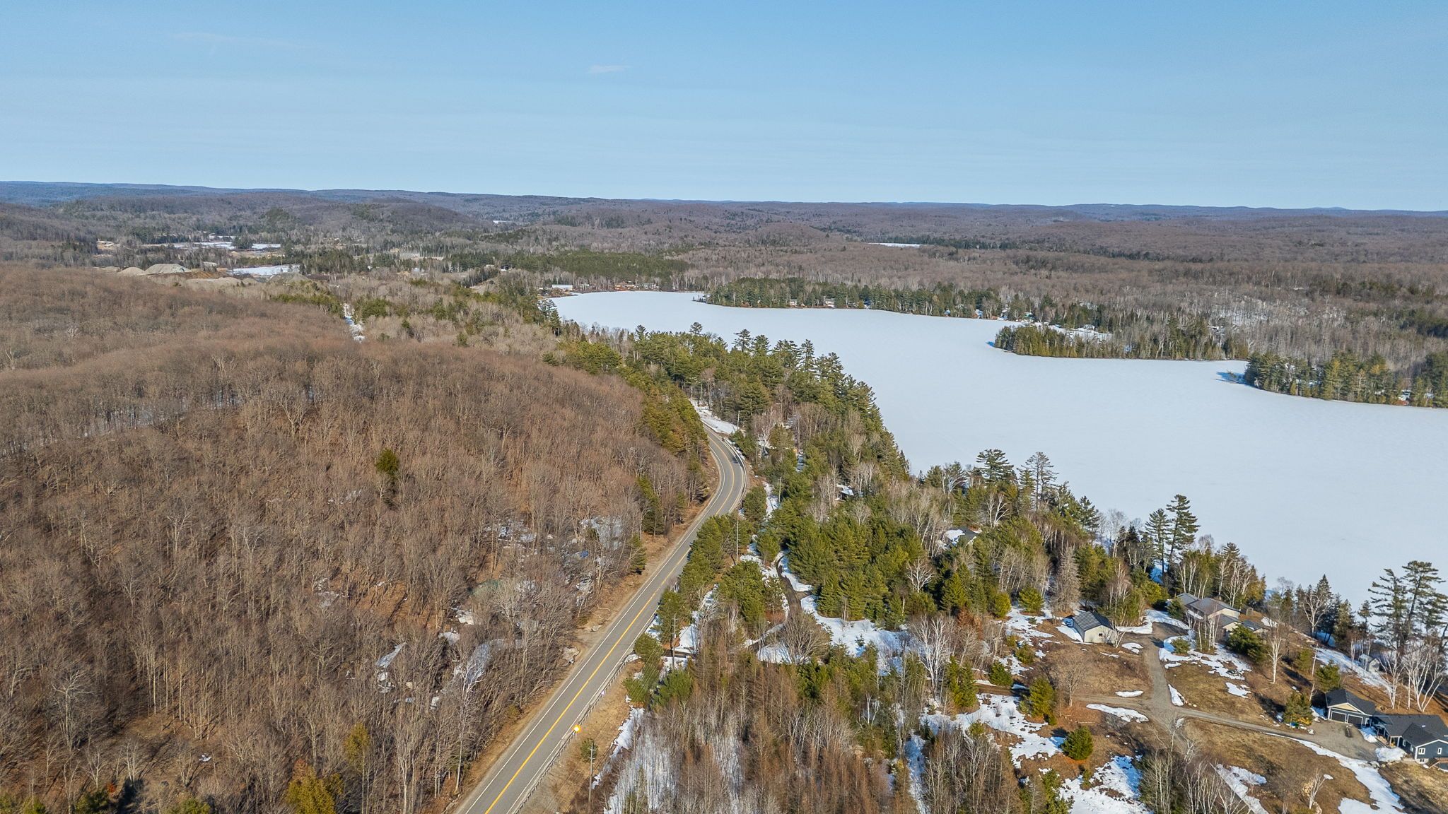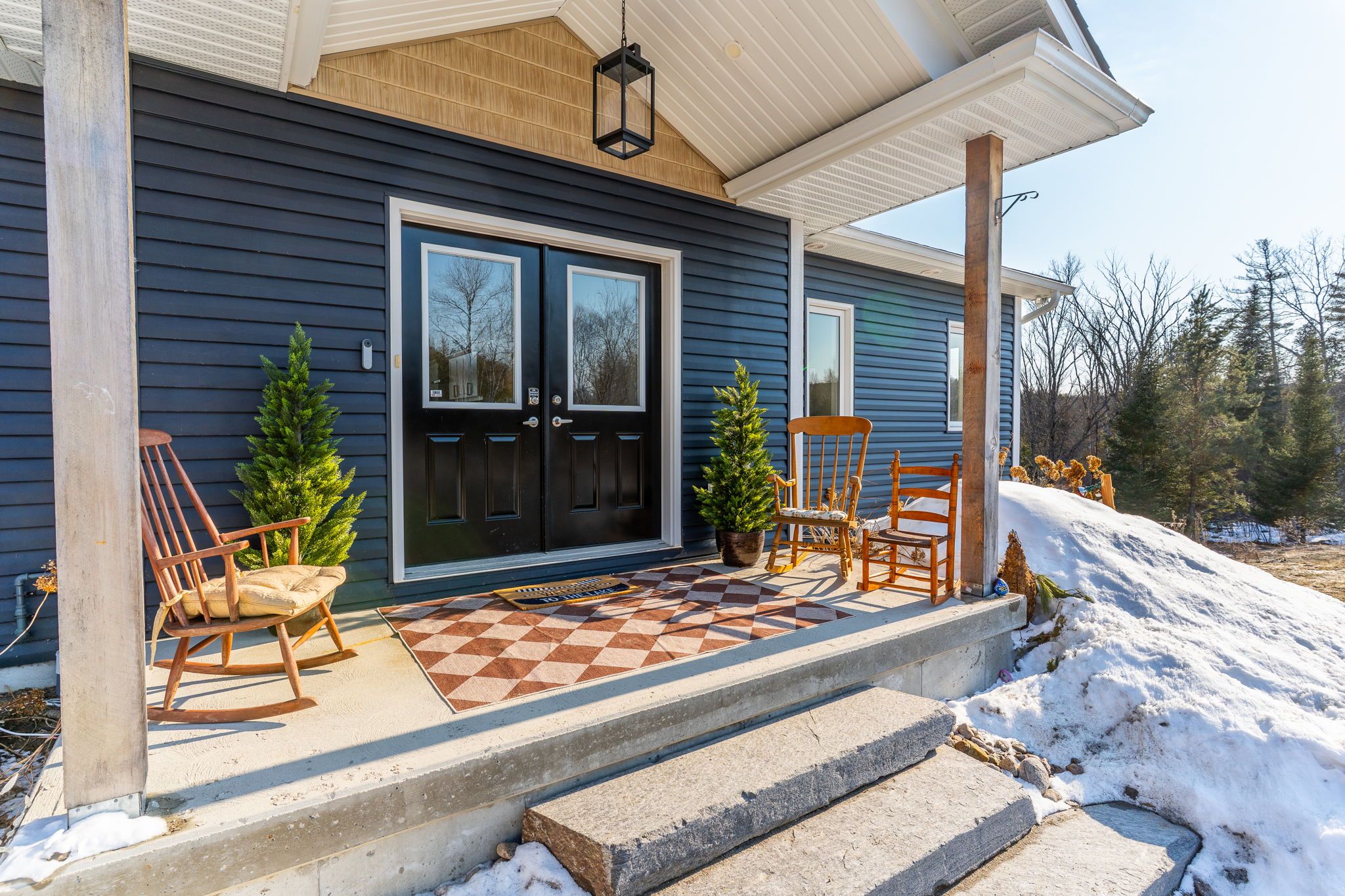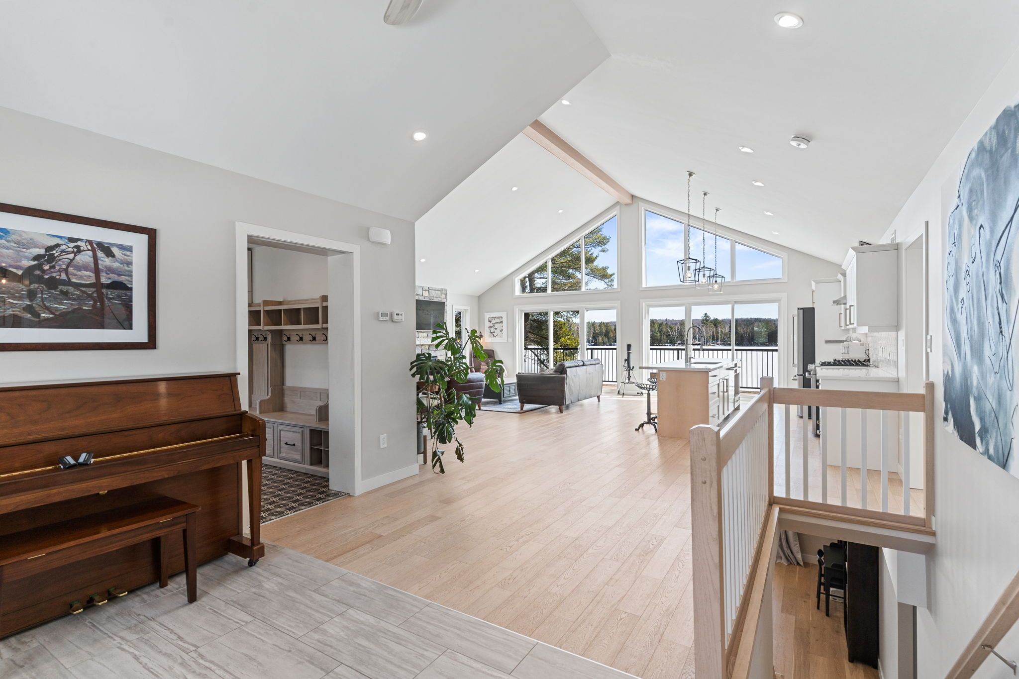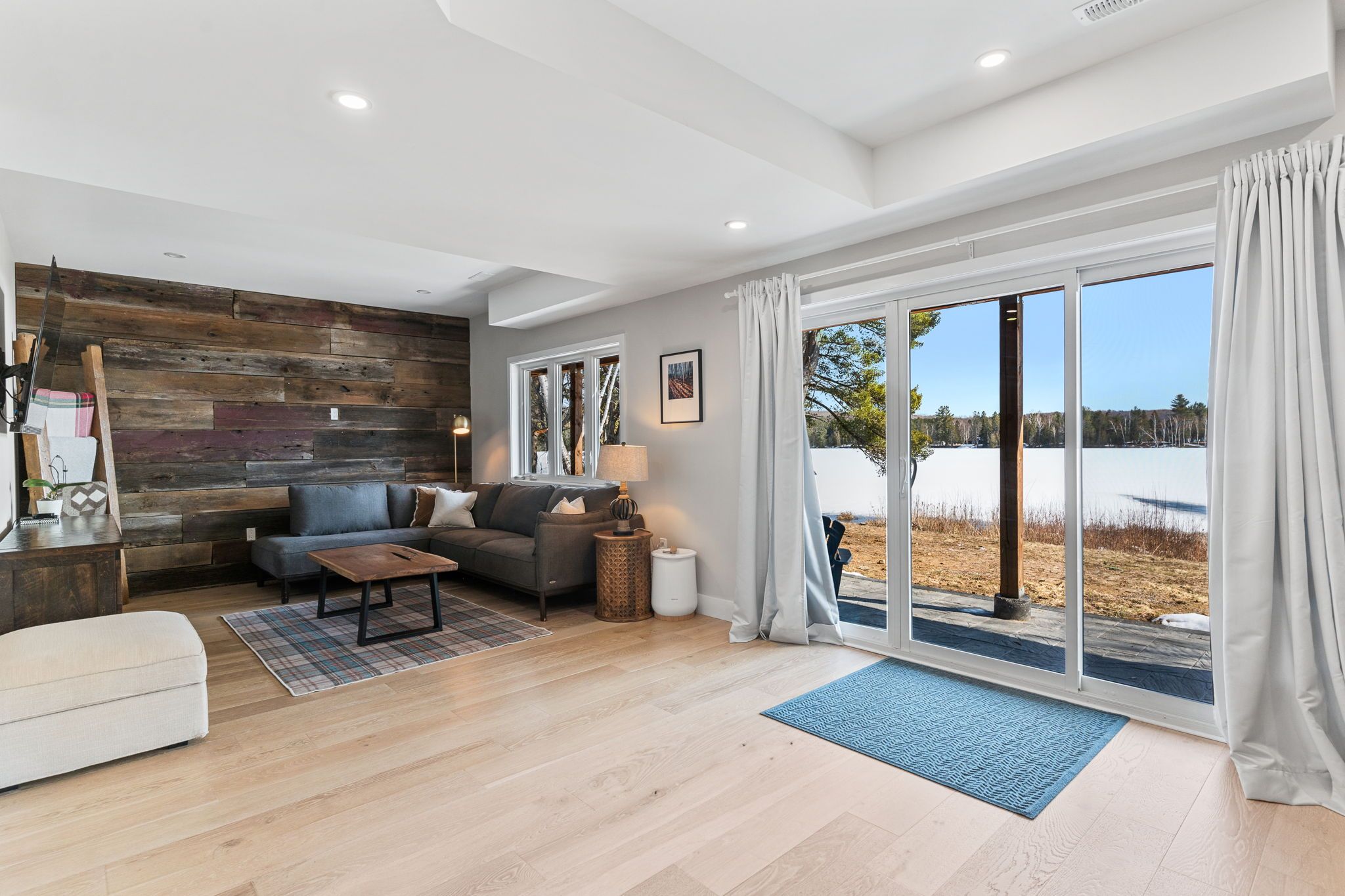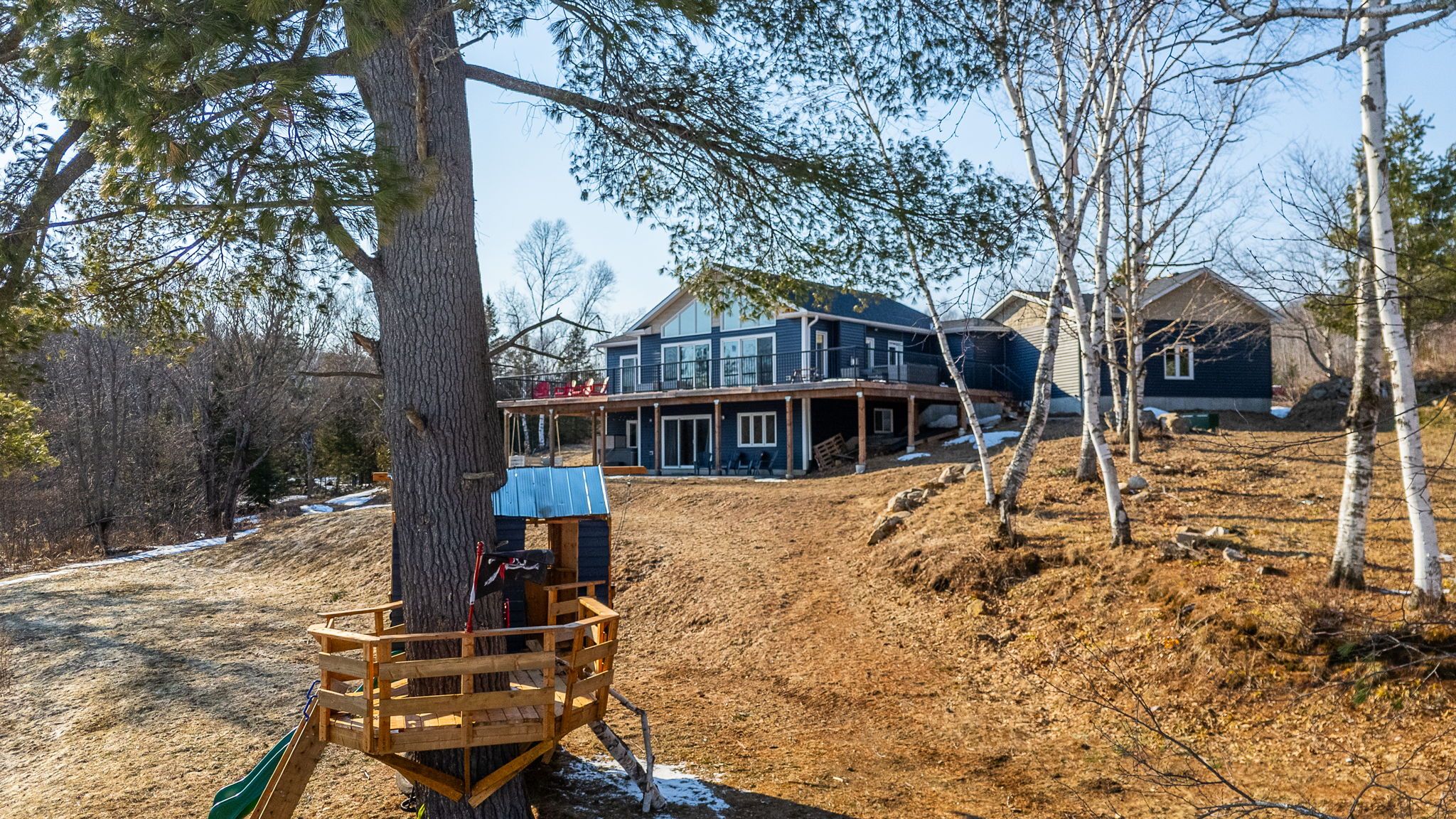 Rarely does an opportunity arise to own a 9-acre waterfront property offering such privacy just 5 minutes from downtown haliburton. This stunning modern home, completed in 2021, perfectly balances contemporary elegance with the raw beauty of the highlands. From the moment you enter, you are greeted by a breathtaking million-dollar view over haas lake, framed by soaring cathedral ceilings and a massive a-frame window that floods the open-concept space with light. The main floor blends refined style with effortless functionality, featuring white-washed oak floors, custom oak beam accents, and a gourmet chef's kitchen equipped with quartz countertops, a sprawling island, and premium stainless appliances. The primary bedroom and ensuite serves as a private retreat, offering a walk-in closet and a spa-inspired bathroom with a soaking tub positioned to capture serene wooded views. Both the primary bedroom and the great room feature walk-outs to an expansive deck-perfect for morning coffee with the sunrise or evening cocktails over the water. Designed for hosting, the fully-finished lower level adds three generous bedrooms, a contemporary bathroom with heated floors, and a large recreation area with a walk-out leading directly to the lake. The property is a true nature lover's playground with 700+ feet of shoreline and a private dock for swimming, fishing, and boating. An offering of this calibre - balancing modern luxury with such vast acreage - is seldom seen. The land and adjacent creek are teeming with wildlife, providing a peaceful, 'tucked away' lifestyle without sacrificing proximity to shops and restaurants. Whether exploring your private woods or relaxing by the lake, this exceptionally rare property stands as the ultimate expression of modern lakefront luxury.