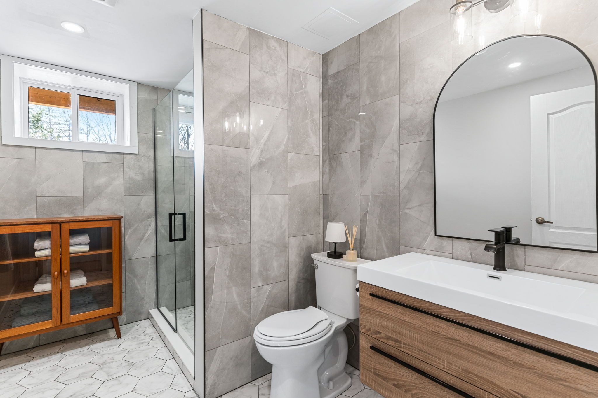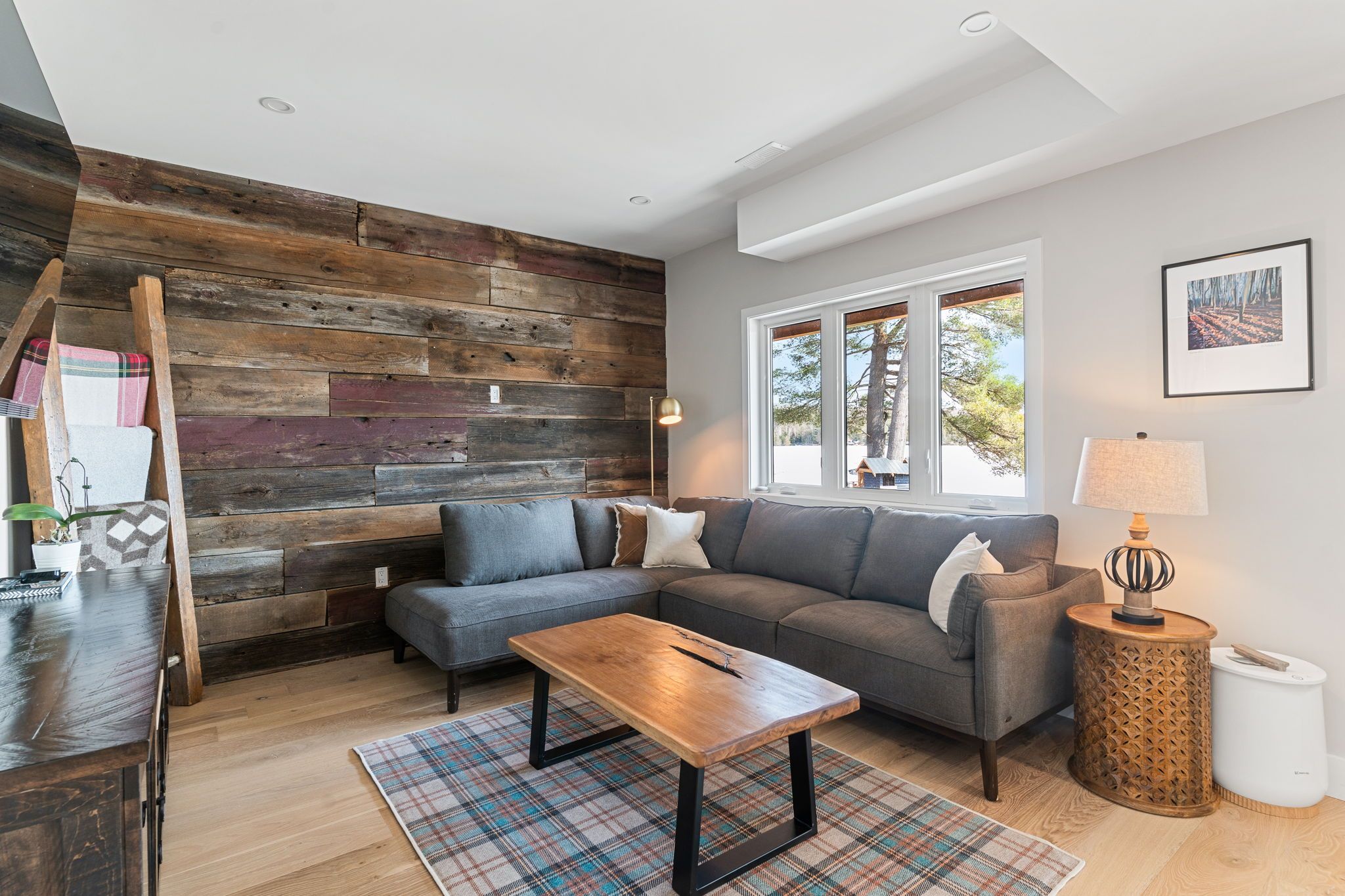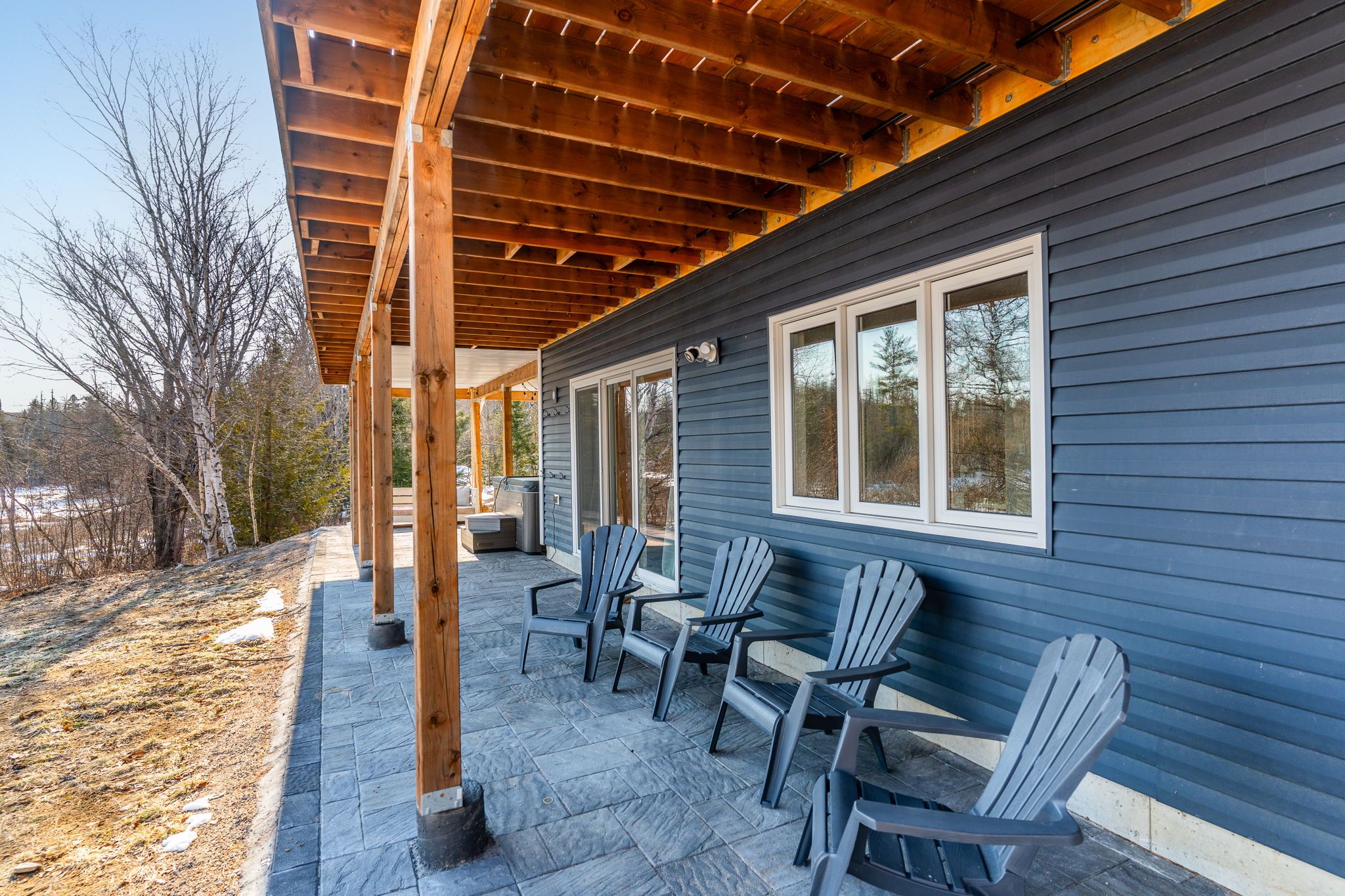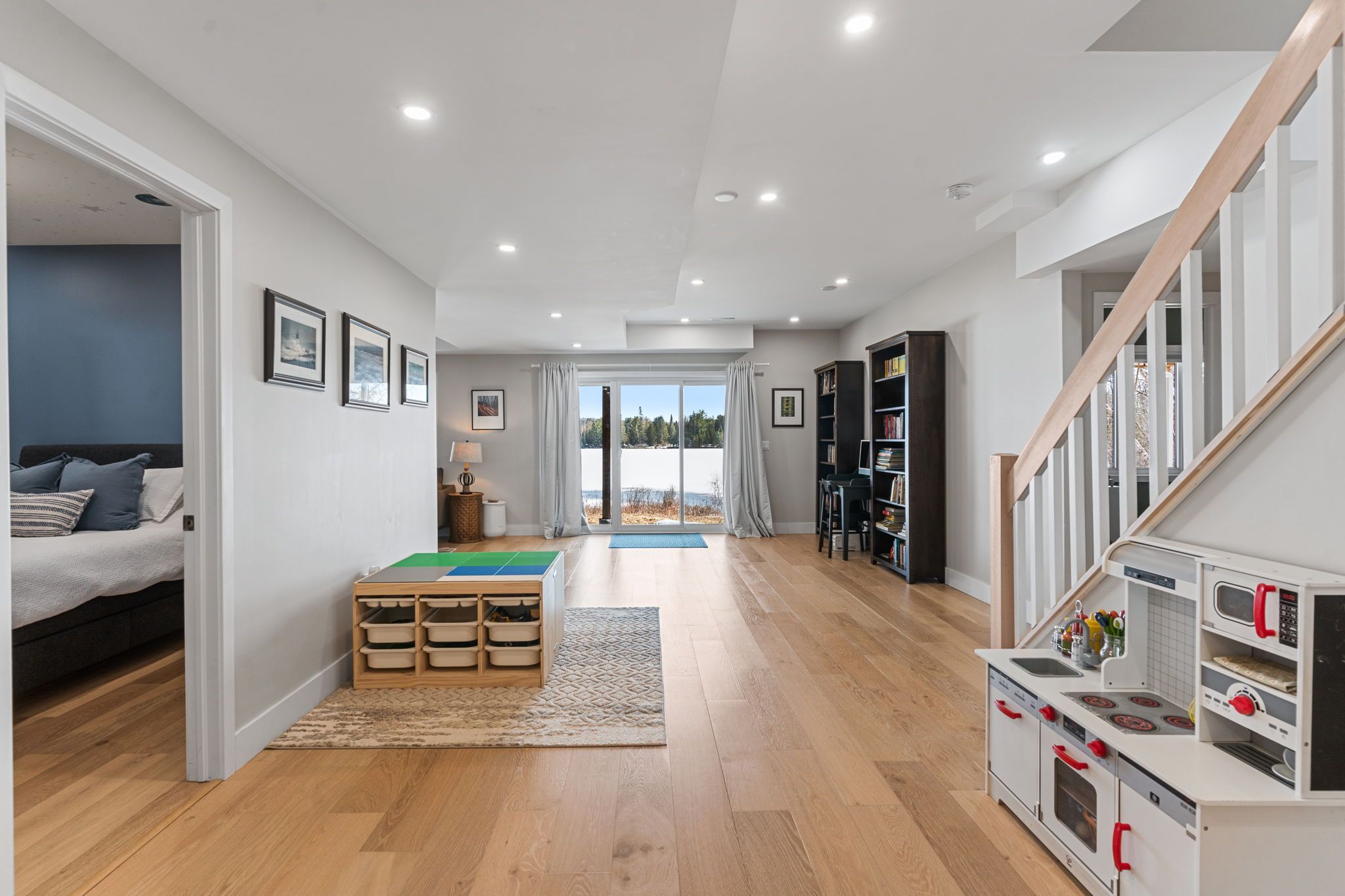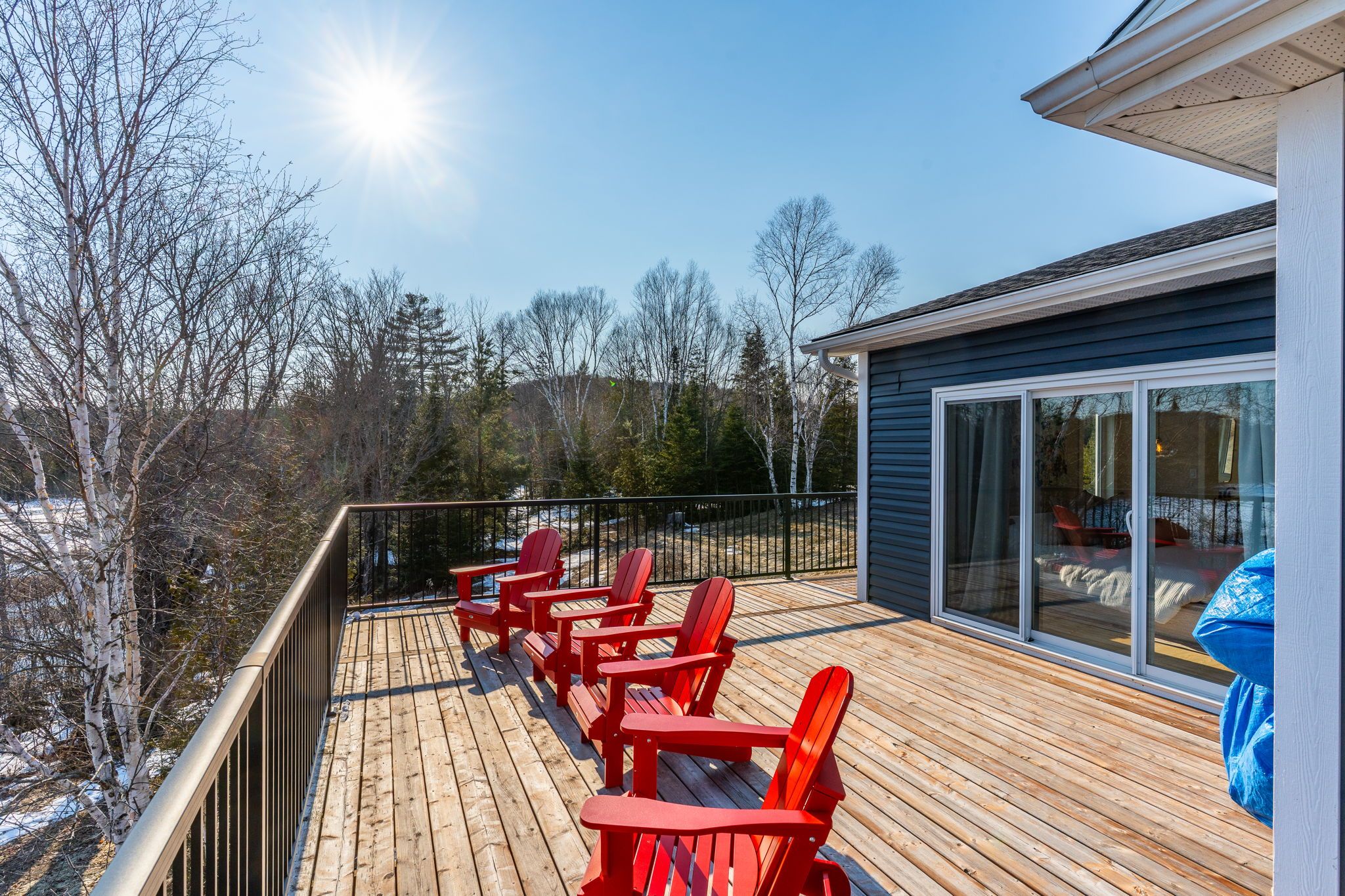 Rarely does an opportunity arise to own a 9-acre waterfront property offering such privacy just 5 minutes from downtown haliburton. This stunning modern home, completed in 2021, perfectly balances contemporary elegance with the raw beauty of the highlands. From the moment you enter, you are greeted by a breathtaking million-dollar view over haas lake, framed by soaring cathedral ceilings and a massive a-frame window that floods the open-concept space with light. The main floor blends refined style with effortless functionality, featuring white-washed oak floors, custom oak beam accents, and a gourmet chef's kitchen equipped with quartz countertops, a sprawling island, and premium stainless appliances. The primary bedroom and ensuite serves as a private retreat, offering a walk-in closet and a spa-inspired bathroom with a soaking tub positioned to capture serene wooded views. Both the primary bedroom and the great room feature walk-outs to an expansive deck-perfect for morning coffee with the sunrise or evening cocktails over the water. Designed for hosting, the fully-finished lower level adds three generous bedrooms, a contemporary bathroom with heated floors, and a large recreation area with a walk-out leading directly to the lake. The property is a true nature lover's playground with 700+ feet of shoreline and a private dock for swimming, fishing, and boating. An offering of this calibre - balancing modern luxury with such vast acreage - is seldom seen. The land and adjacent creek are teeming with wildlife, providing a peaceful, 'tucked away' lifestyle without sacrificing proximity to shops and restaurants. Whether exploring your private woods or relaxing by the lake, this exceptionally rare property stands as the ultimate expression of modern lakefront luxury.