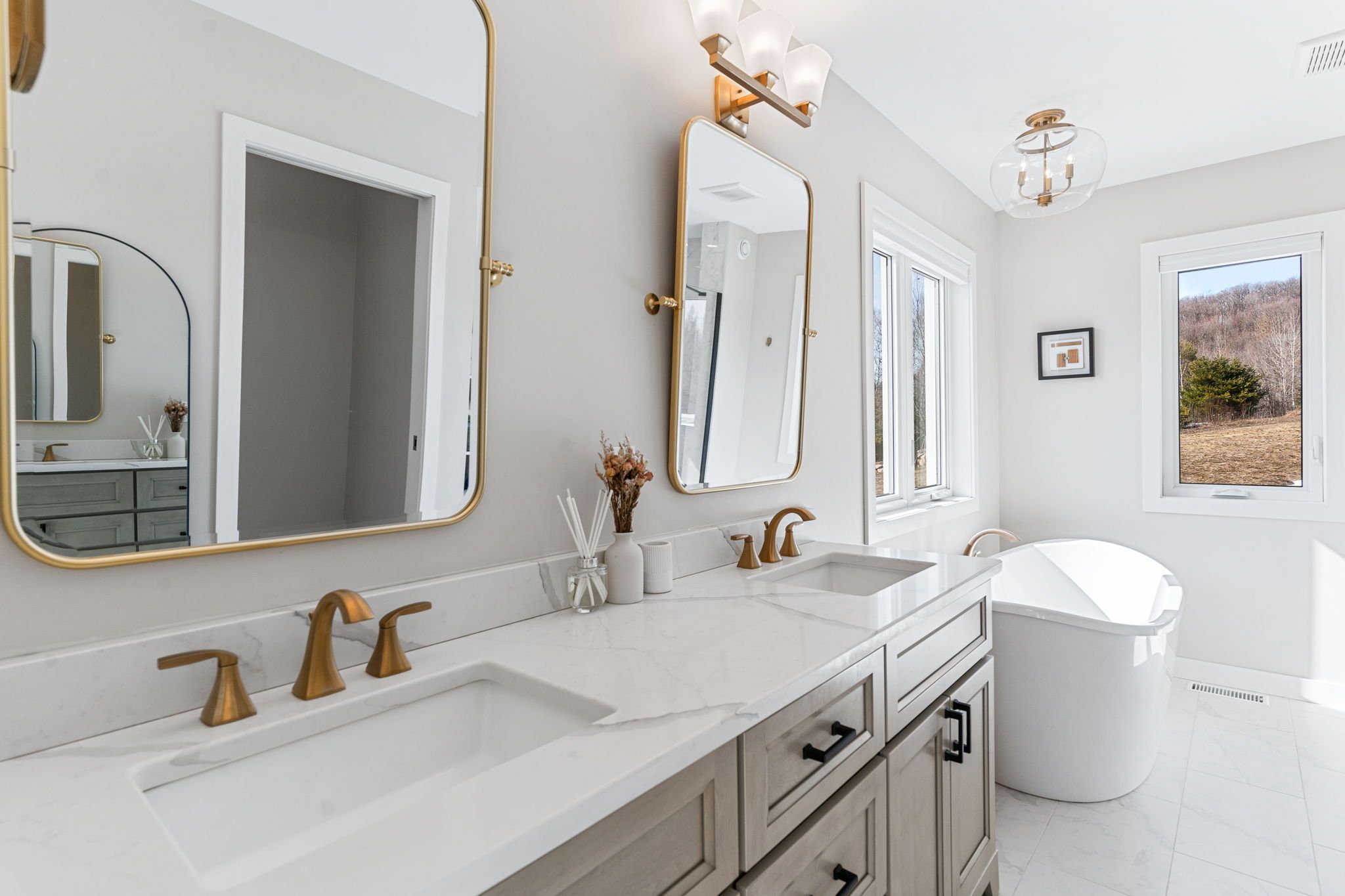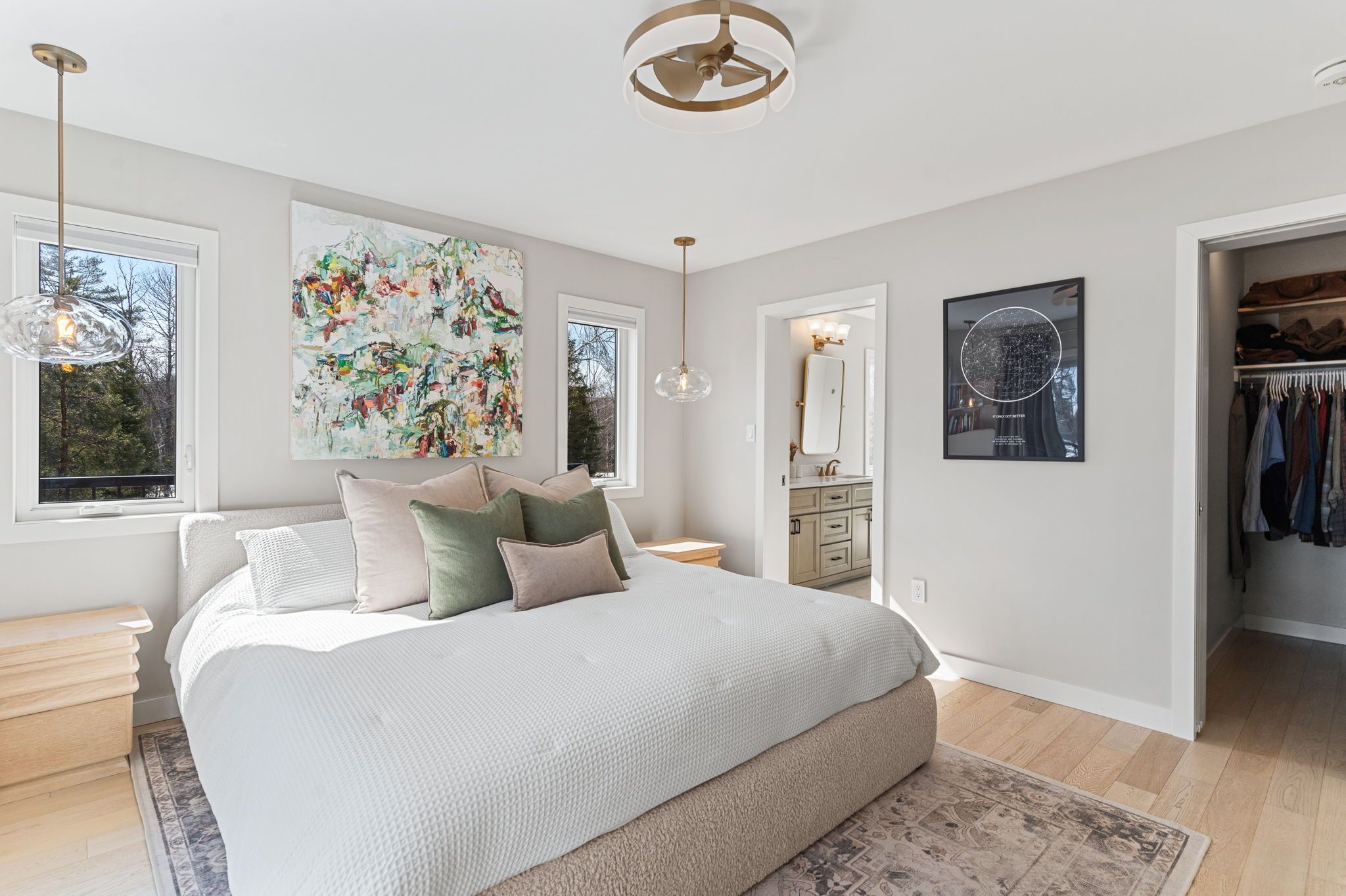 • Gourmet kitchen with quartz countertops and premium stainless appliances.