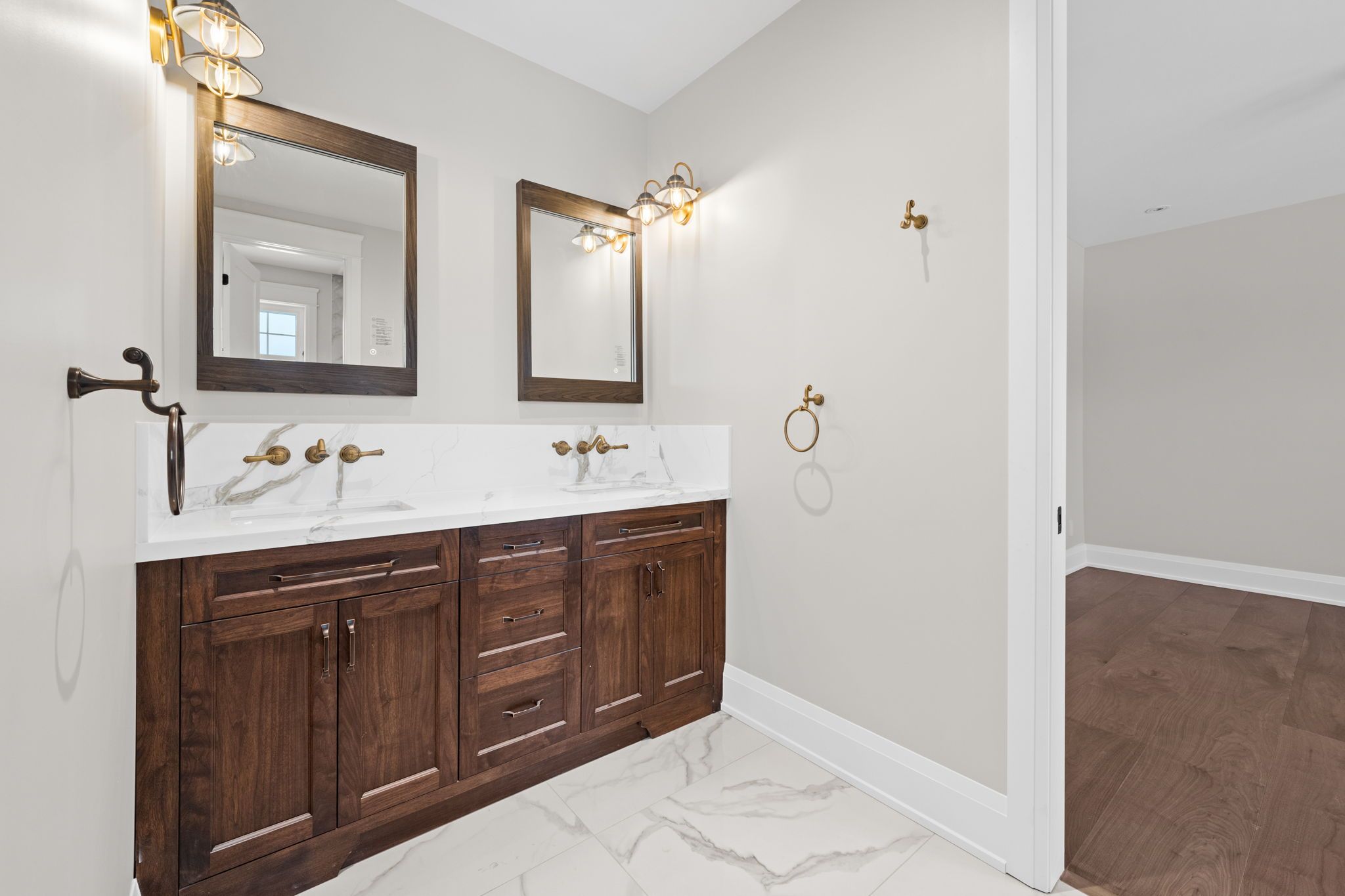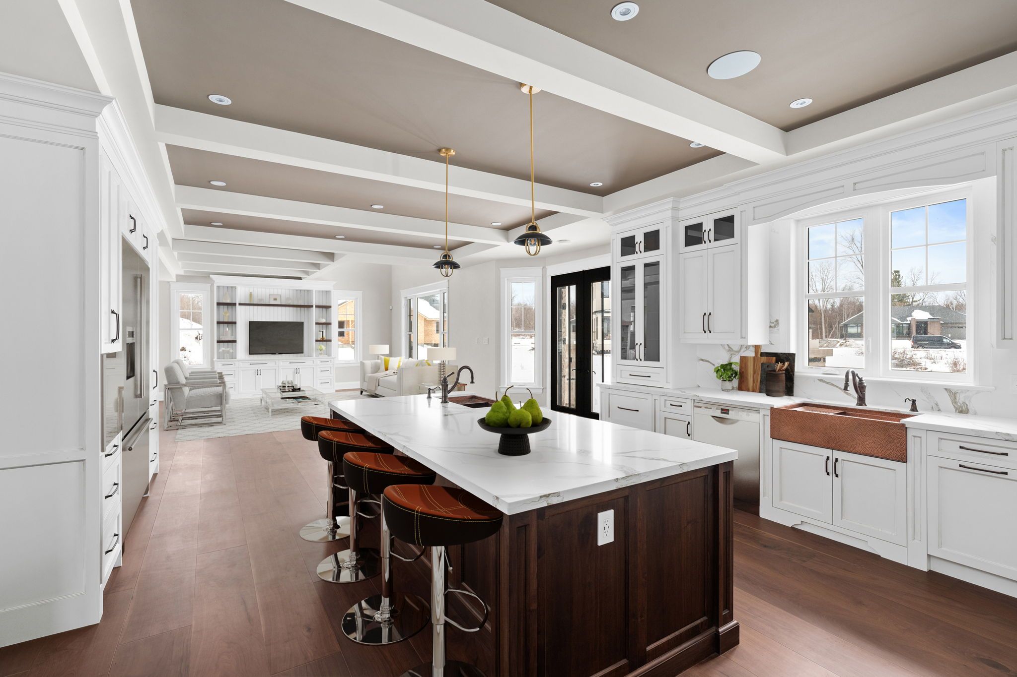 This thoughtfully designed, custom-built residence with full tarion warranty is set in one of the area's most established and desirable neighbourhoods, reflecting a strong focus on quality construction, material integrity, and long-term durability. Offering 5 bedrooms and 6 bathrooms, the home delivers a well-balanced layout that supports both daily living and entertaining. The main level is anchored by a professionally appointed kitchen featuring a full jenn-air appliance package, custom cabinetry and a separate butler's kitchen designed for efficiency and seamless hosting. Custom copper sinks are featured throughout all kitchen areas, including the main kitchen, butler's pantry and basement kitchen/bar. Extra-wide plank hardwood flooring flows throughout the home, complemented by coffered ceilings and clean-lined millwork that reinforce the home's classic architectural foundation with restrained modern detailing. A dedicated main-floor office provides a functional and private workspace. All bathrooms are finished with heated floors and durable, high-quality materials. The primary suite is a true retreat, highlighted by an exceptional en suite with spa-level finishes, thoughtful layout and a well-proportioned walk-in closet. The fully finished basement extends the living space and is well suited for entertaining or multi-generational living, complete with a kitchen/bar area, fireplace, and flexible recreation space. The exterior combines hardie board siding with limestone detailing, selected for both durability and timeless architectural appeal. Throughout the home, modern elements are intentionally restrained and grounded in classic design principles, resulting in a truly unique residence built to age exceptionally well over time.