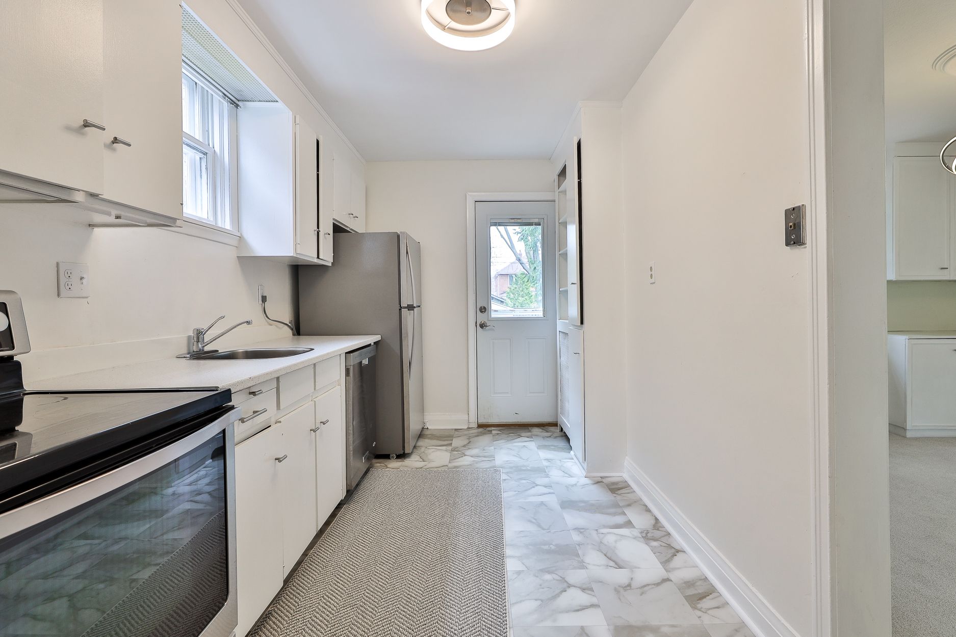 • Updated kitchen with stainless steel appliances and convenient backyard access.