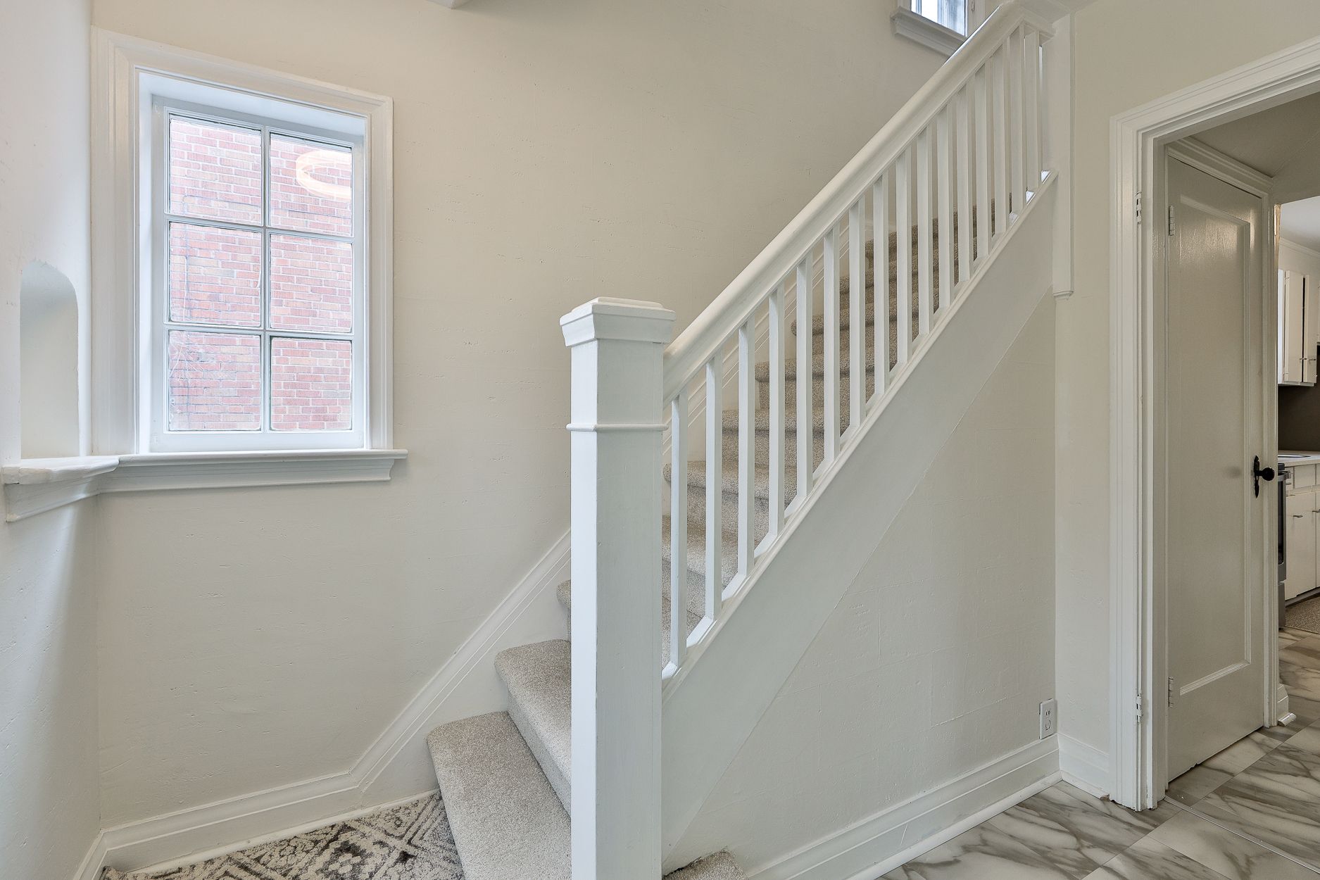 • Bright main floor with charming bay window and vintage details.