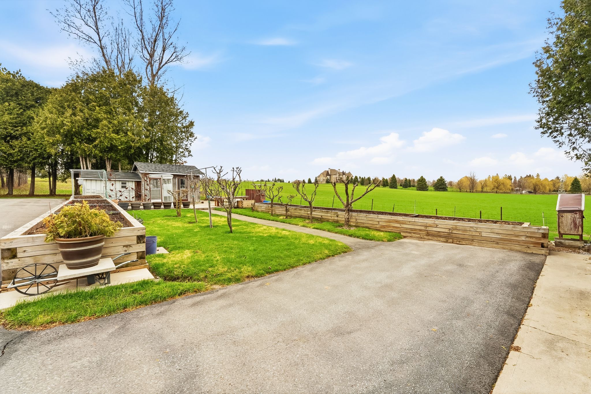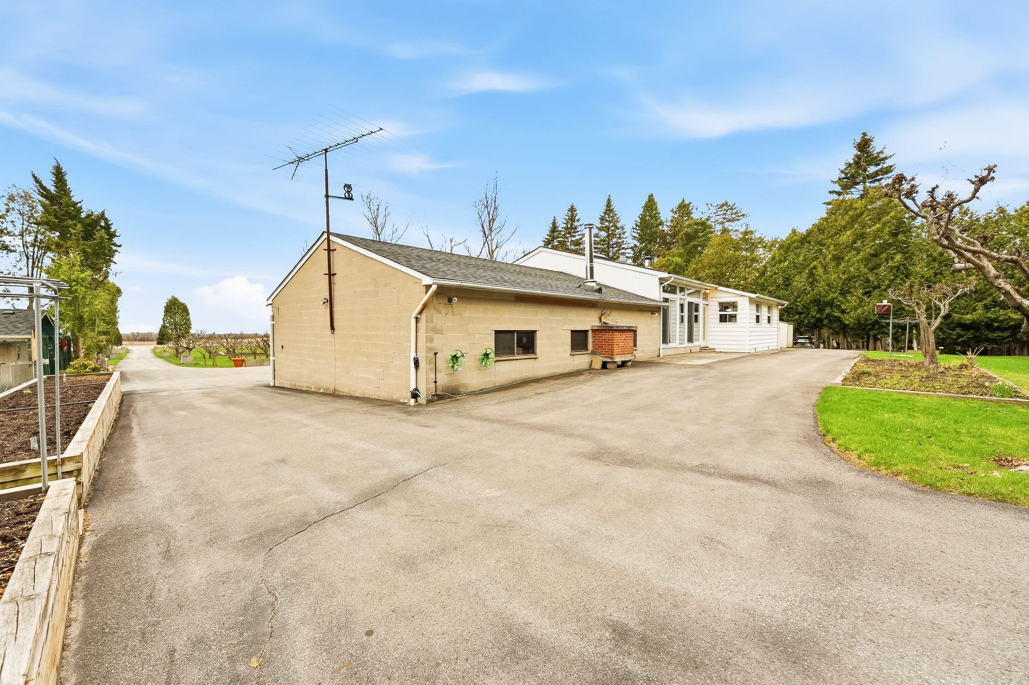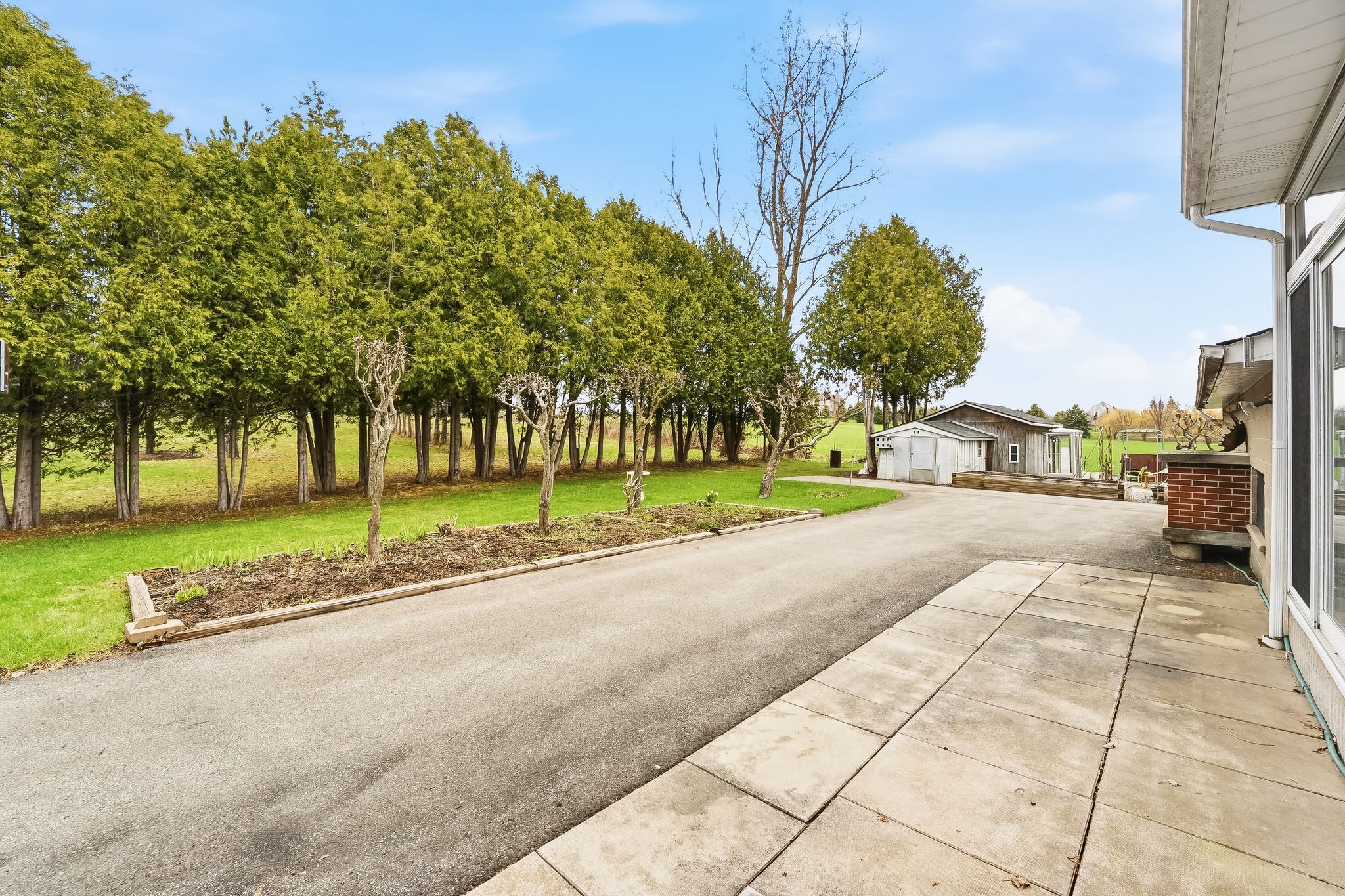 • Long driveway accommodates up to 12 vehicles, perfect for gatherings.
