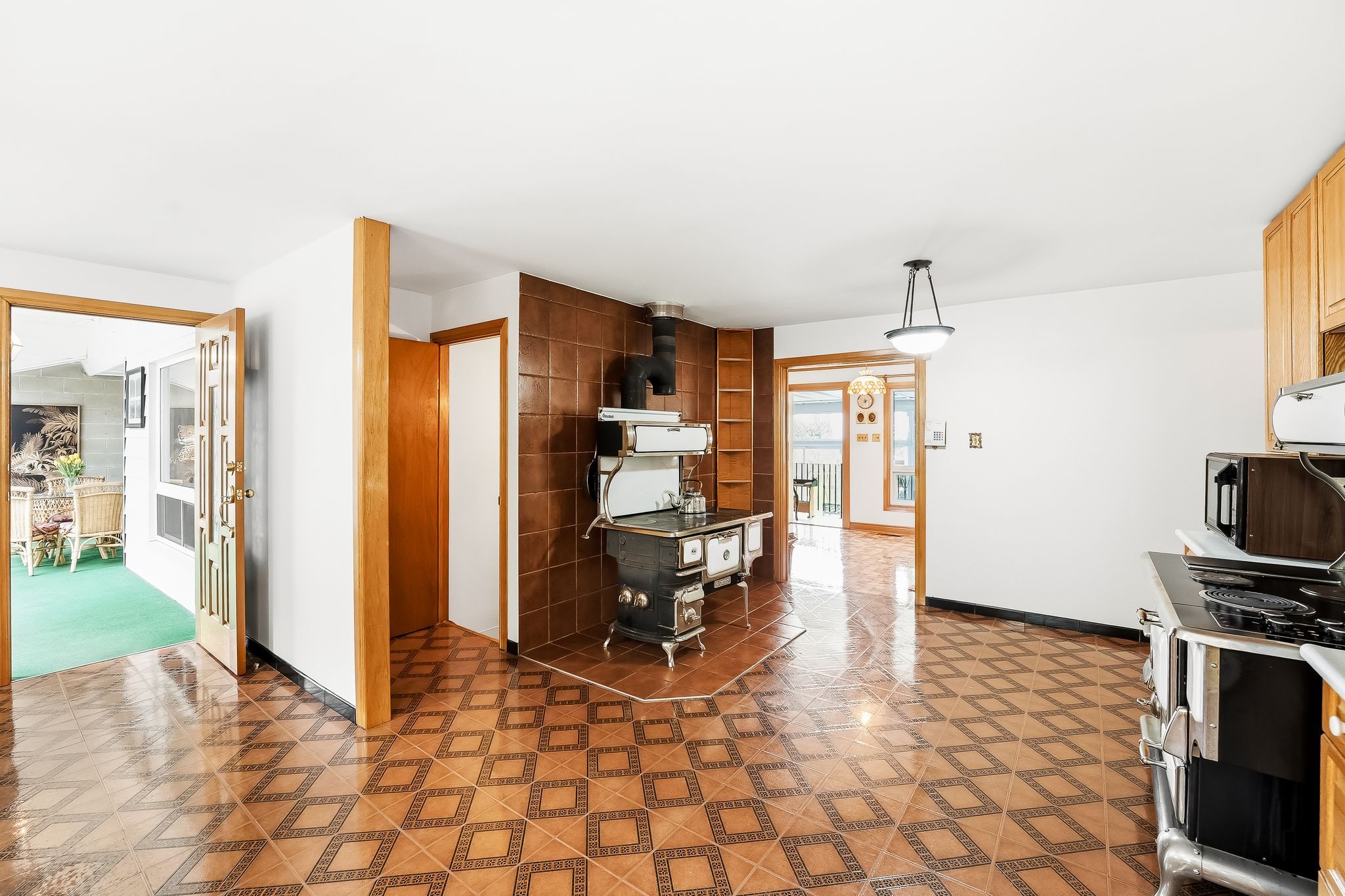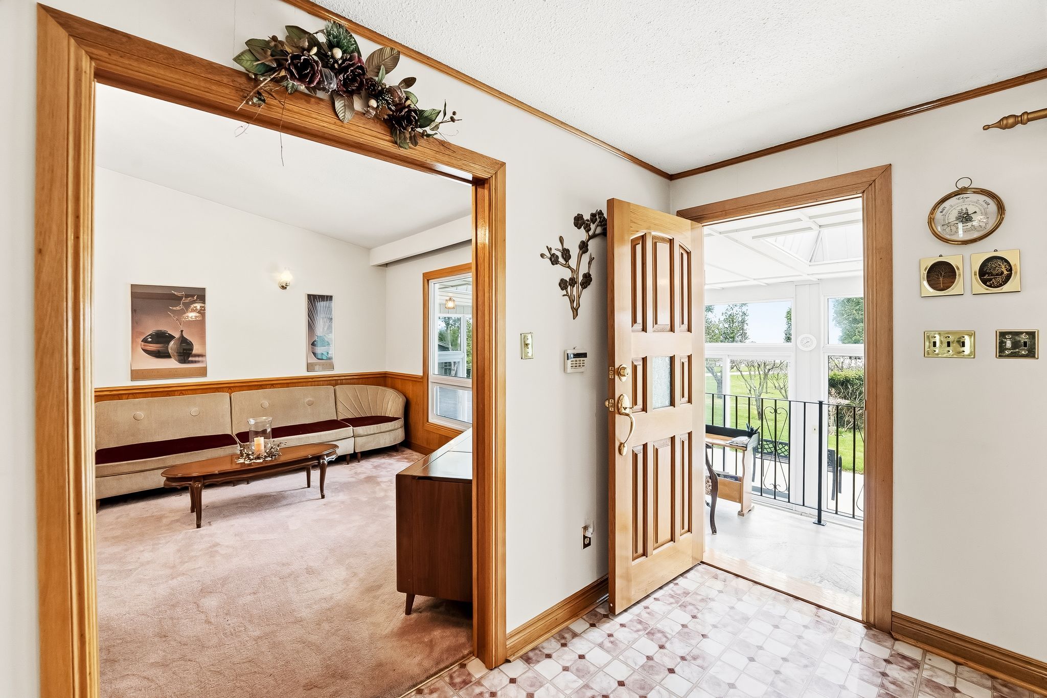 • Unique enclosed solarium connecting the home to a large triple car garage.