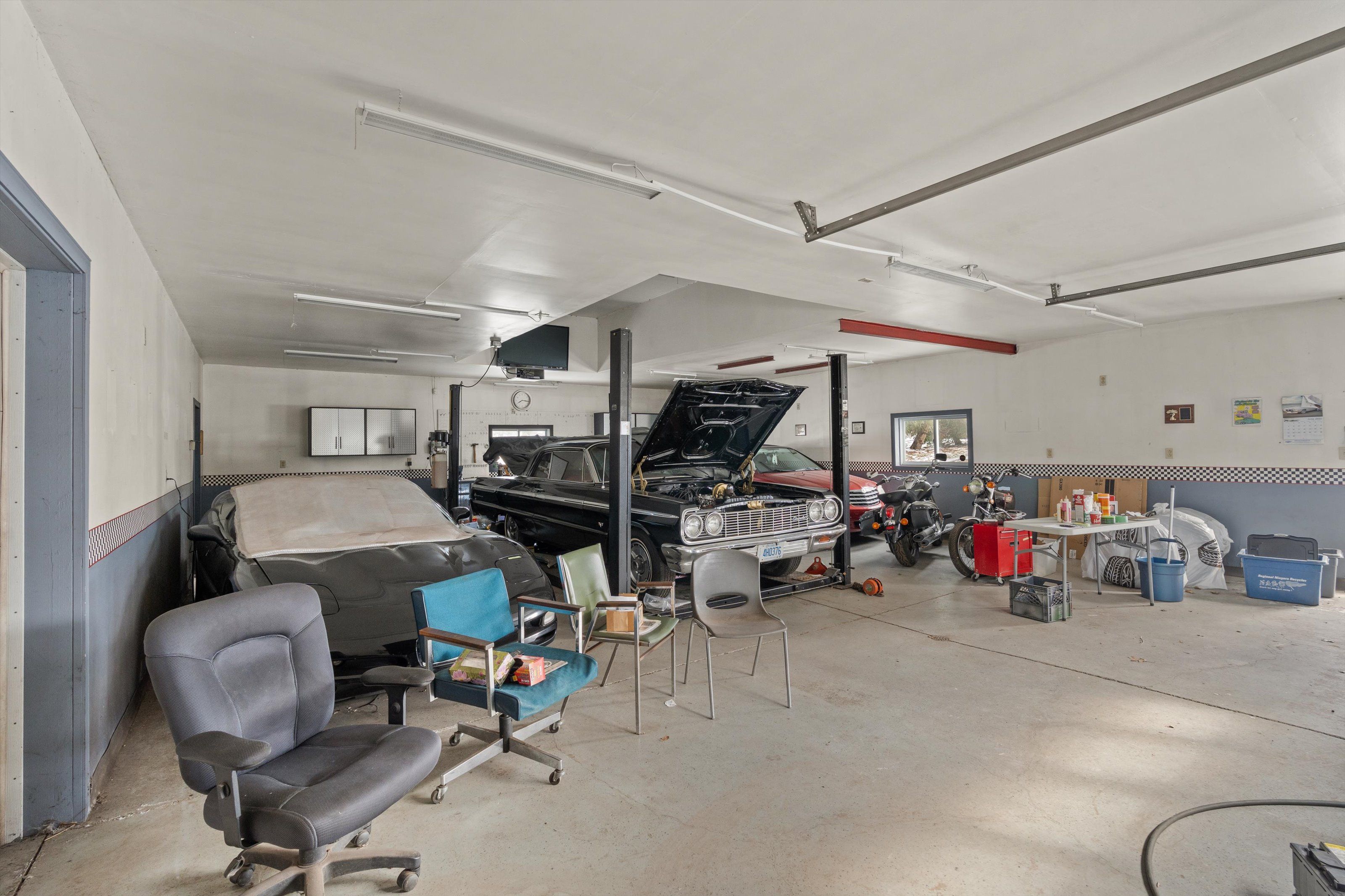 • Spacious heated garage and ample parking for hobbyists or entrepreneurs.