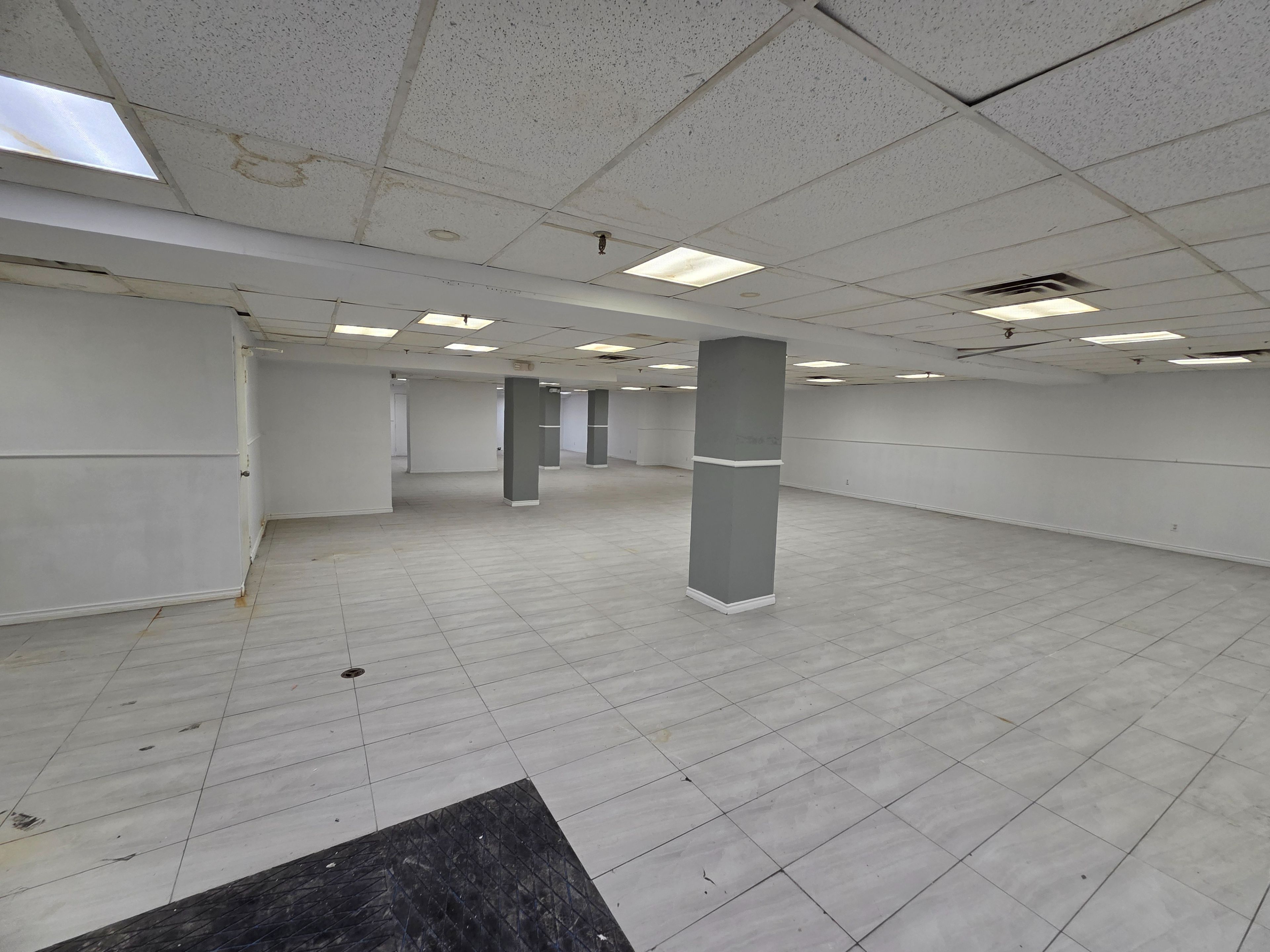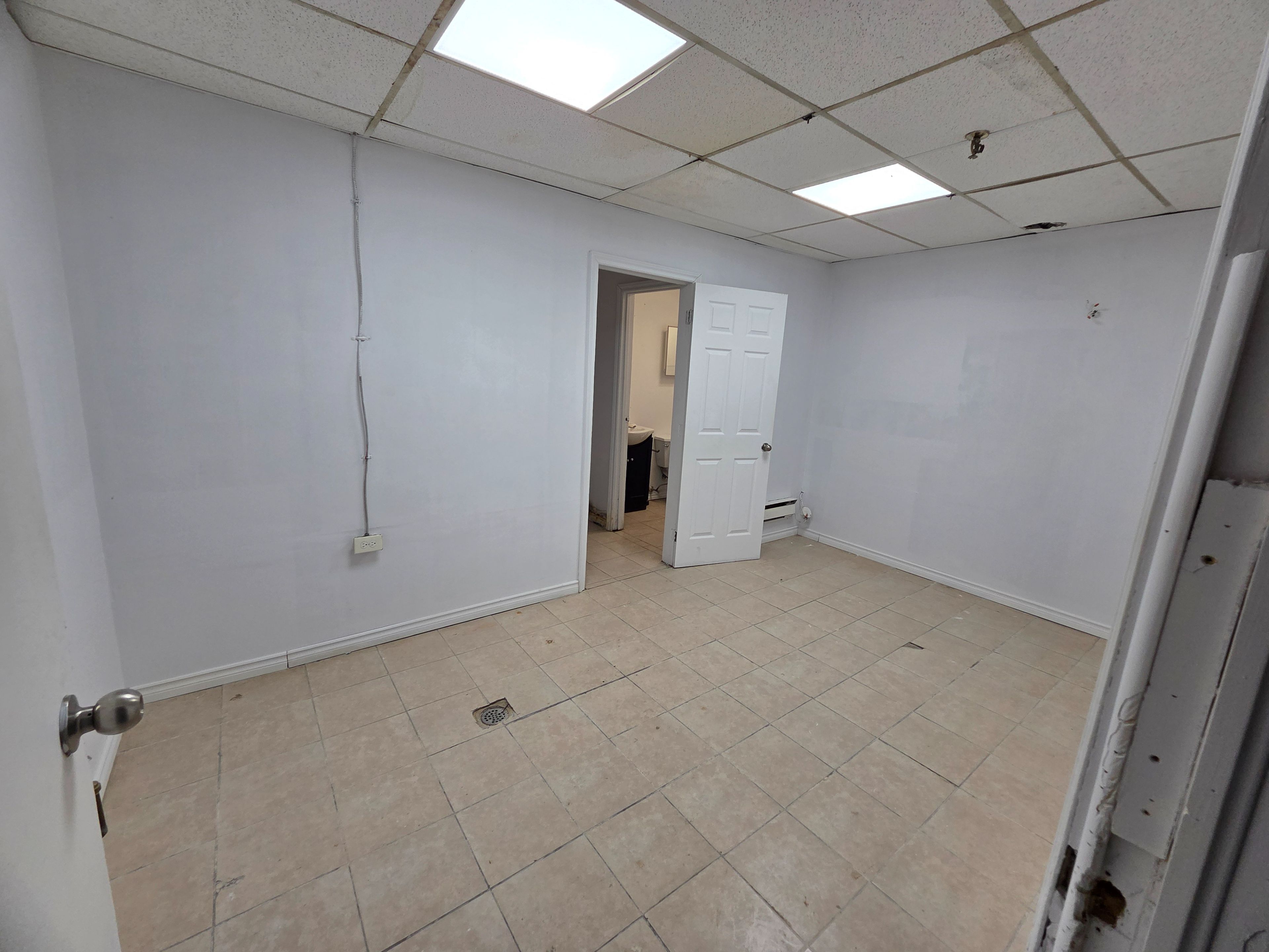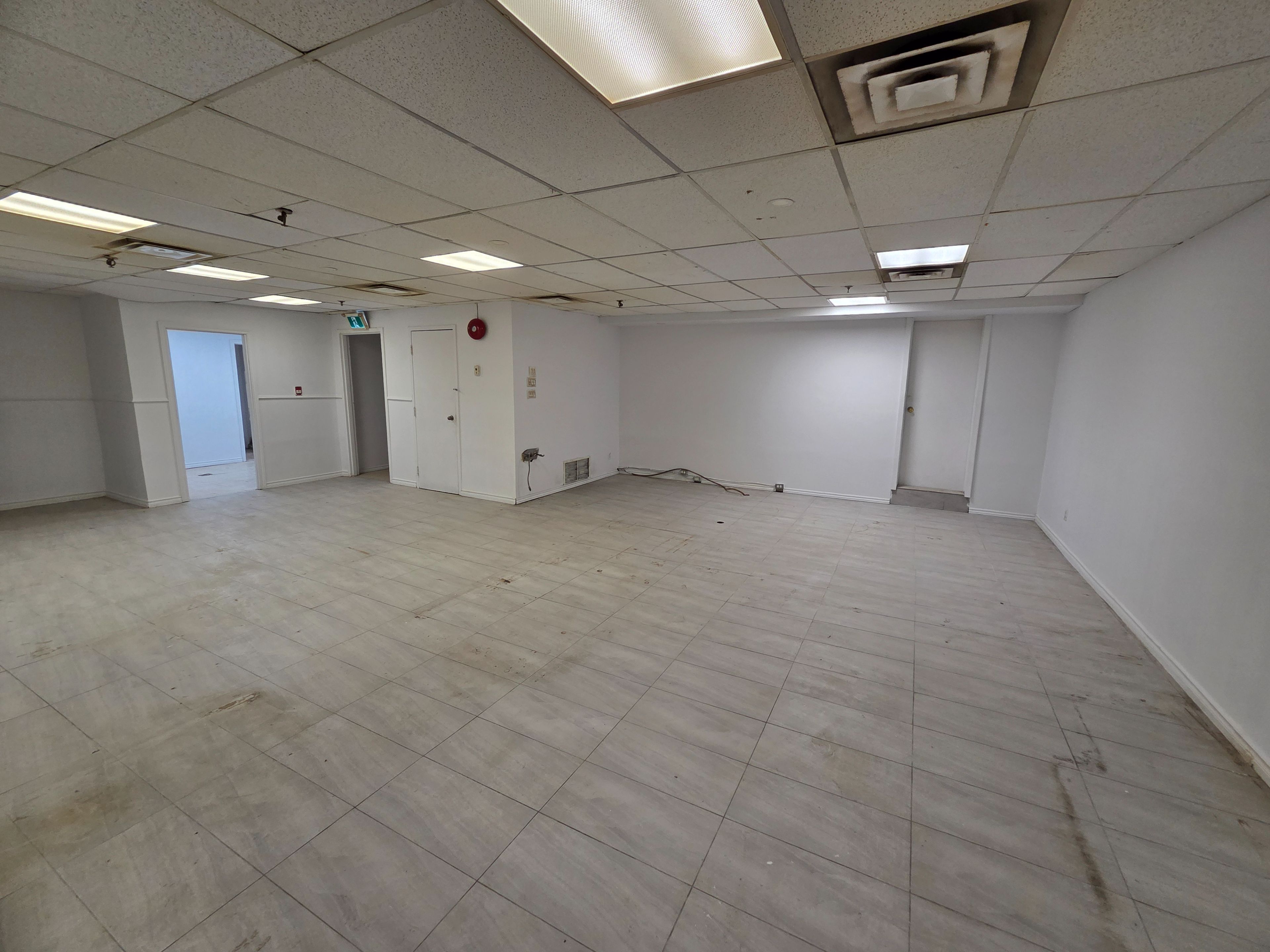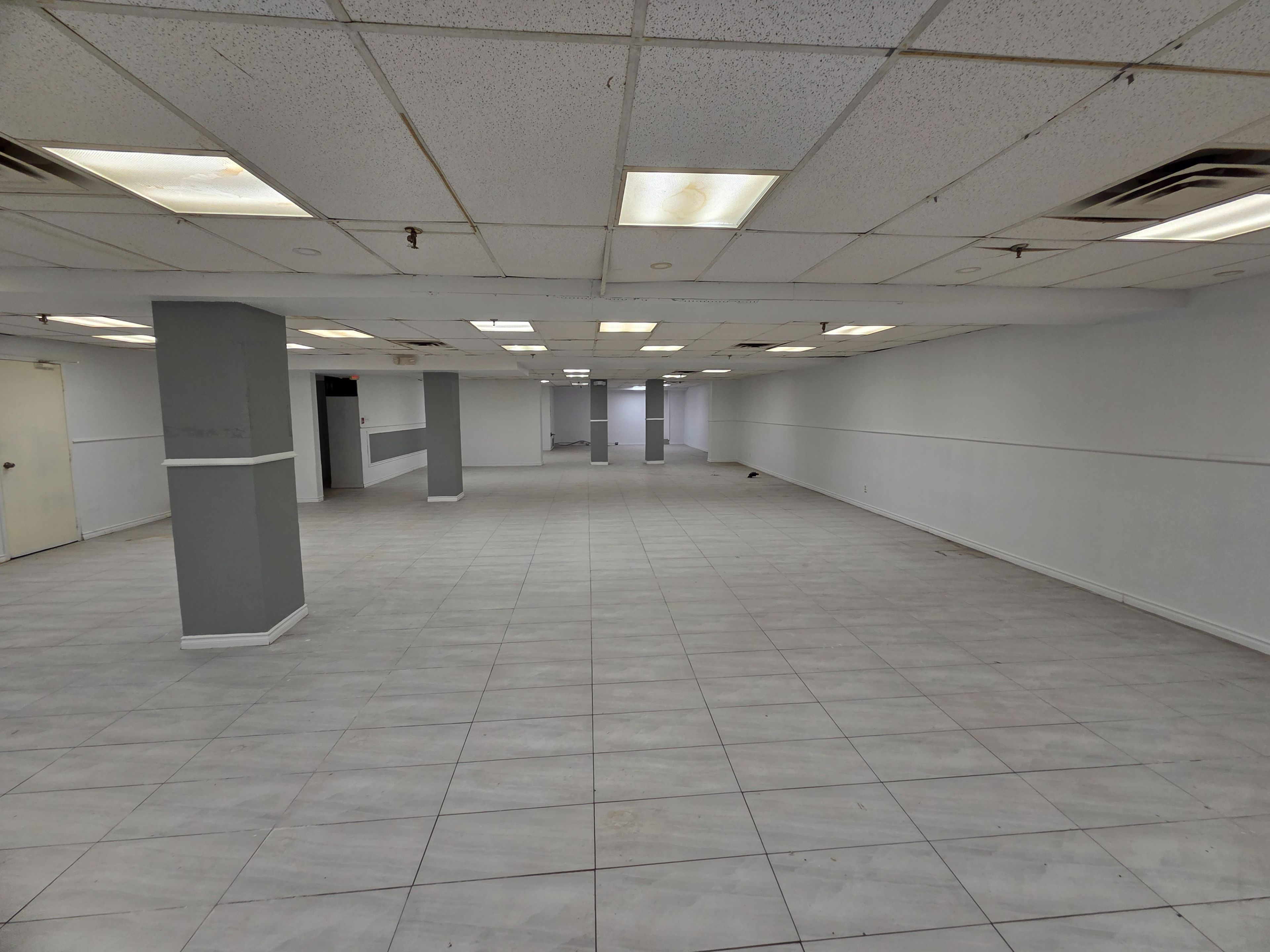 Large open concept basement hall unit in prime scarborough location. Near eglinton ave l. R. T, ttc and major eglinton ave shops. Large open basement space with his/her washrooms and kitchen area, shower room, and an office space. Ceramic tile floor throughout. Parking in front of building.