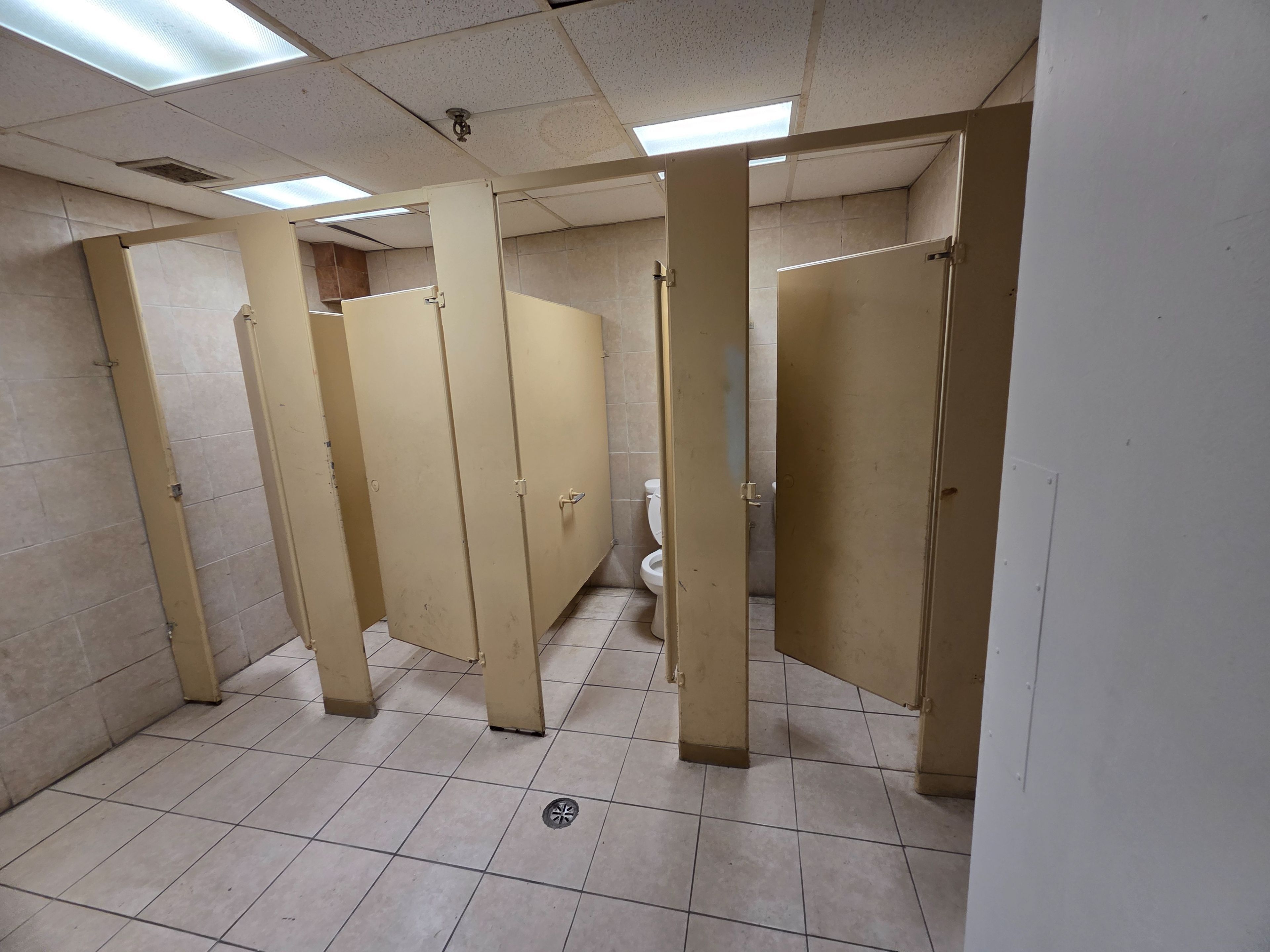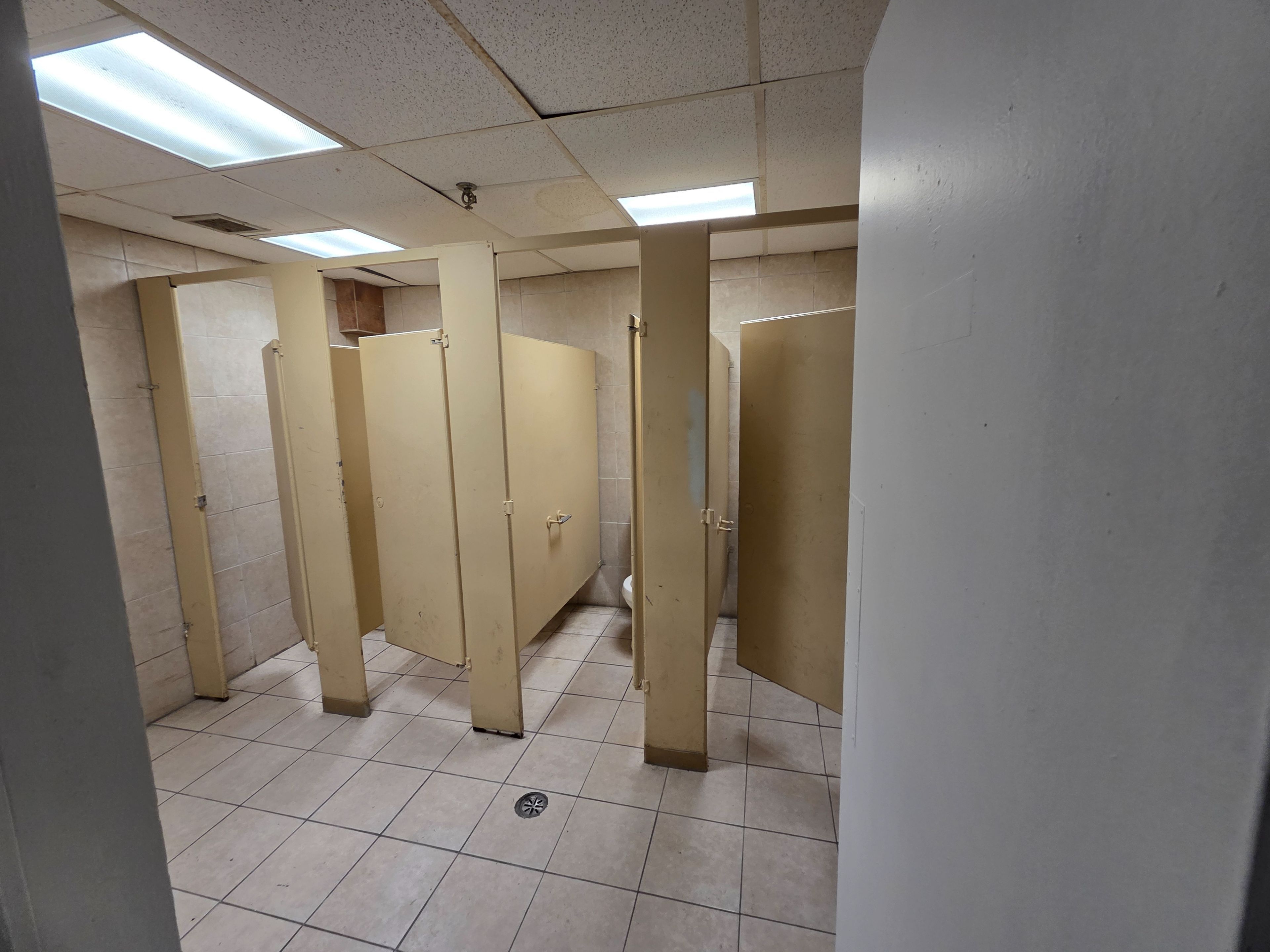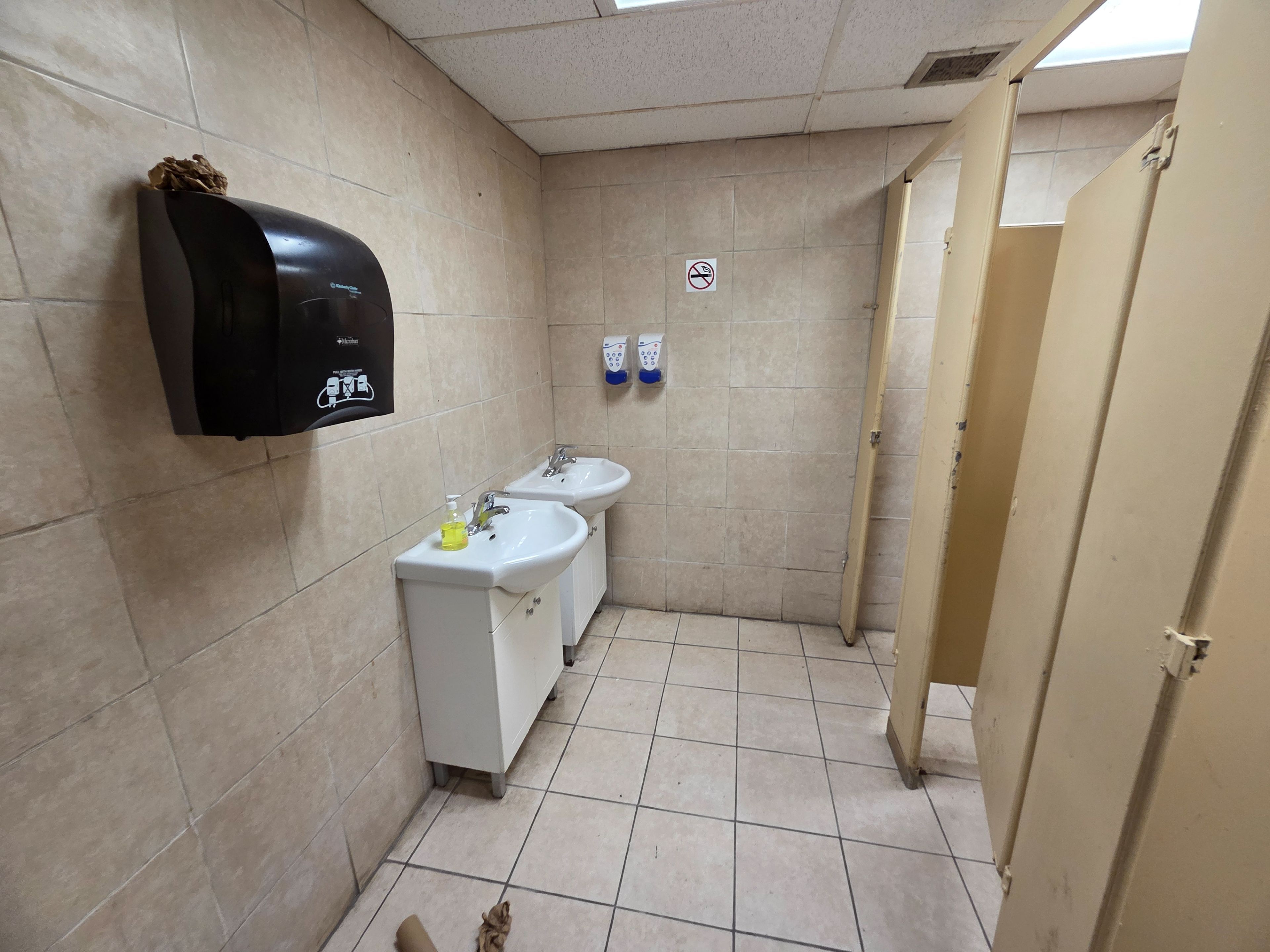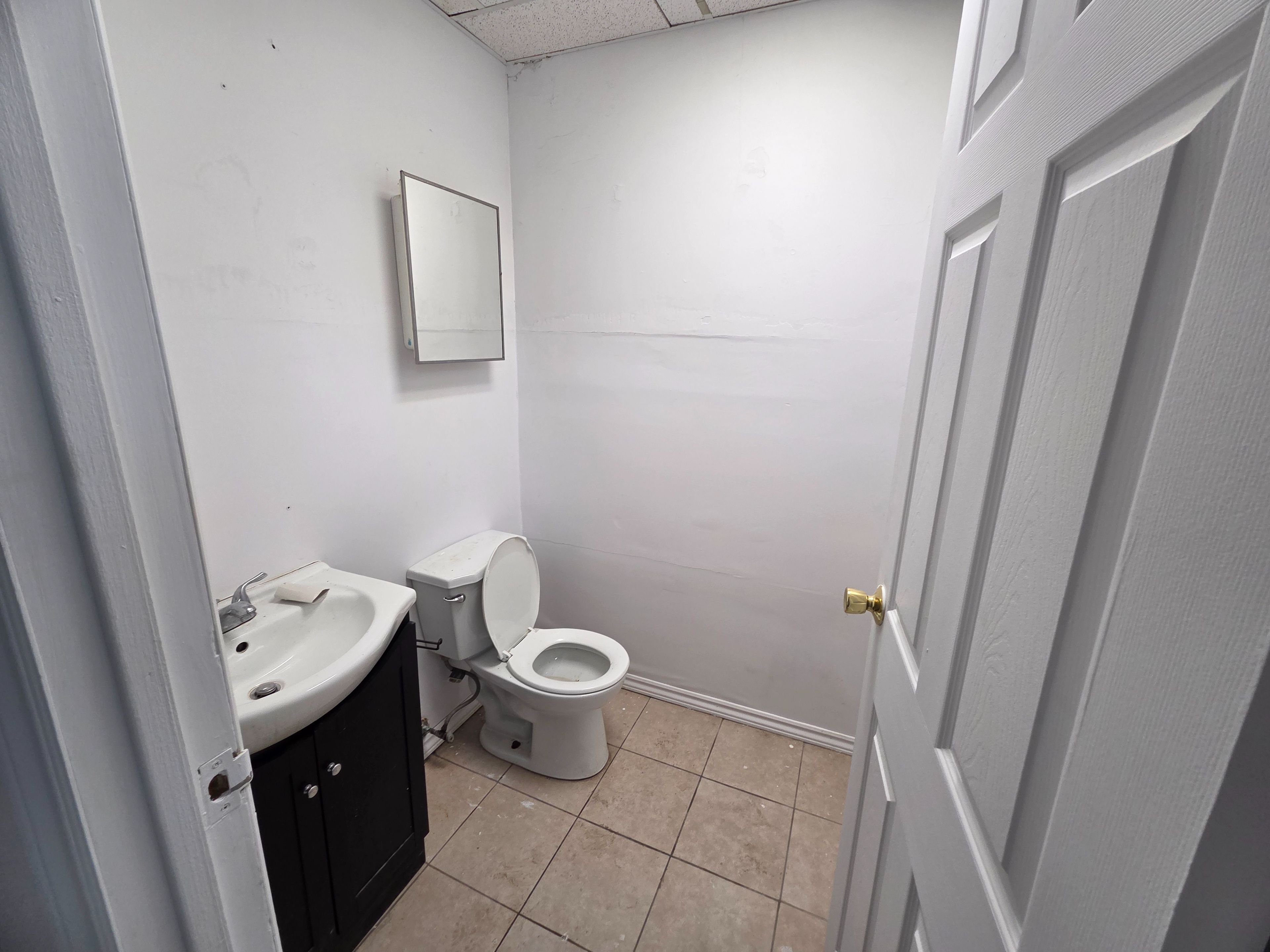 Large open concept basement hall unit in prime scarborough location. Near eglinton ave l. R. T, ttc and major eglinton ave shops. Large open basement space with his/her washrooms and kitchen area, shower room, and an office space. Ceramic tile floor throughout. Parking in front of building.
