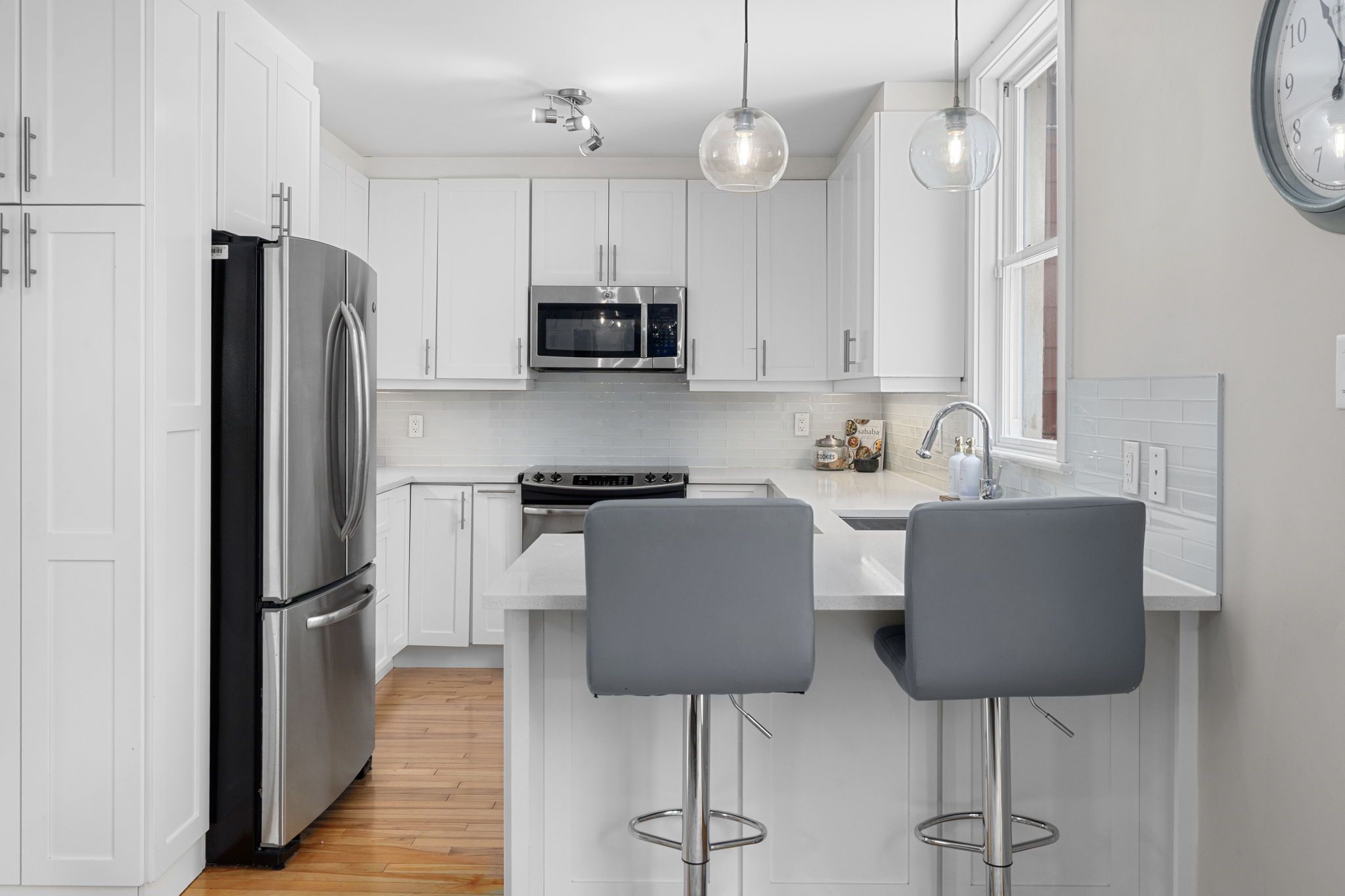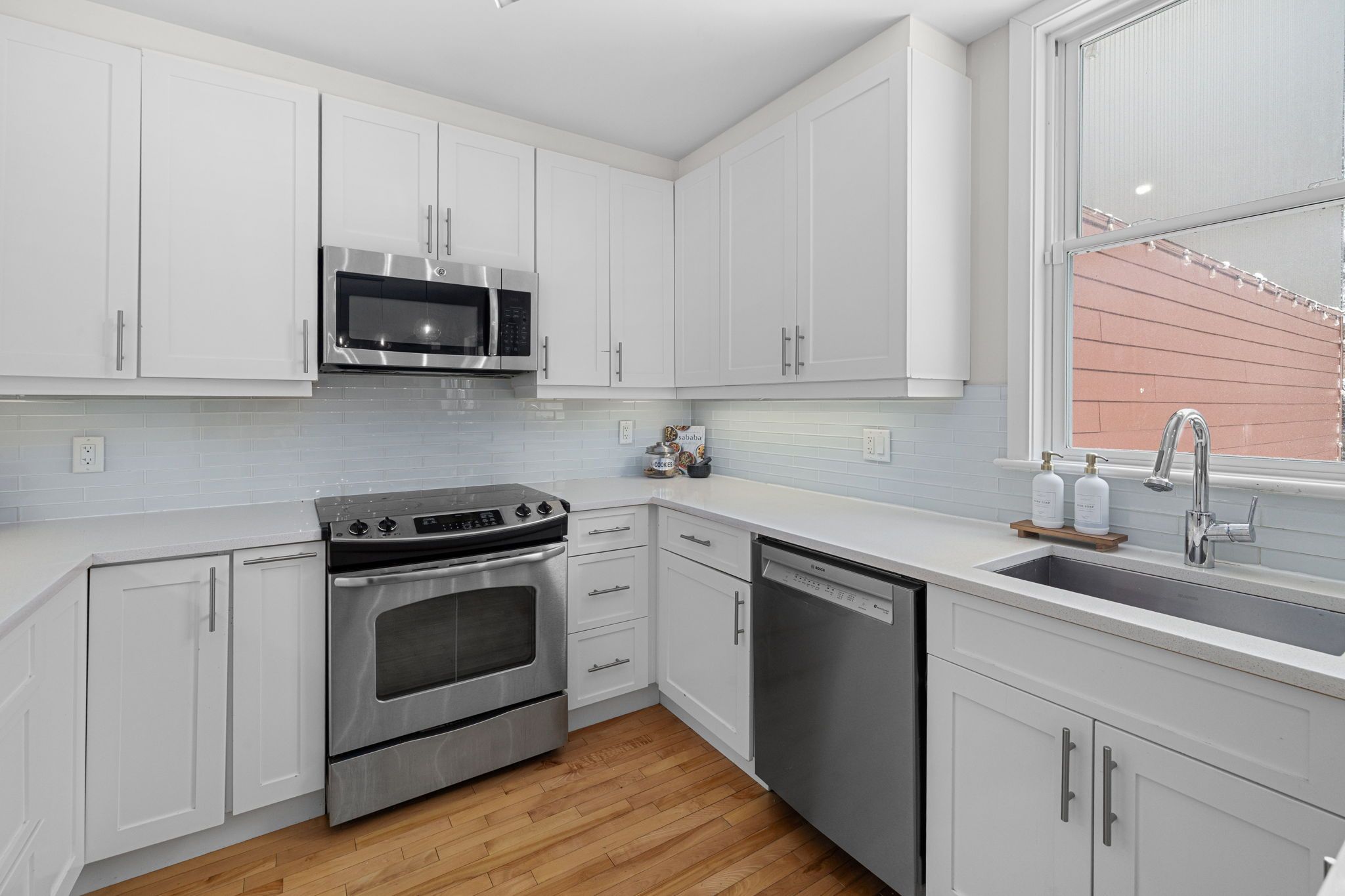 • Updated kitchen featuring quartz countertops for modern cooking.