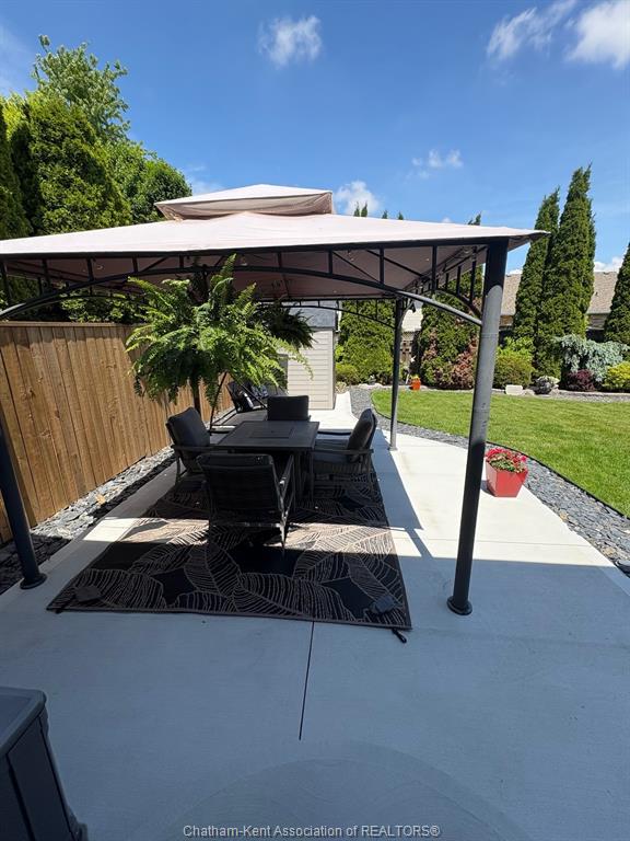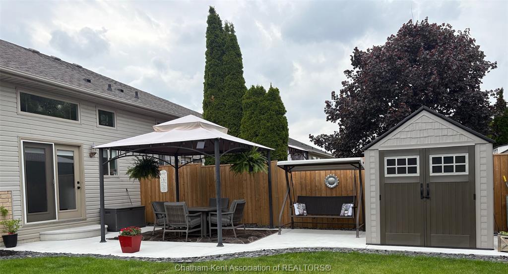 • Private backyard features a new patio, gazebo, and updated fence.