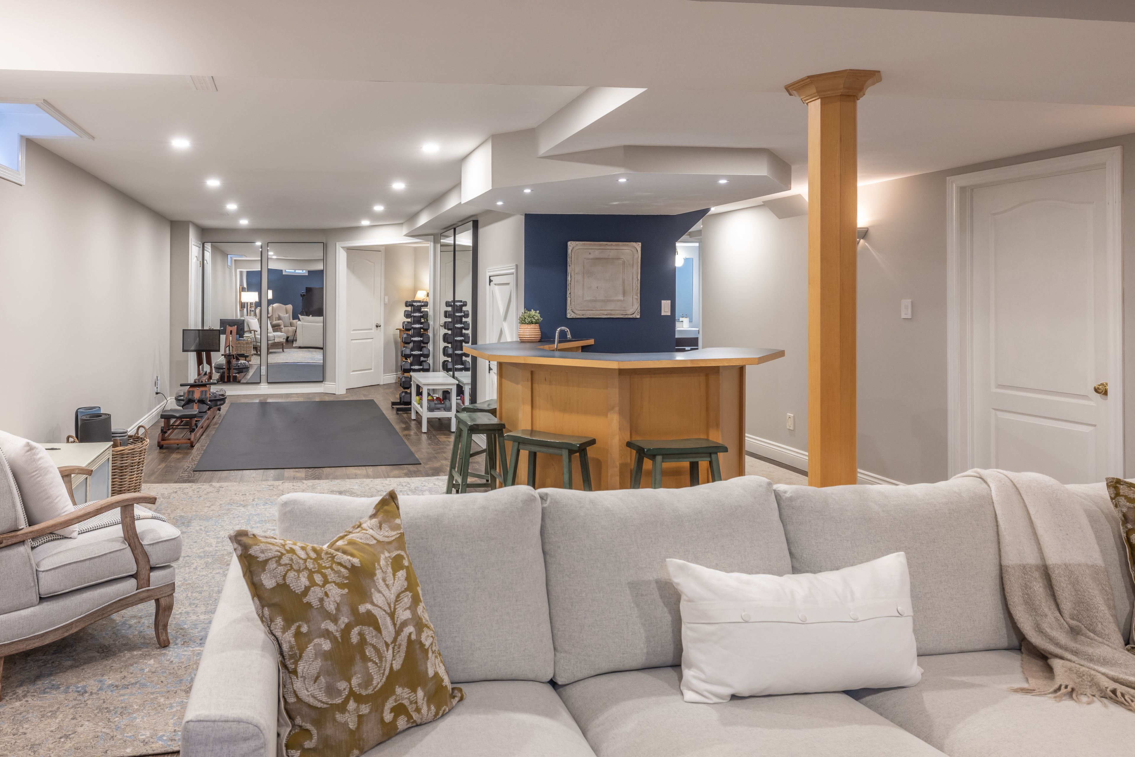• Fully finished lower level with recreation space and custom bar for relaxation.