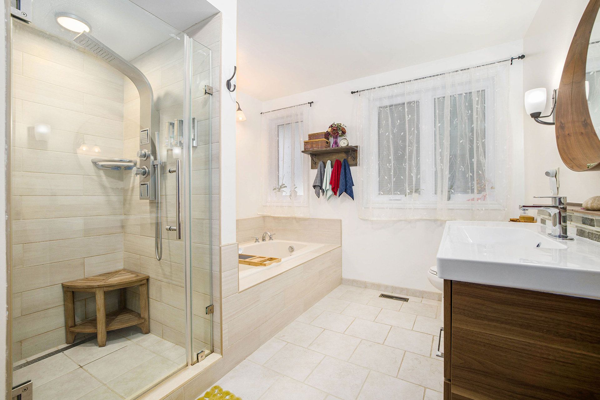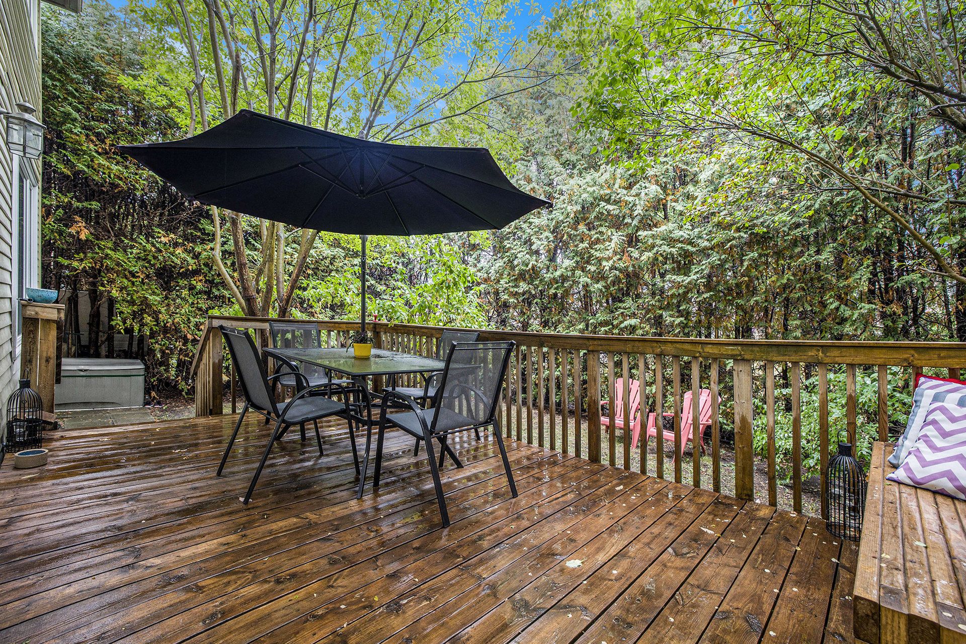 Step into this beautifully maintained 3+1 bedroom, 4 bathroom home where pride of ownership is evident at every turn. Thoughtful upgrades and charming touches combine to create a welcoming, move-in ready space your family will love. The manicured front landscaping sets the tone, leading to a stunning covered porch that doubles as a sunroom, ideal for morning coffee, reading, or simply unwinding. Inside, a large tiled foyer greets you, flowing seamlessly into a sun-filled living room thanks to a generously sized front window. The kitchen is a standout with timeless extended white cabinetry, stainless steel appliances, granite countertops, pot & pan drawers, subway tile backsplash, and ample storage. A cozy breakfast or reading nook invites quiet moments, while the open-style picture window overlooking the dining and family room makes entertaining effortless. The dining area features a charming bay window, and the family room offers direct access to the backyard oasis complete with a private deck and mature trees providing natural serenity. A beautiful winding staircase with elegant wrought iron spindles leads to the second floor where you will find the spacious primary suite featuring double closets and a luxurious 4-piece ensuite with a glass-enclosed shower and separate jacuzzi tub. Two additional bedrooms and a shared 4-piece bathroom complete the upper level. The fully finished lower level adds versatility with an additional bedroom, bathroom, and plenty of space for guests or extended family along with a large projector screen and home theatre system. A dedicated laundry room adds everyday convenience. Quick access to the 417 and easy walking distance to katimavik and castlefrank elementary, wave pool, kanata town center, kanata centrum, and kakulu medical center. Perfect for growing families, this remarkable home sits in the earl of march secondary school district, recognized as one of the best public high schools in ottawa and across ontario.