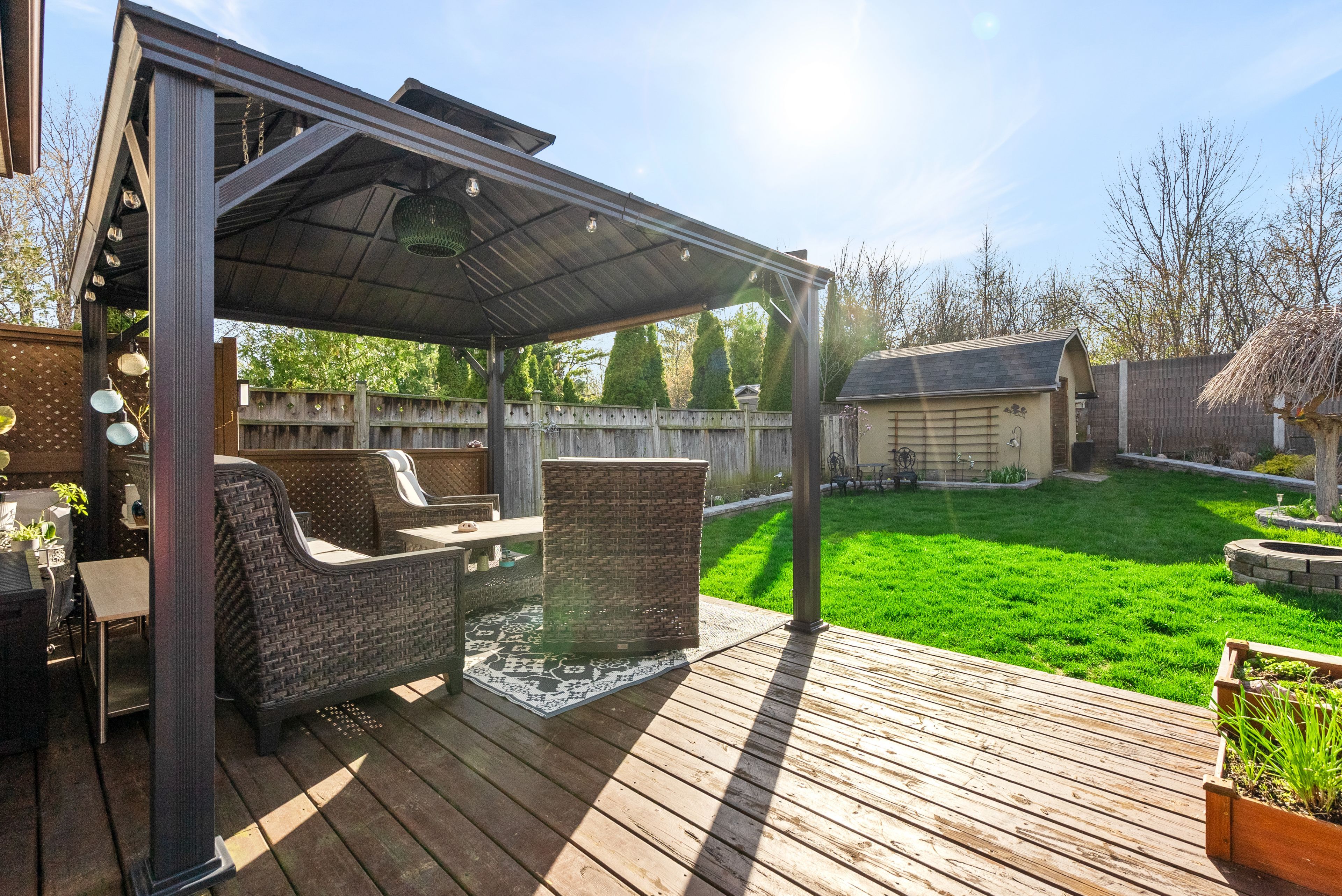 • Private sun-filled backyard with no rear neighbors for exceptional relaxation.