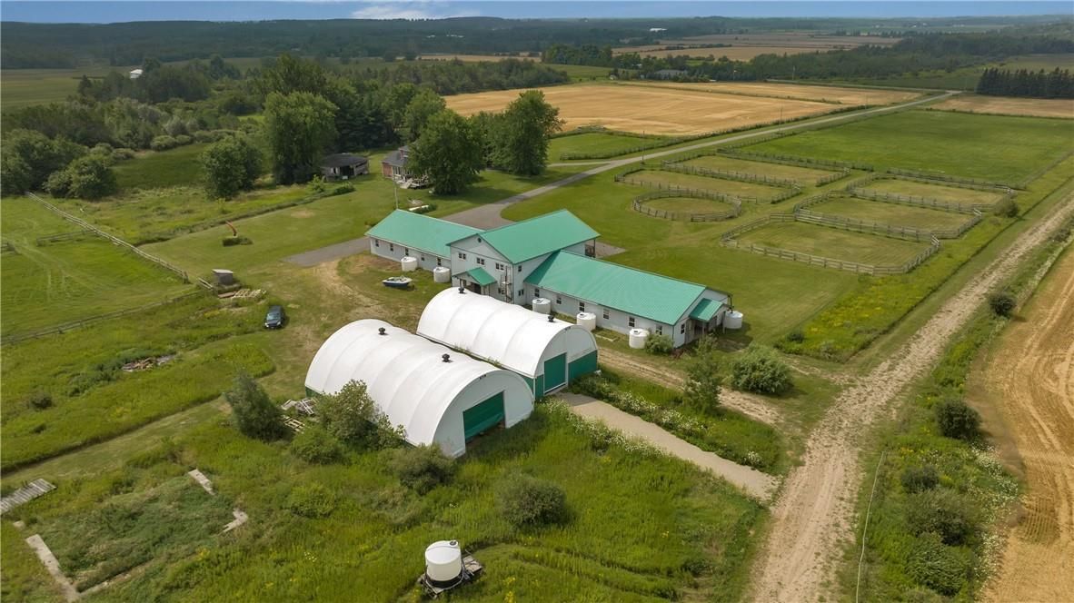 Nestled upon 108. 771 acres of gently rolling land outside the greenbelt, this agricultural-zoned sanctuary lies close to modern amenities. Just 4 miles w of orangeville and a mile n of hwy 109, its prime position next to the industrial lands on county rd 11 and the proximity to the farmington employment area underscore its future development potential. The house, built in 1995, spans approx 3,000 sq ft with 4 bedrooms, 3 baths, and a capacious 3-car garage. Recent upgrades include roof 2017, furnace 2016, water heater 2015, upgraded well system/water purification 2021, and eaves 2017. Its interior exudes warmth with solid hardwood floors, 9 ceilings, and bay windows. A modern kitchen and large deck overlooking the estate. Home is fitted with a generator. Above the barn, there's a stunning apartment spanning 1,748 sq ft with 3 bedrooms and 1 bath. Featuring soaring cathedral ceilings, solid maple cabinets, hardwood floors, and an inviting 8 x 38 covered deck that offers panoramic sunset views. The dutch masters barn design constructed in 2003 is fully insulated and houses 24 stalls with top-tier amenities. Featuring double wash stall, designated rooms for feed and equipment storage, heated washroom, a tactfully designed tack room, and an adjoining laundry/furnace room with direct access to the apartment. Equestrian enthusiasts will be drawn to the professionally installed 6-furlong training track. This venue harks back to the estate's illustrious history as a breeding, training, and racing center. Additionally you will find a commodious hay barn stands ready, alongside an equipment storage barn equipped with an extensive electrical capacity. And, for practical needs, there's a concrete-block-lined manure storage area. The estate's pastures are vast and well-maintained. With approximately 19,000 linear feet of three-board oak fencing, 8 distinct paddocks, a 70 round pen, and 5 expansive pastures. Currently approx 60 workable acres with room to expand.