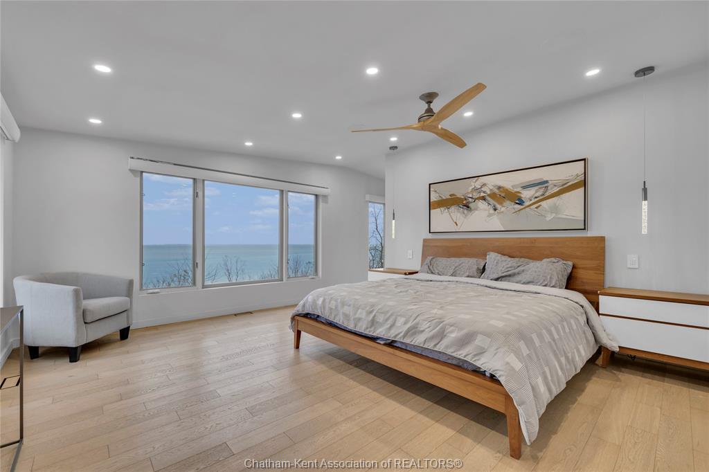 Welcome to your waterfront retreat on 4. 4 acres along the shores of lake erie. This impressive 3,000 sq. Ft. Smart home offers 4 bedrooms, 3 bathrooms, and a bright open-concept layout designed to maximize natural light and breathtaking lake views. Enter through secure smart gates to beautifully landscaped grounds featuring a full irrigation system and over 1,500 sq. Ft. Of patio space, including a covered outdoor kitchen—ideal for entertaining while overlooking the water. The luxurious primary suite showcases panoramic lake views, a spacious walk-in closet, automatic blinds, and a spa-inspired ensuite featuring a double rain shower and heated floors. A private bunkie tucked among the trees offers high-speed internet and is perfect as a home office or guest space. Enjoy private water access with room for a dock, providing direct entry to lake erie. This area of lake erie is great for duck hunting and ice fishing that you can can do right from your own property. This fully integrated smart home allows control of lighting, music, media, and security, with modern upgrades including built-in appliances, a wine cellar, and extensive renovations (main floor 2017, upper level 2020). Turnkey income property potential as this property was previously run as an airbnb and is fully equipped. Additional features include 200 amp electrical service, proximity to conservation areas and hiking trails, approximately 20 minutes to simcoe, and 10 minutes to gas and grocery amenities. Vtb available for qualified buyers.