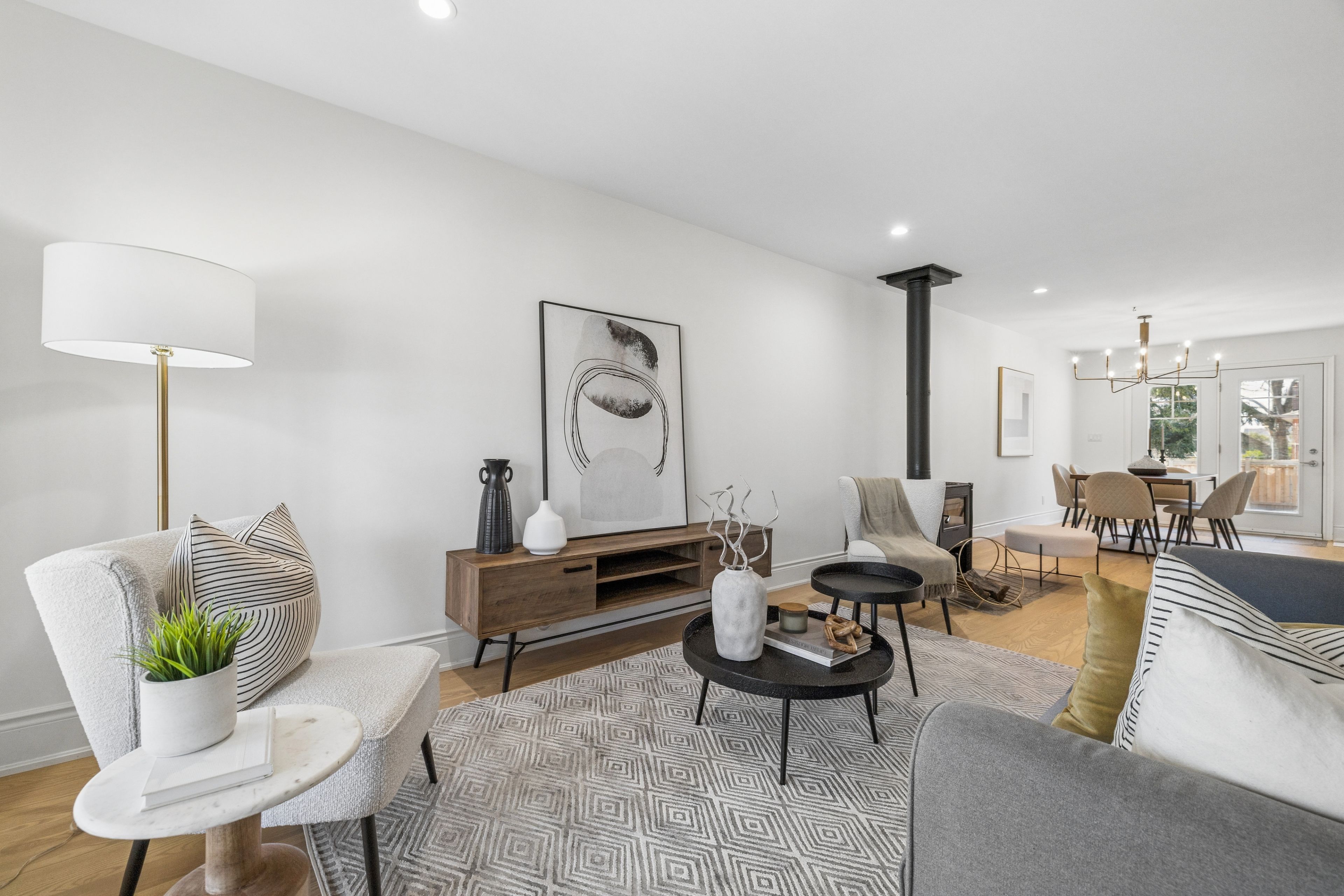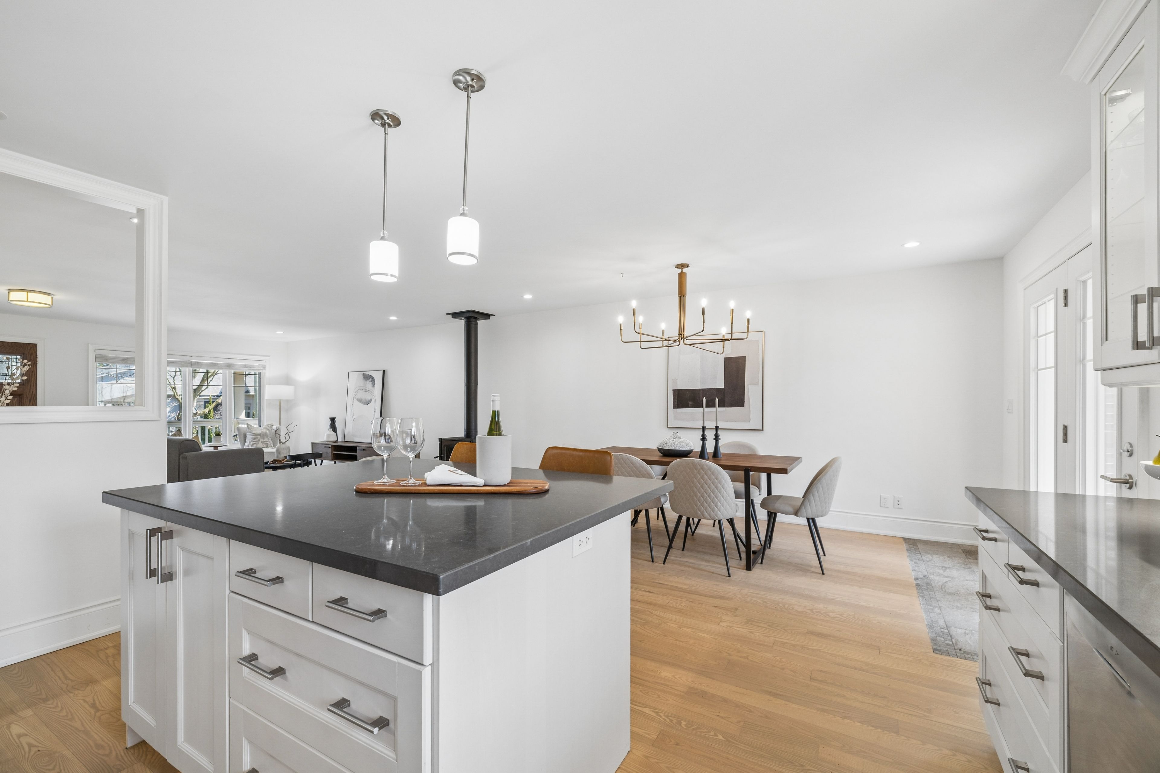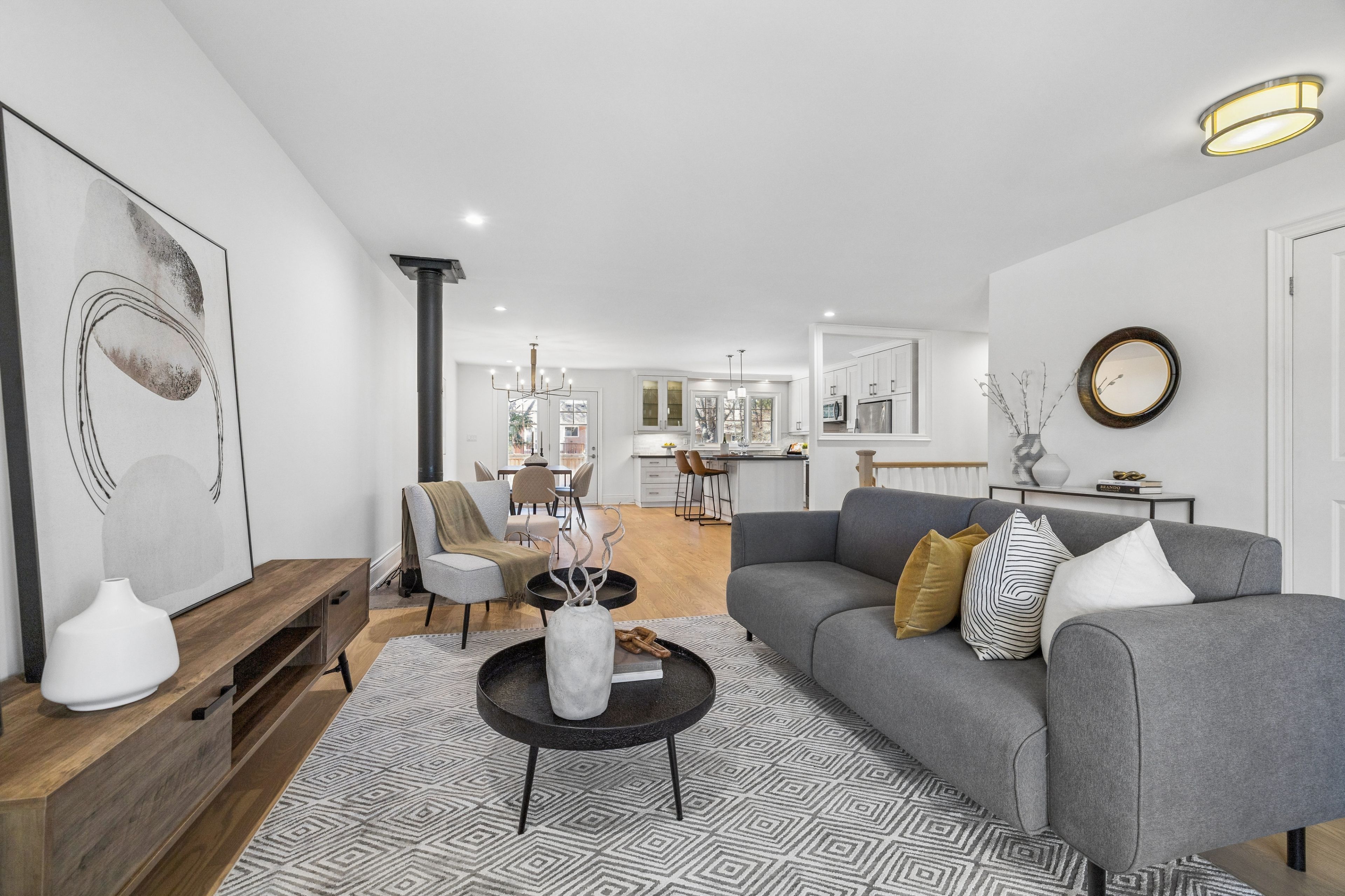 • Bright open-concept main level with a cozy living room and modern kitchen.