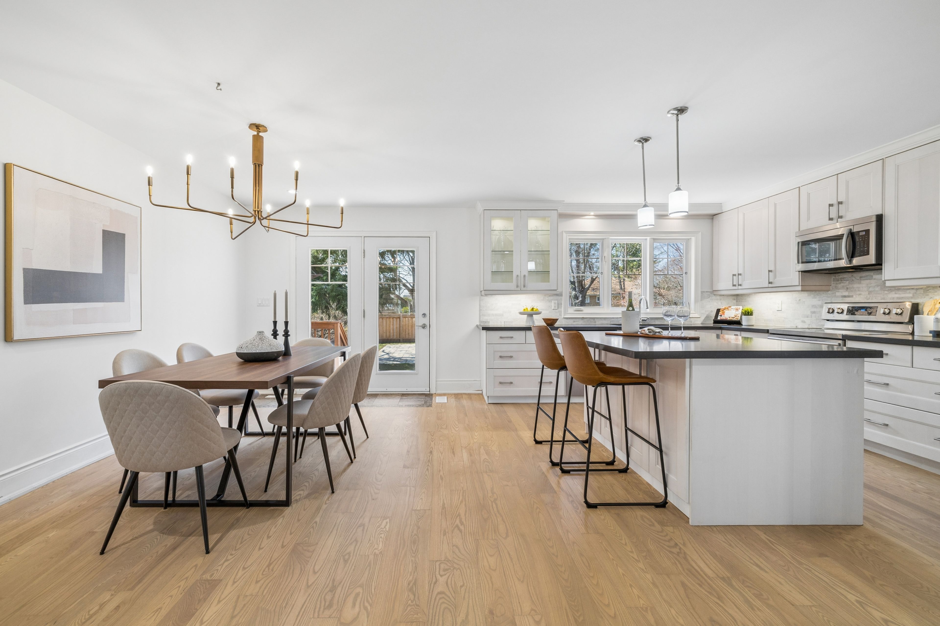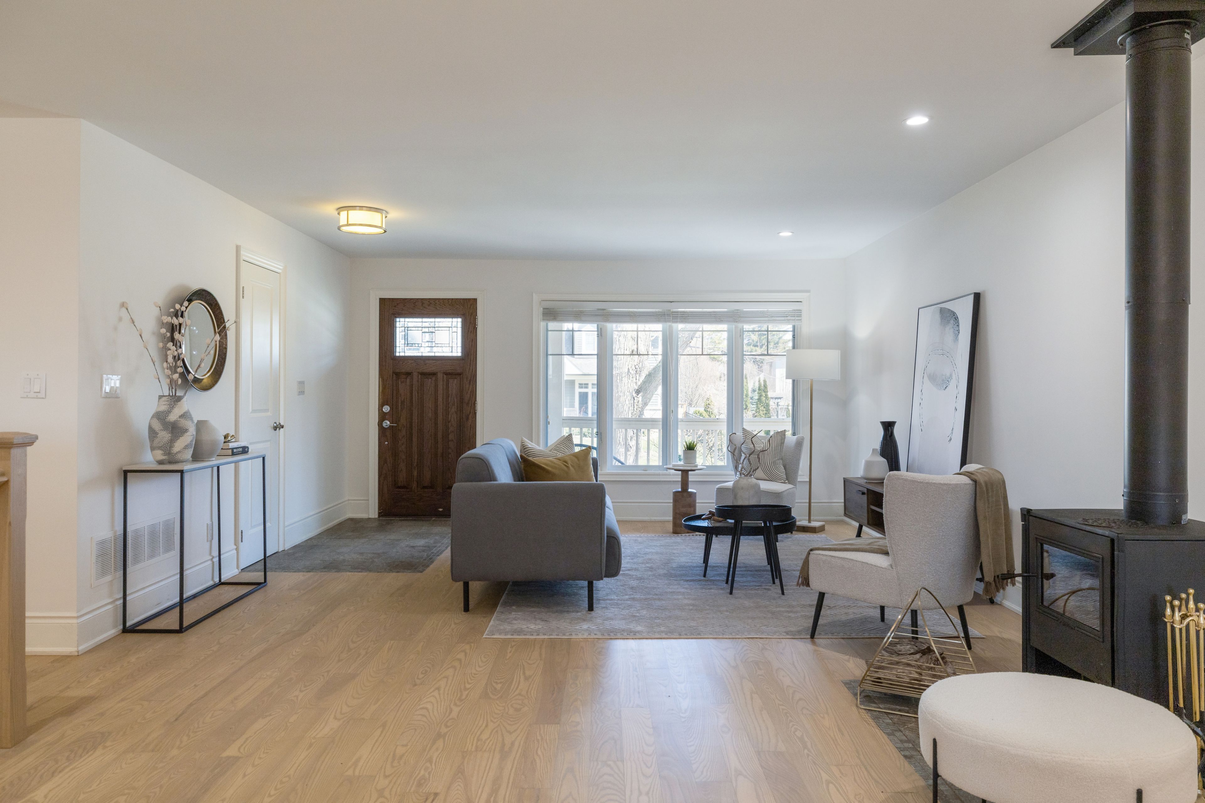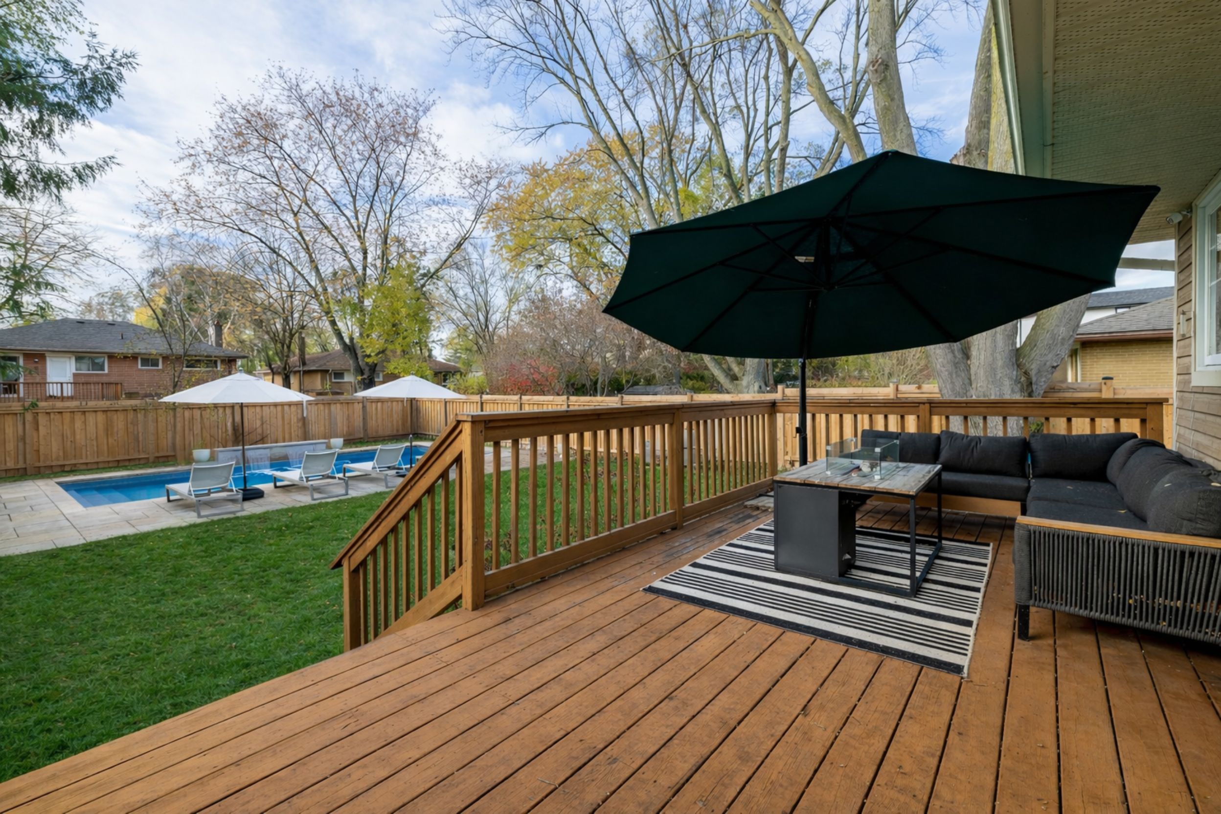 Nestled on a quiet street among multi-million dollar homes in a mature west oakville neighborhood, this beautifully updated raised bungalow is an exceptional find for downsizers and families alike. Offering over 2,200 square feet of freshly painted living space, the home features a highly functional 2+2 bedroom, 2-bathroom layout. Newly redone hardwood floors flow effortlessly throughout the bright, open-concept main level, where a cozy living room anchored by a charming wood-burning stove seamlessly connects to a stunning modern kitchen. This culinary space is perfectly appointed with stainless steel appliances, crisp white shaker cabinetry, and a large quartz center island. Downstairs, the finished lower level significantly expands your living space, boasting a spacious recreation room, a versatile den, a convenient three-piece bathroom, and two additional bedrooms accented by french doors. Step outside to discover your own private, fully-fenced backyard oasis shaded by mature trees. An elevated wooden deck and green lawn lead down to an expansive banas stone patio that beautifully frames a premium, three-year-old saltwater pool. Designed for ultimate outdoor entertaining, this resort-style retreat is complete with tranquil water feature, an automatic cover, and a brand-new privacy fence. Perfectly situated just minutes from the boutique shops and fine dining of downtown oakville, this home offers an unparalleled lifestyle near top-rated schools, including pinegrove public school, st. Thomas aquinas, and appleby college. Some photos have been virtually staged.