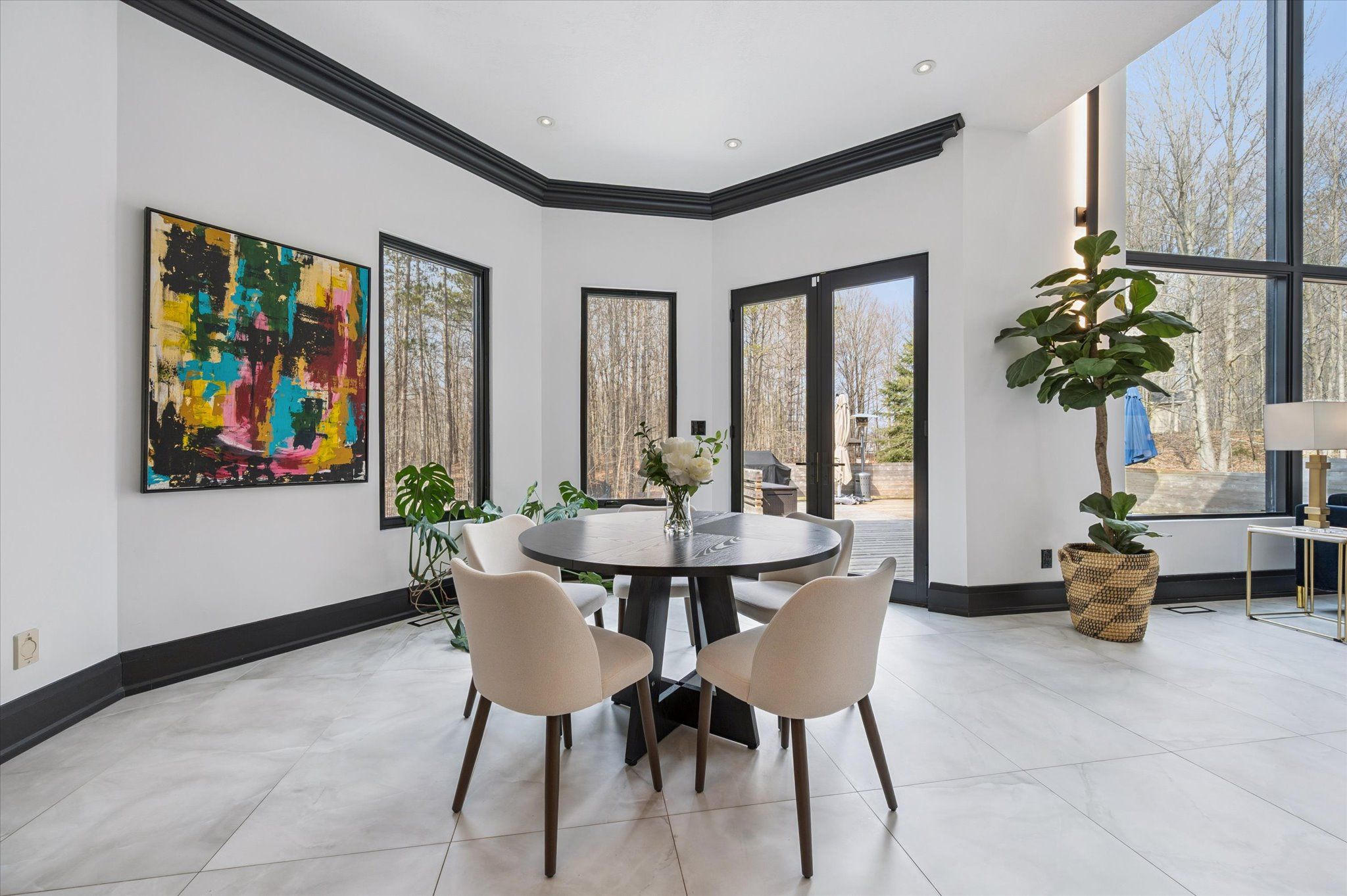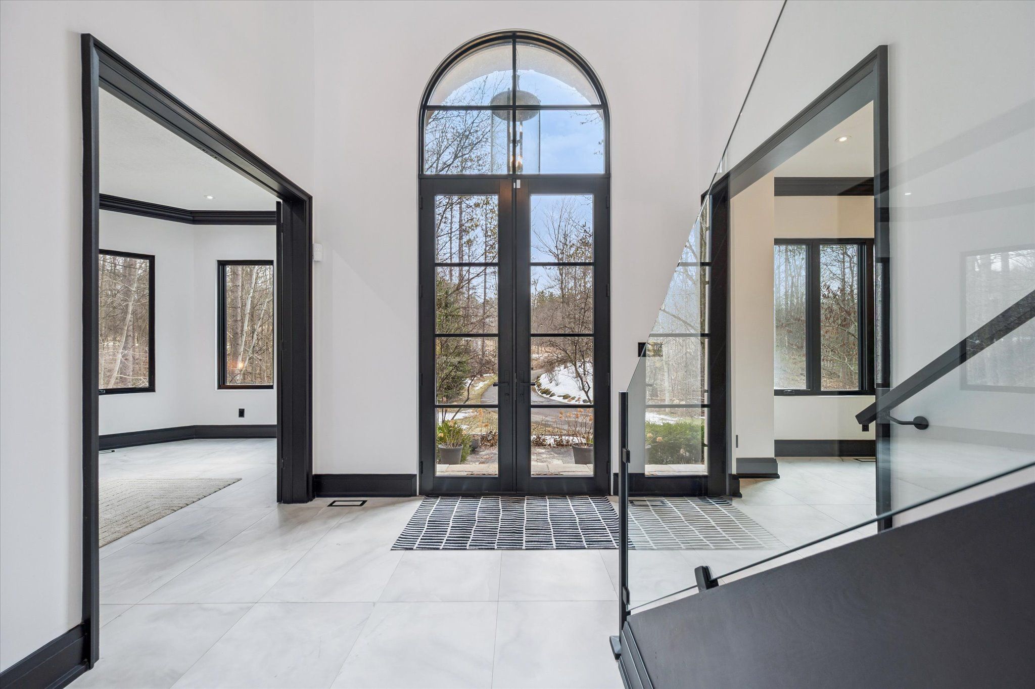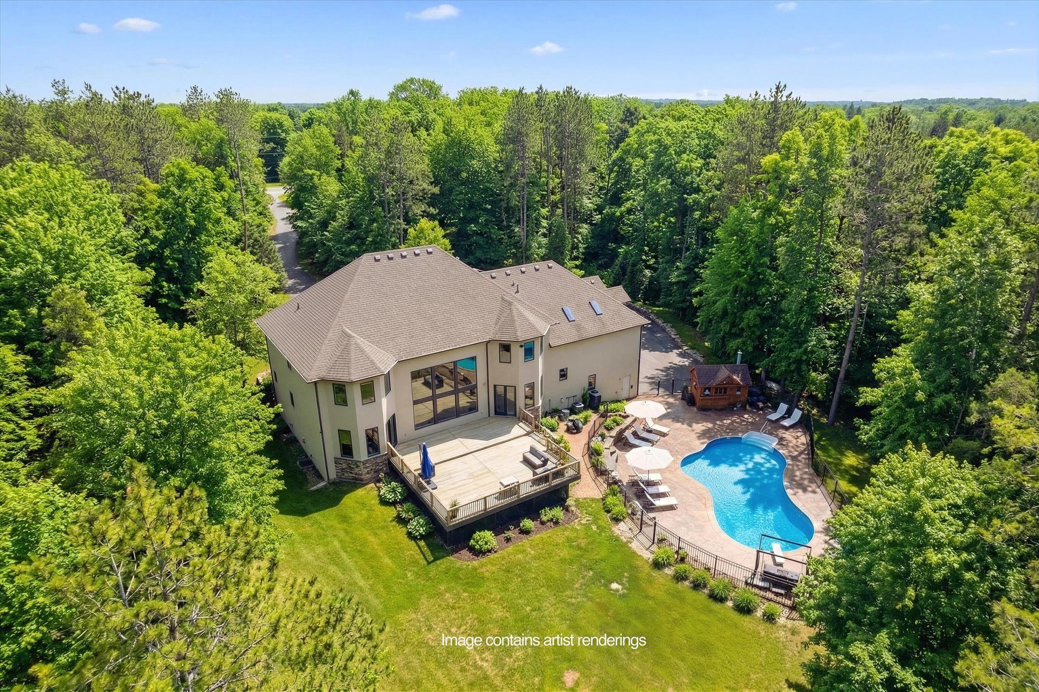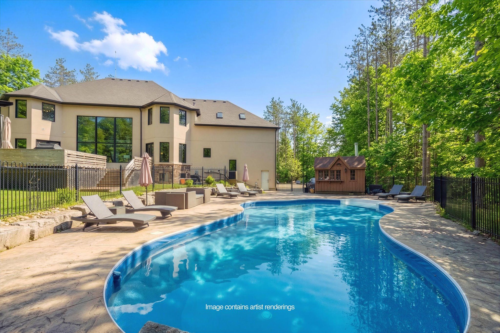 Welcome to a home where country serenity meets contemporary elegance. Set on just over 2 acres of lush, tree-lined property, this exceptional 5-bedroom, 6-bath residence offers a rare blend of modern luxury and natural beauty-creating a truly private and picturesque retreat. Thoughtfully designed with clean architectural lines and an open-concept layout, the home is filled with natural light, seamlessly connecting the indoors with the surrounding landscape. Every detail has been carefully considered to enhance both everyday living and effortless entertaining. At the heart of the home, the gourmet kitchen is a true showpiece-featuring top-of-the-line appliances, abundant storage, and a striking waterfall island that invites gathering and connection. The living area is equally impressive, with soaring ceilings and expansive windows that frame breathtaking views of the backyard oasis. Whether hosting guests or enjoying a quiet evening in, this space offers warmth, comfort, and a constant connection to nature. Step outside to the expansive deck-perfect for morning coffee or long summer evenings under the open sky. The heated saltwater pool introduces a resort-like feel, creating the ultimate setting to relax and unwind. Surrounded by mature trees and open green space, the property offers a sense of peace and privacy that is truly unmatched. Beautiful in every season, the landscape transforms throughout the year-from vibrant autumn colors to peaceful winter snowfall, and the lush greenery of spring and summer. Thoughtfully designed to suit every stage of life, the home features a stunning main floor primary suite, along with four generously sized bedrooms on the second level. Ideally located just minutes from two world-class equestrian facilities and some of the most scenic hiking trails in southwestern ontario, this property also offers convenient access for commuters, with easy routes to pearson international airport and go transit connections to downtown toronto.